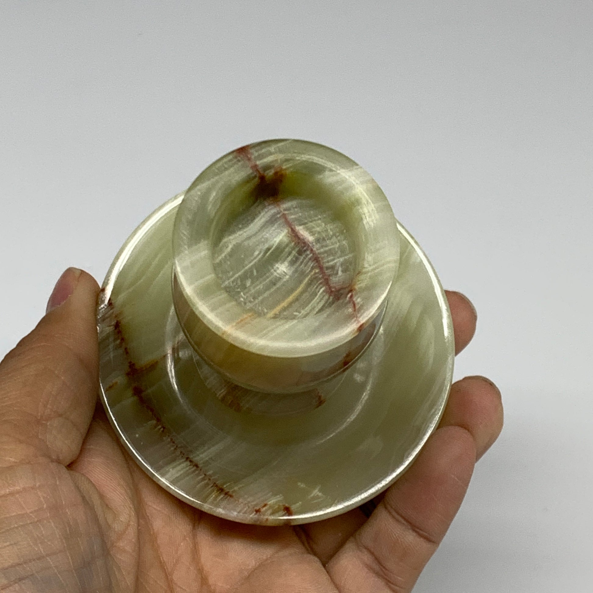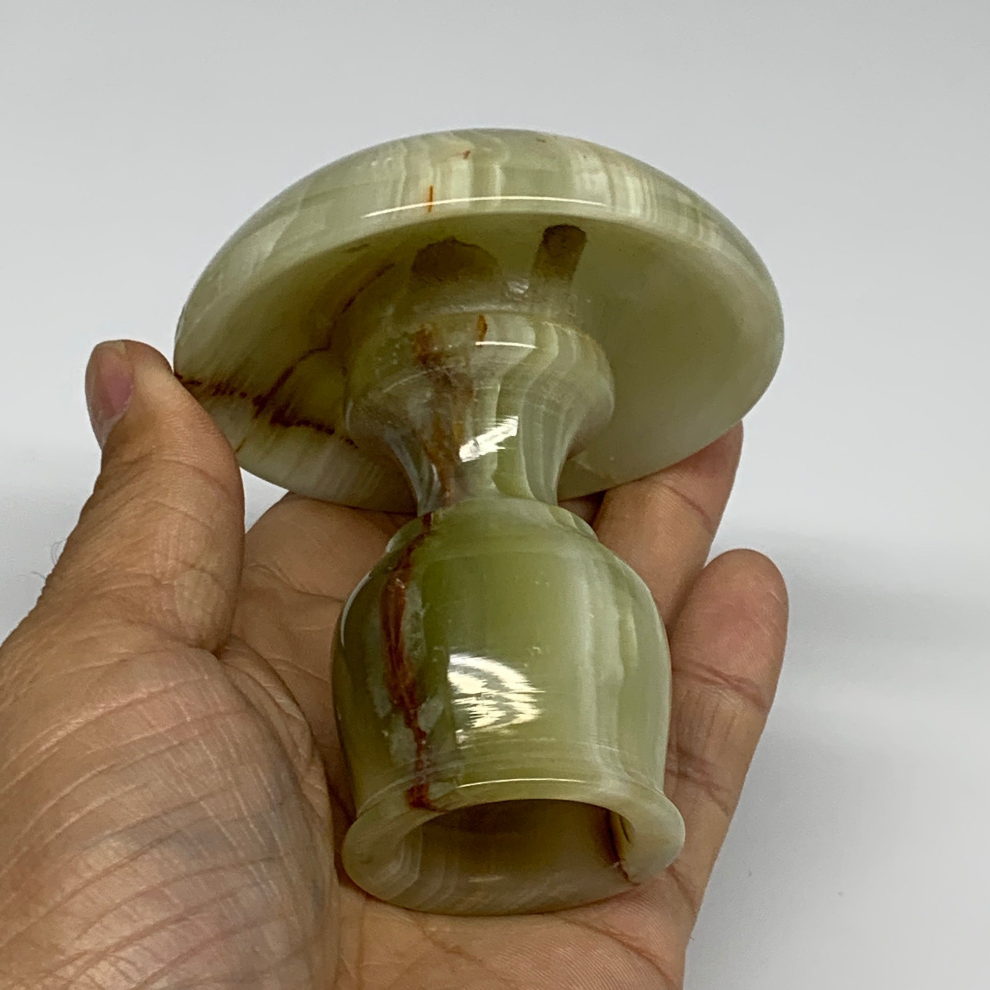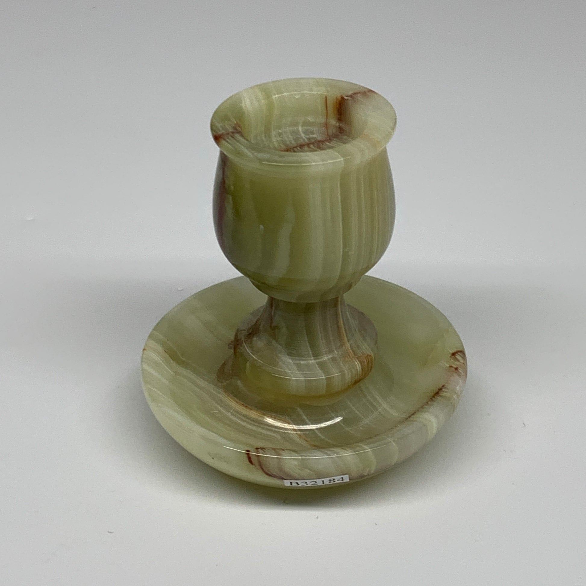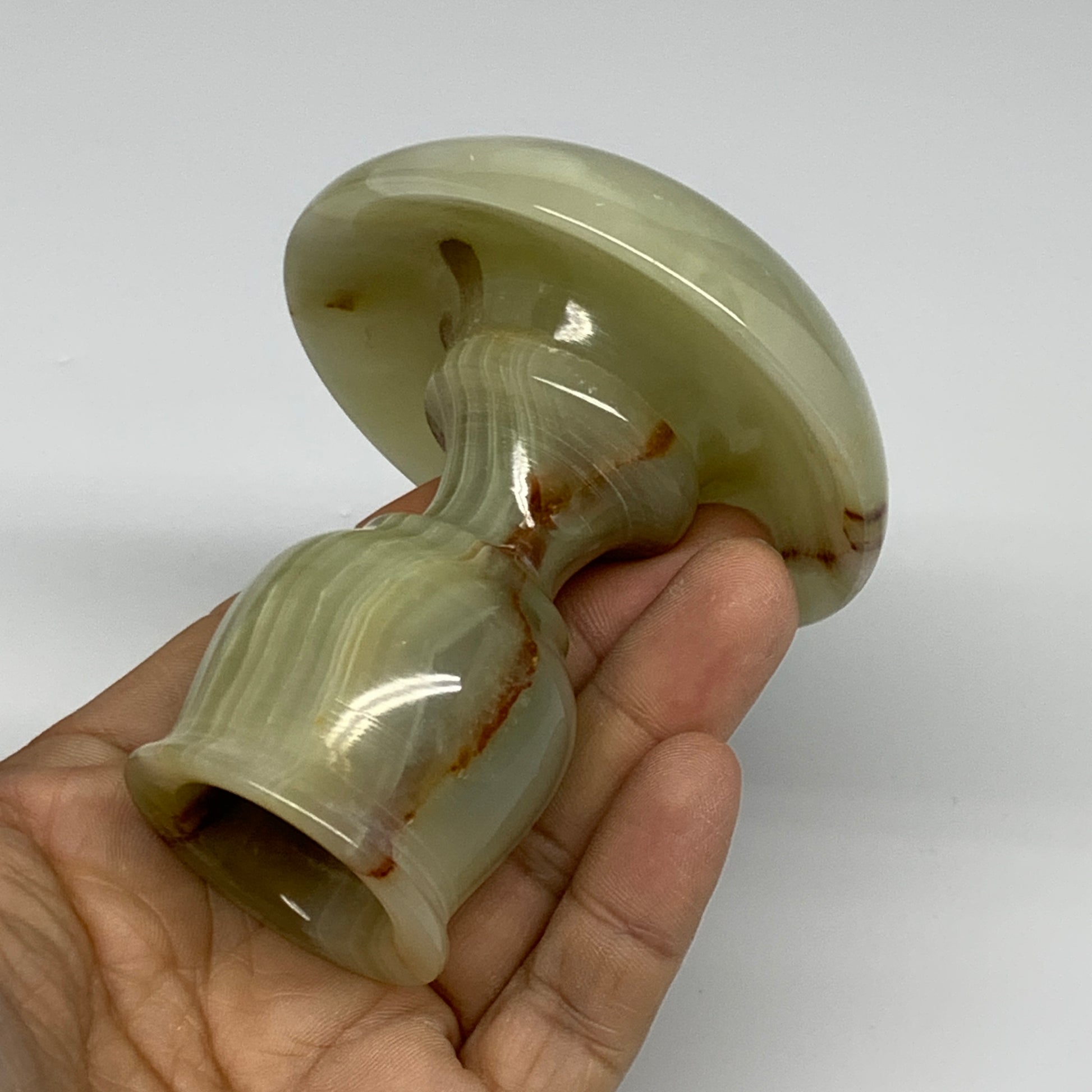 282g, 3.2"x1.5"x2.9", Natural Green Onyx Candle Holder Gemstone Hand Carved, B32183