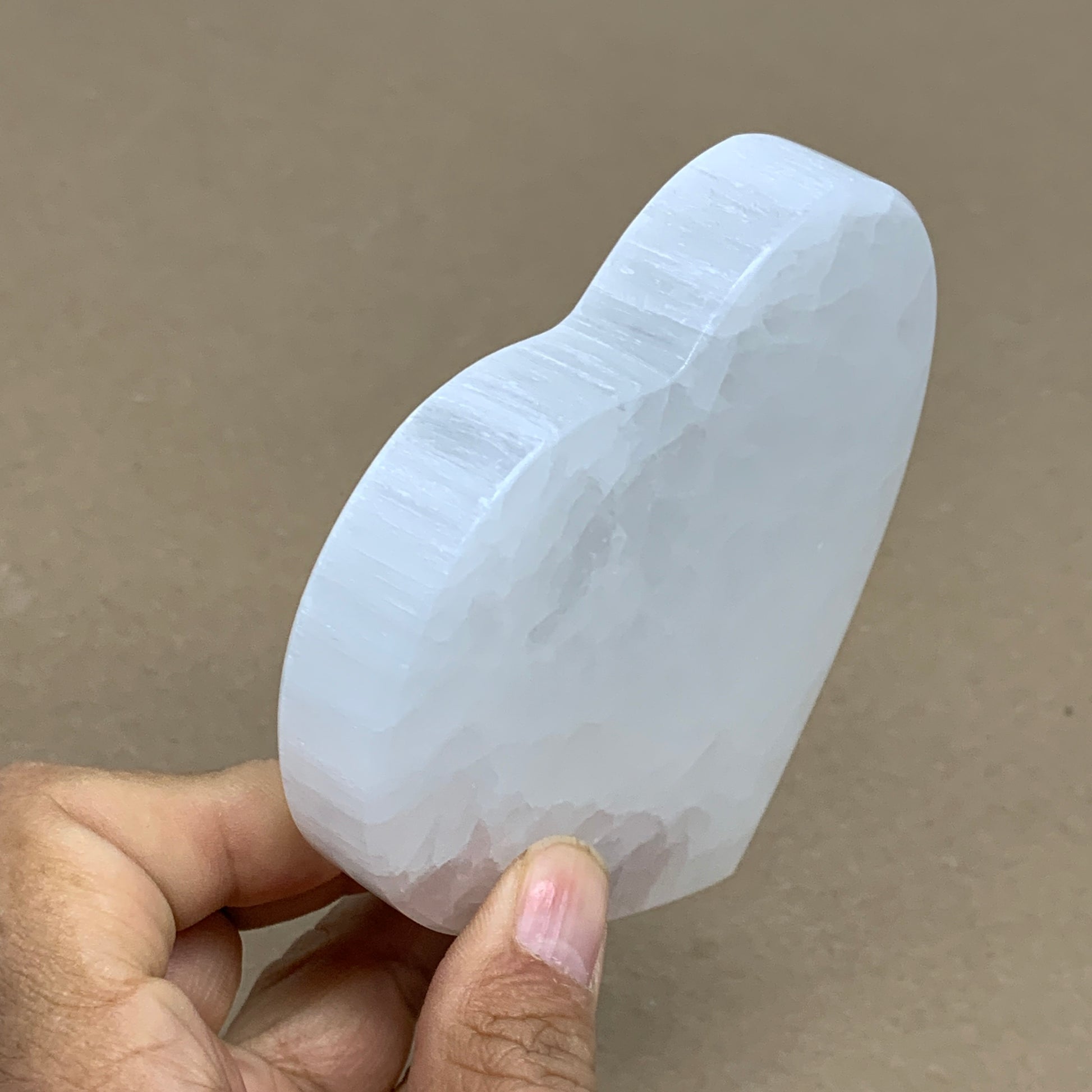 This is a natural product so specification varies from item to item. Due to its soft nature, scratches, chips, dents, Rustics, Crack looking lines, Repairs and fractures looking lines are very common in selenites. Therefore, please expect all Selenite products to have some minor issues & imperfections.