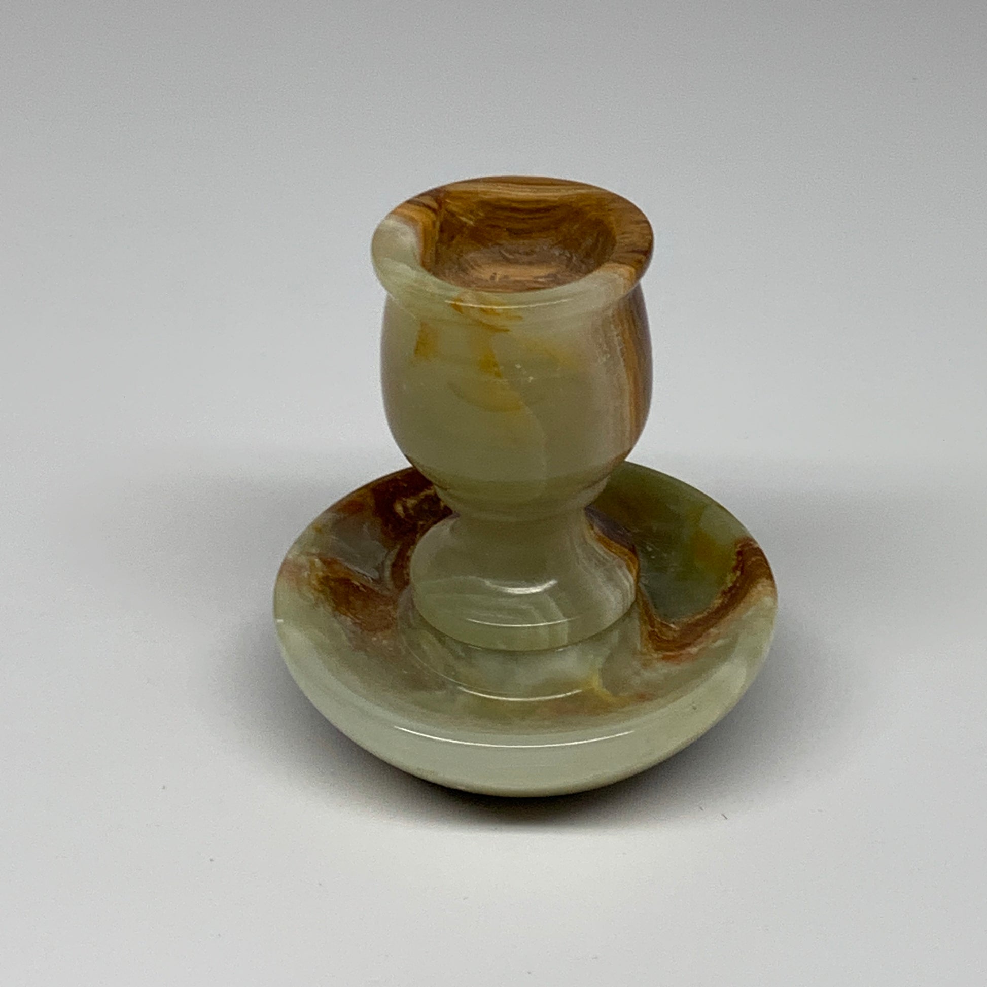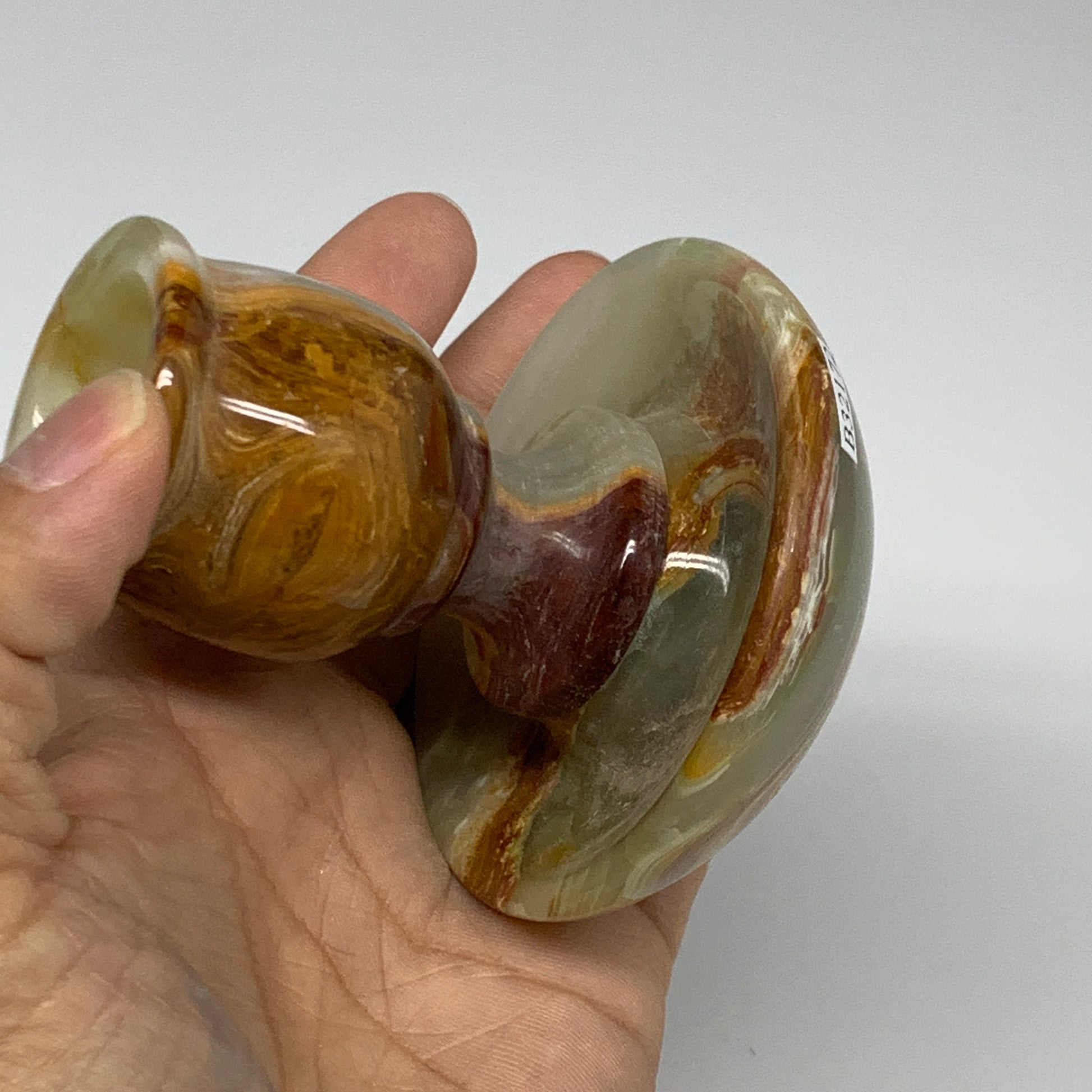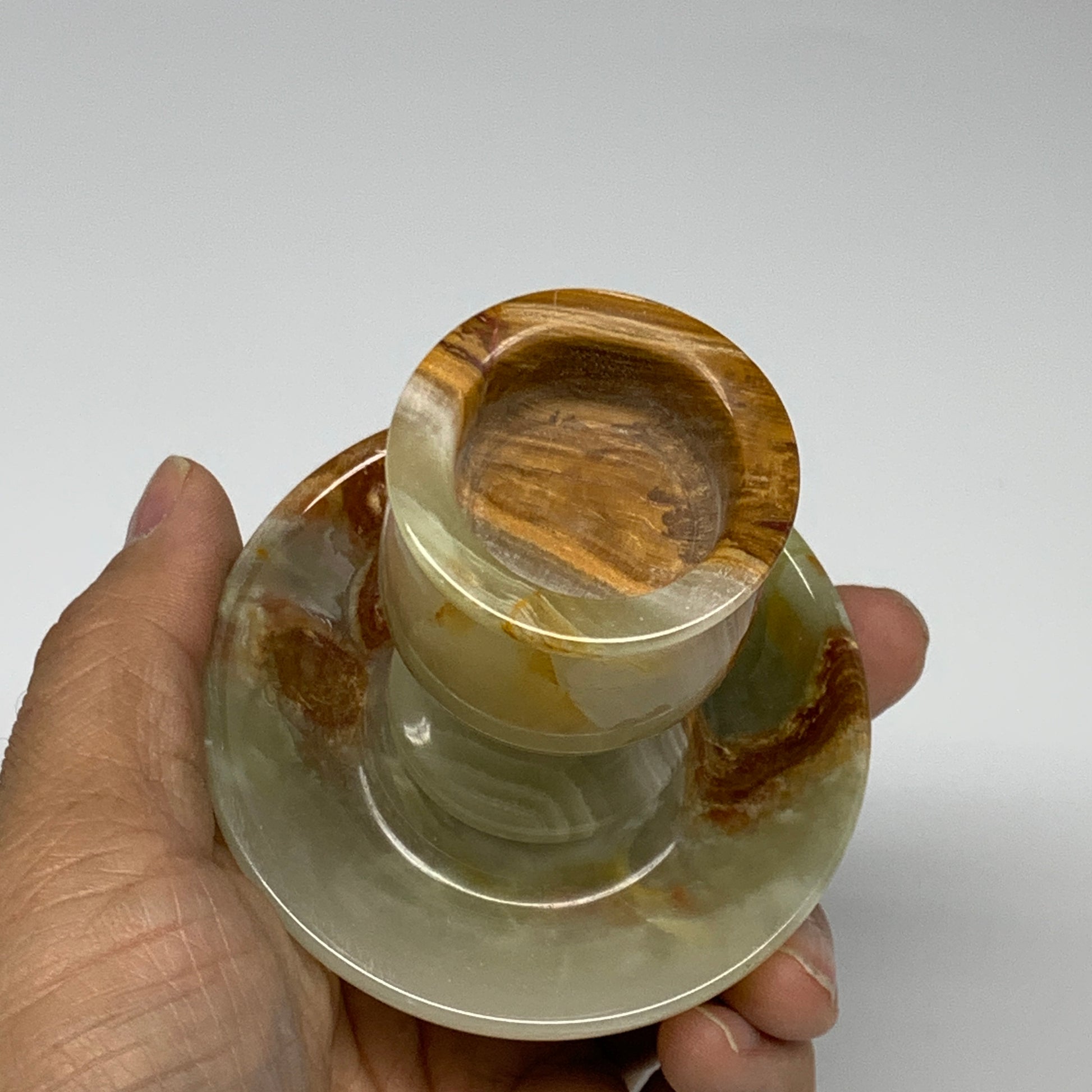 273g, 3.1"x1.5"x2.9", Natural Green Onyx Candle Holder Gemstone Hand, B32171