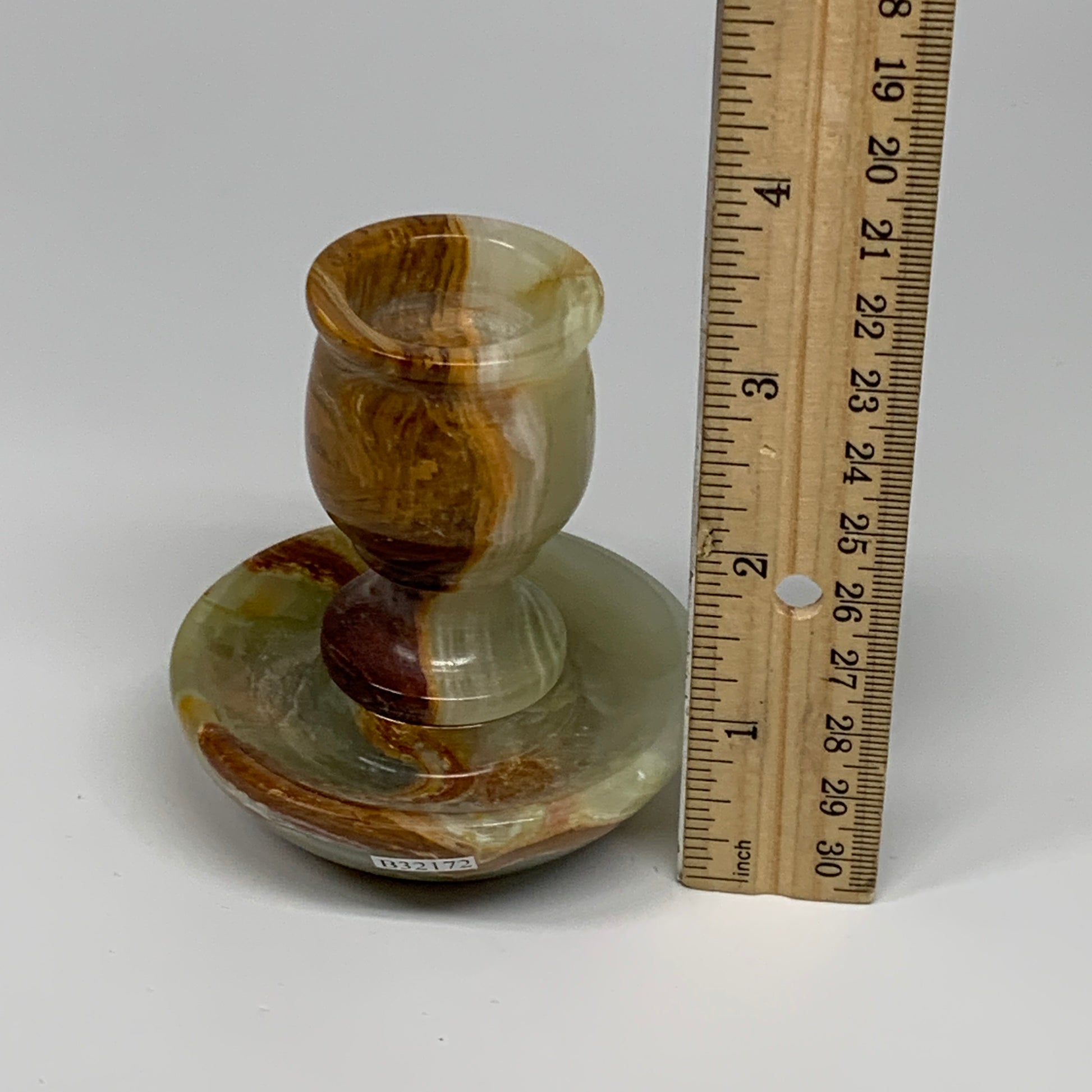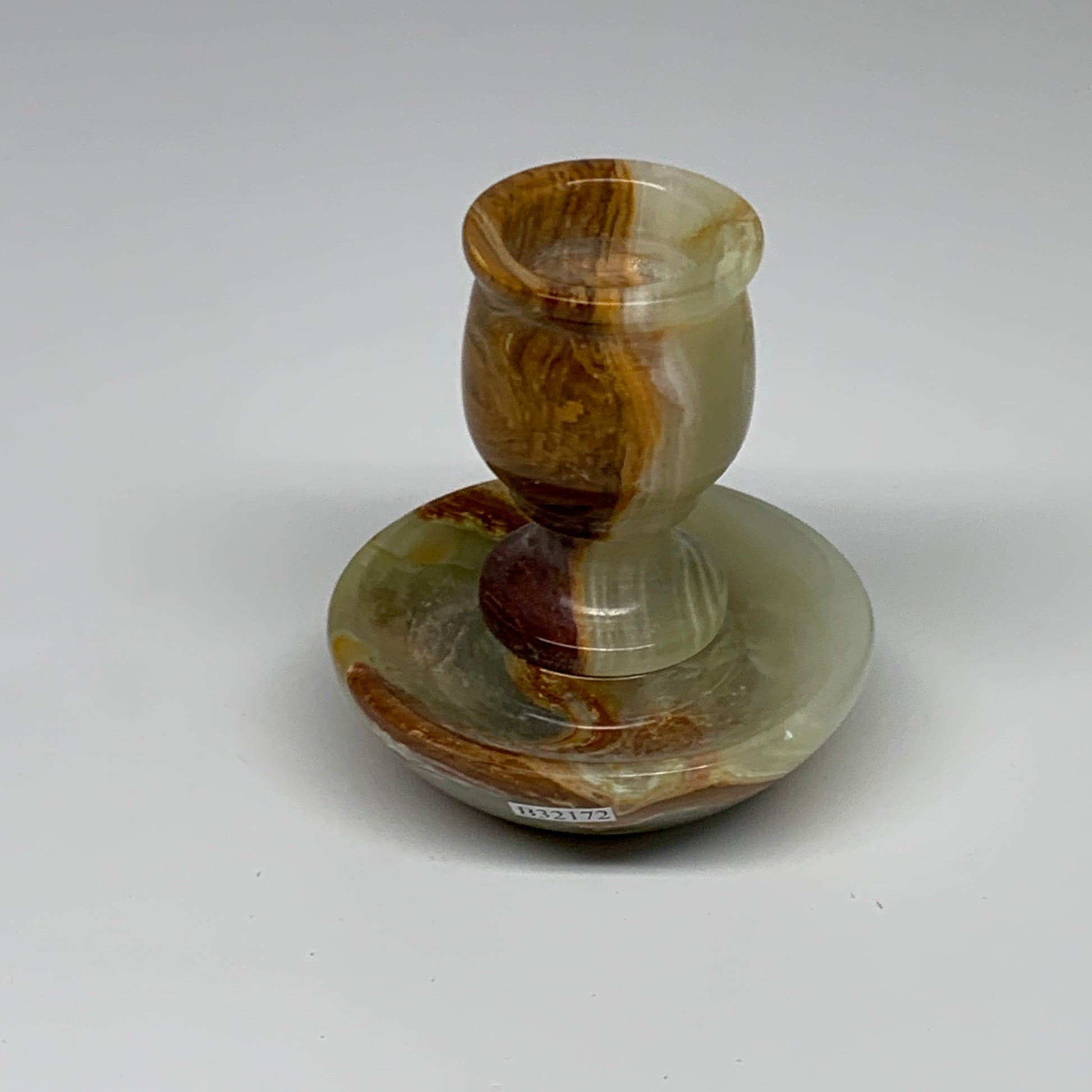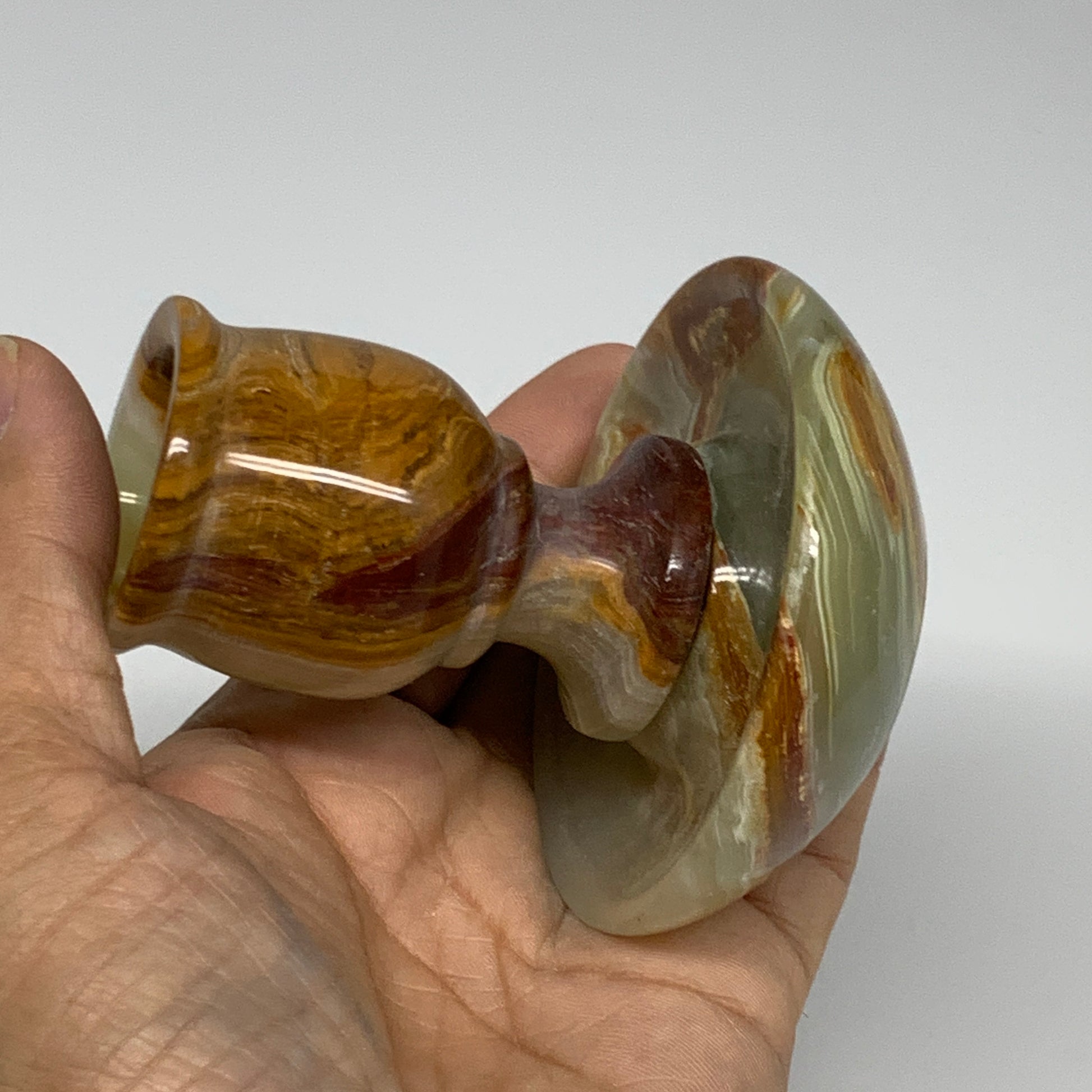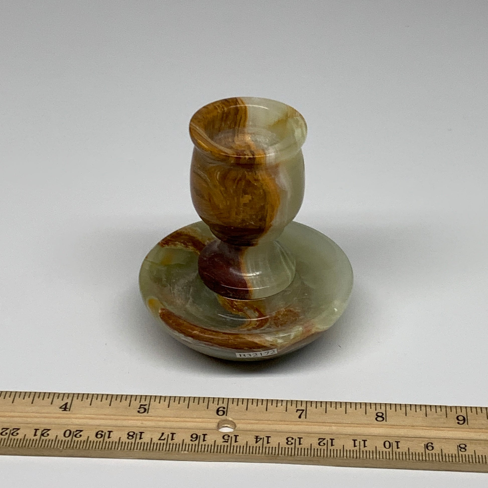 273g, 3.1"x1.5"x2.9", Natural Green Onyx Candle Holder Gemstone Hand, B32171