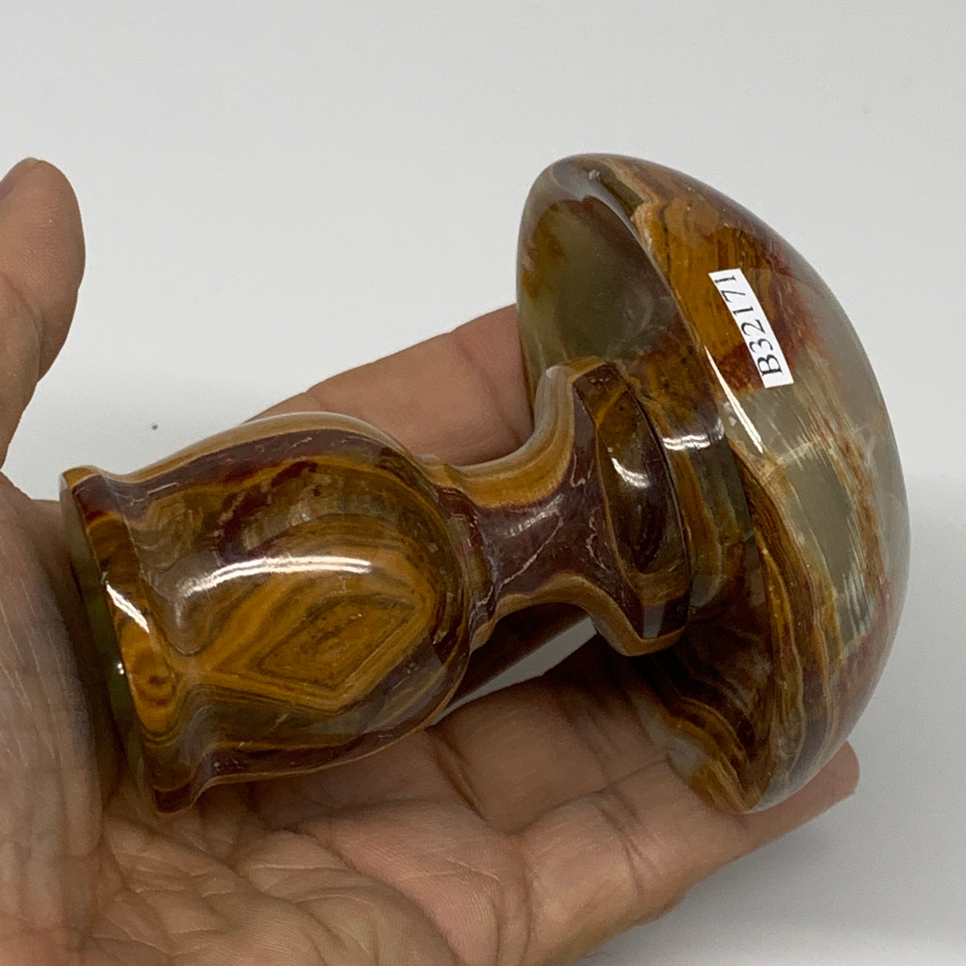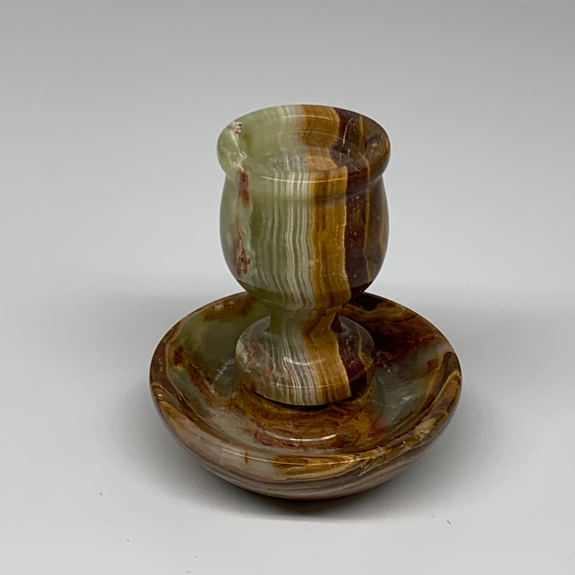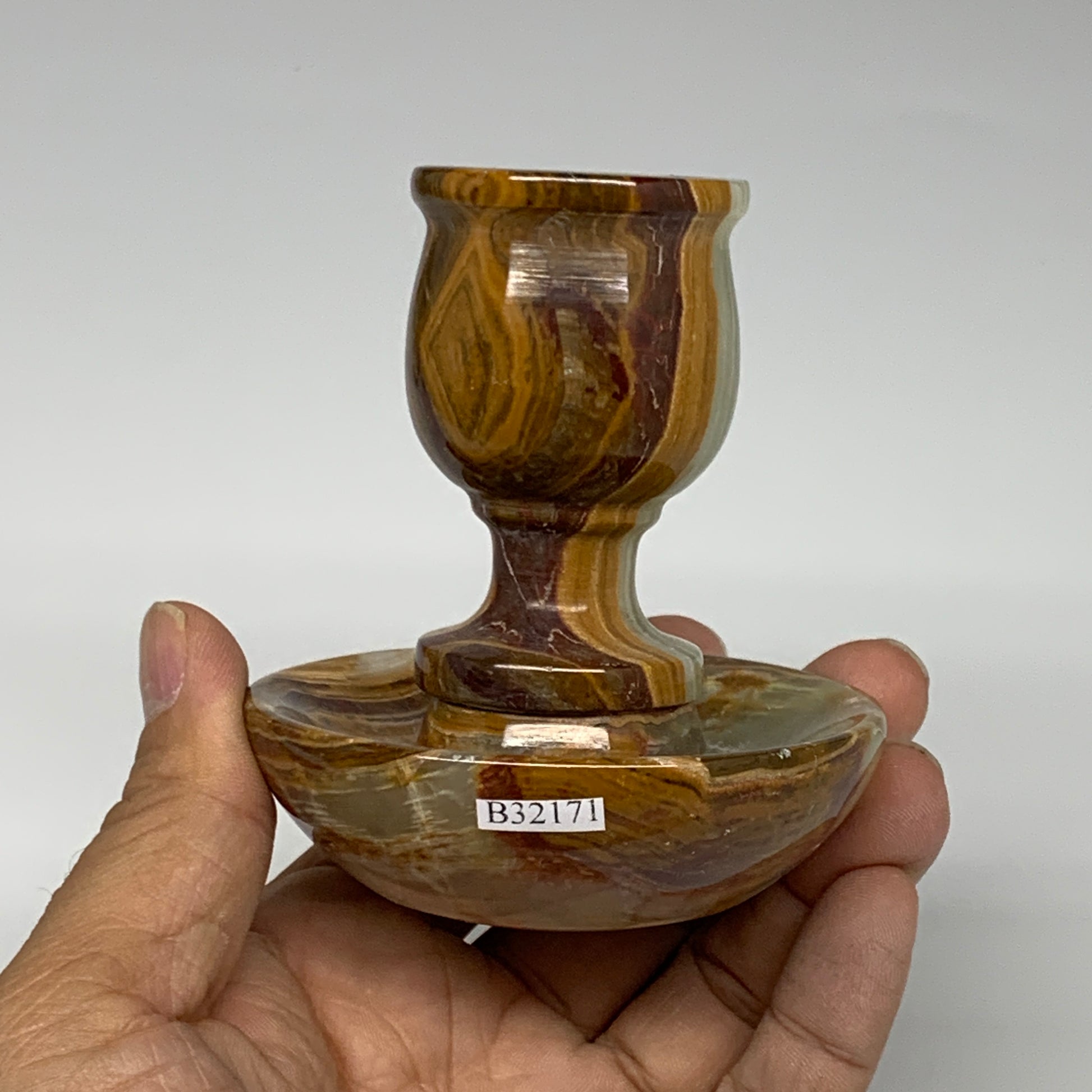 292g, 3.4"x1.5"x2.9", Natural Green Onyx Candle Holder Gemstone Hand Carved, B32170