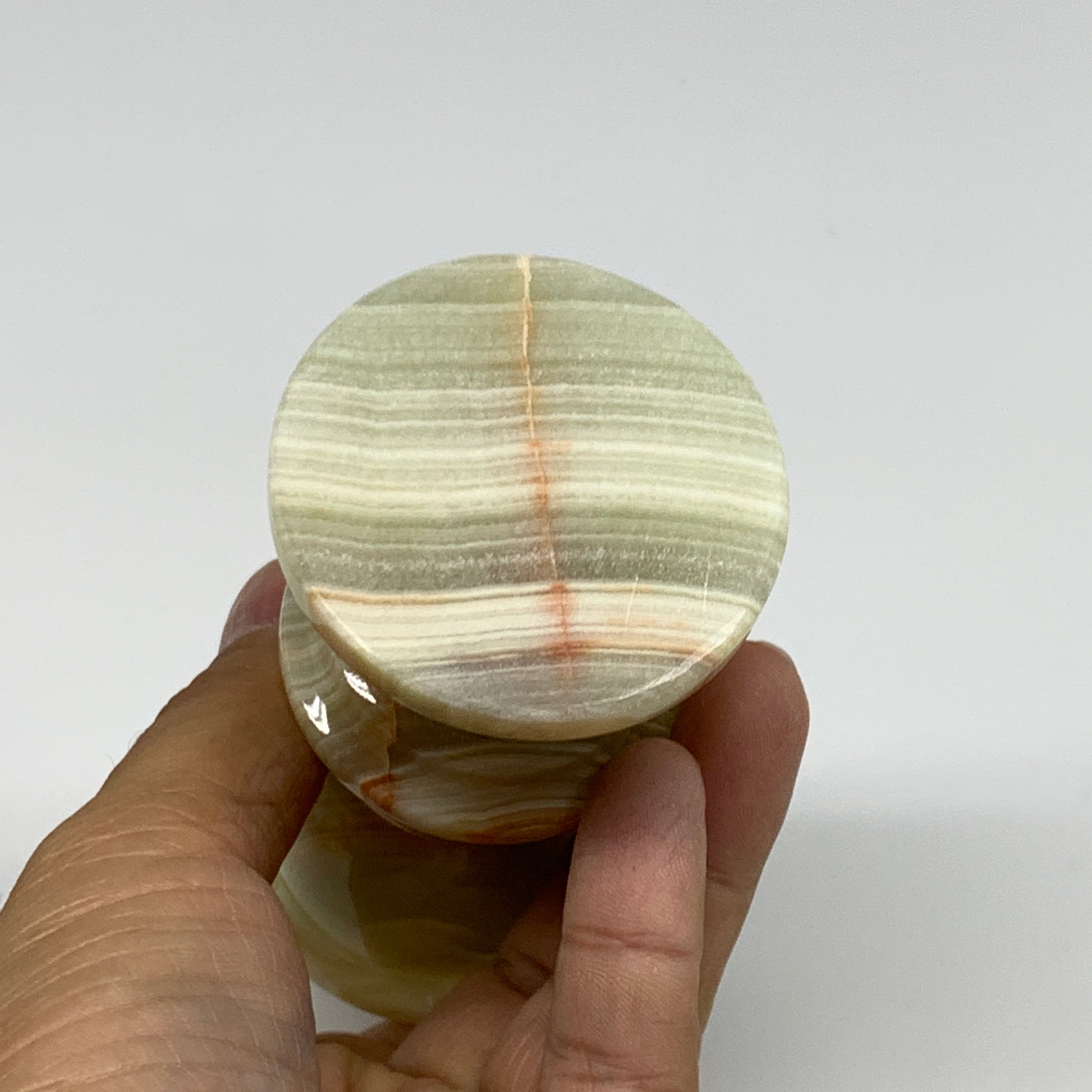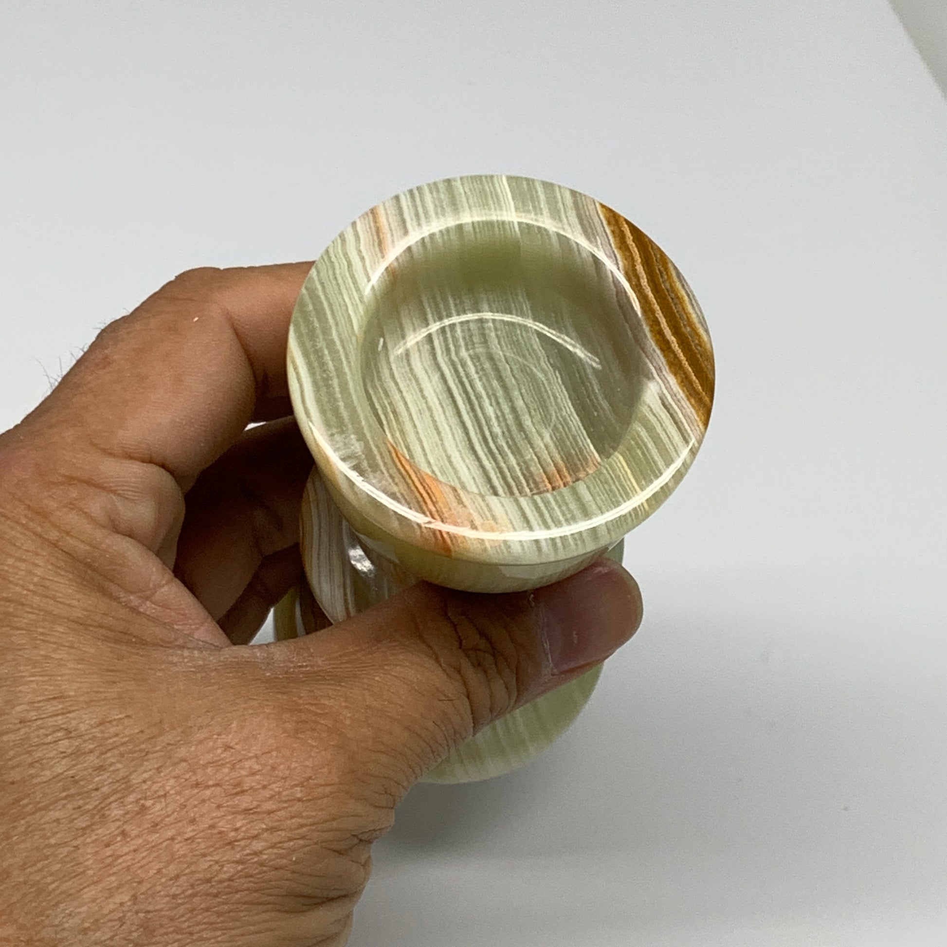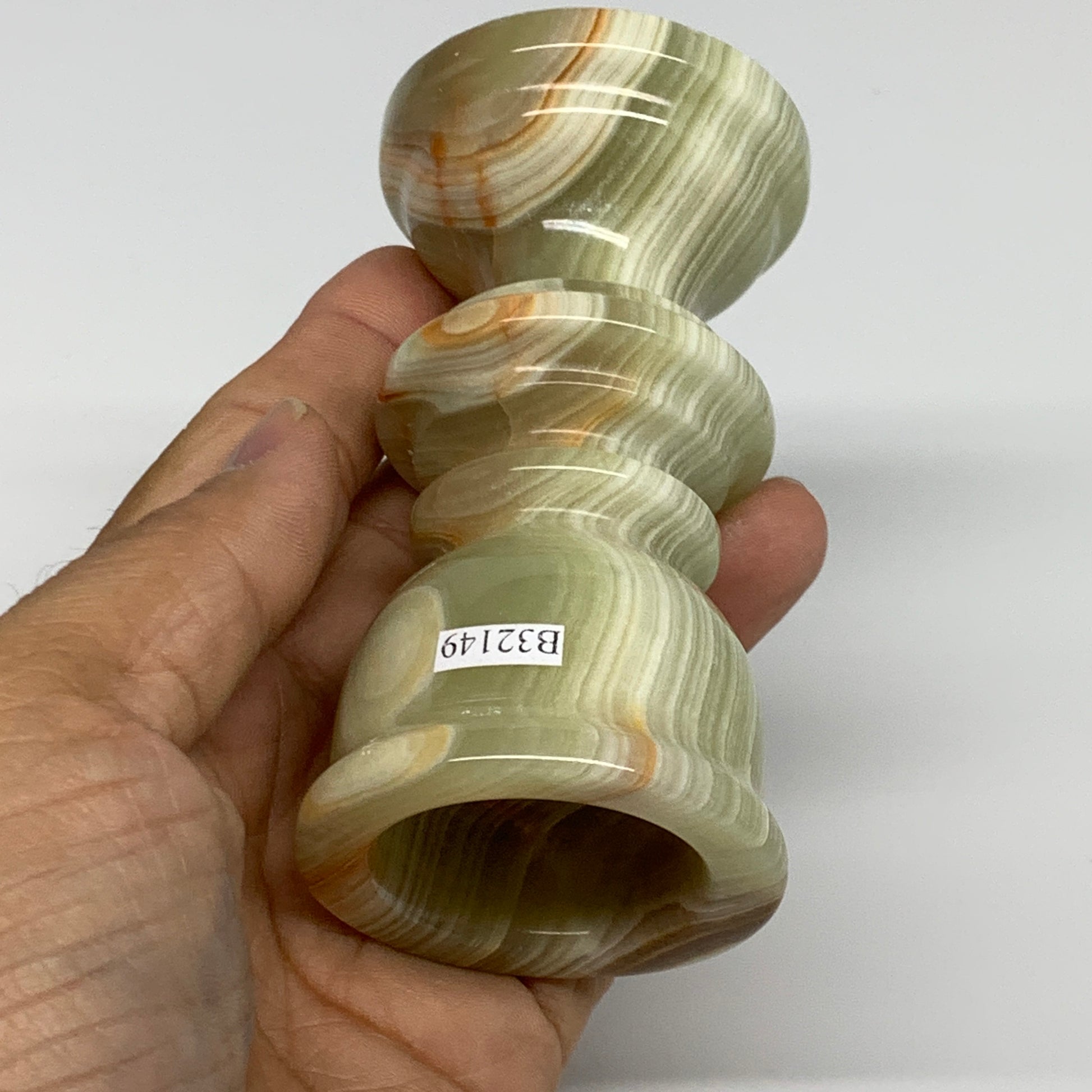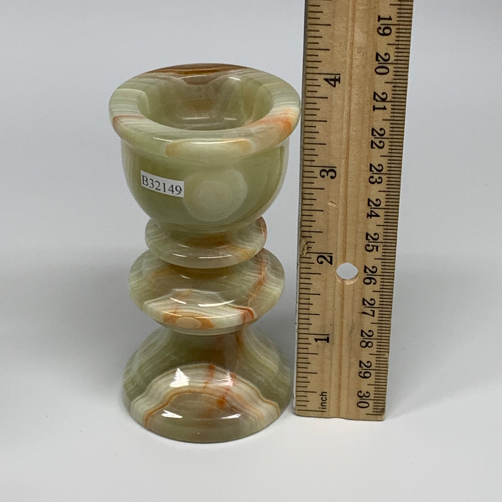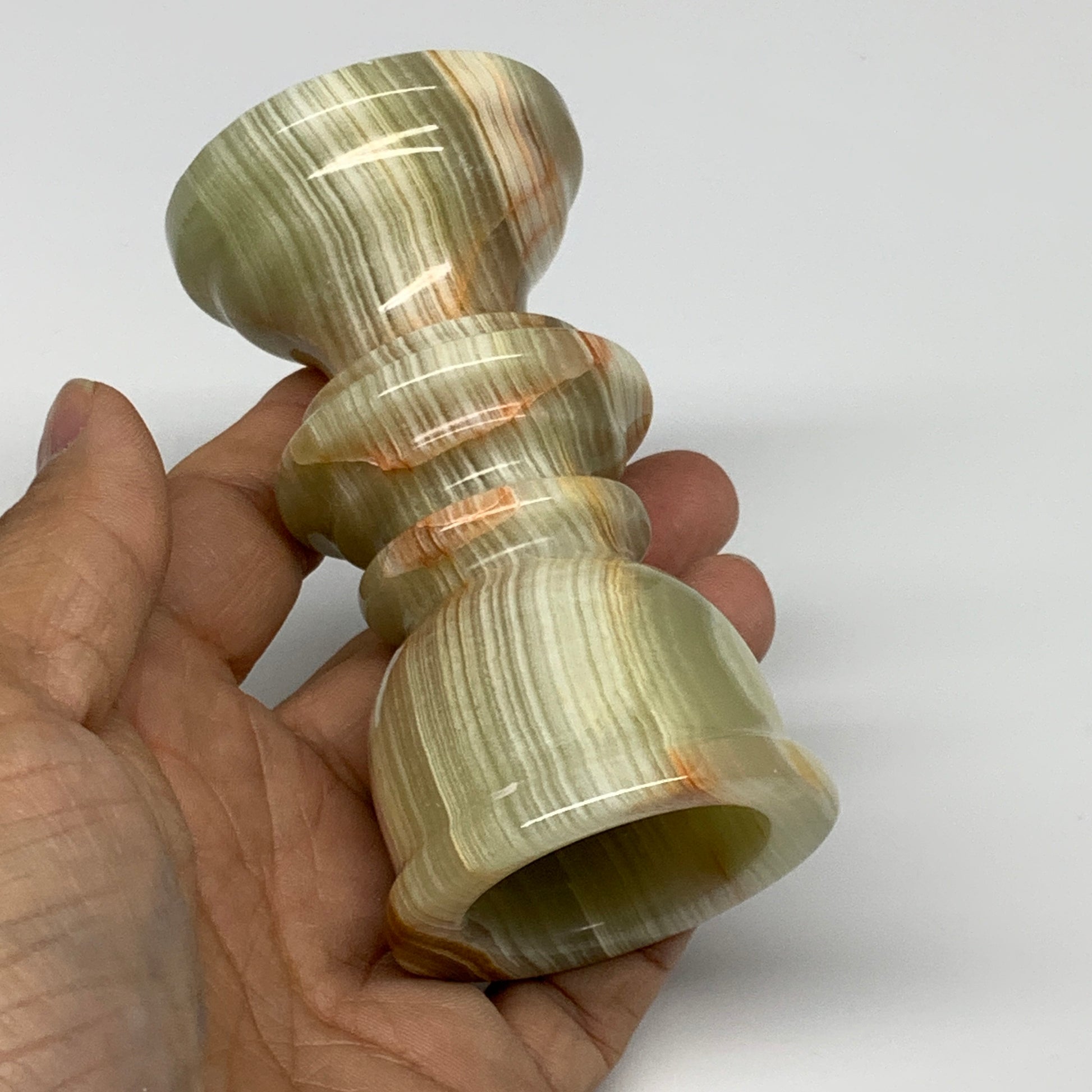 279.9g, 3.7"x2", Natural Green Onyx Candle Holder Gemstone Hand Carved, B32149