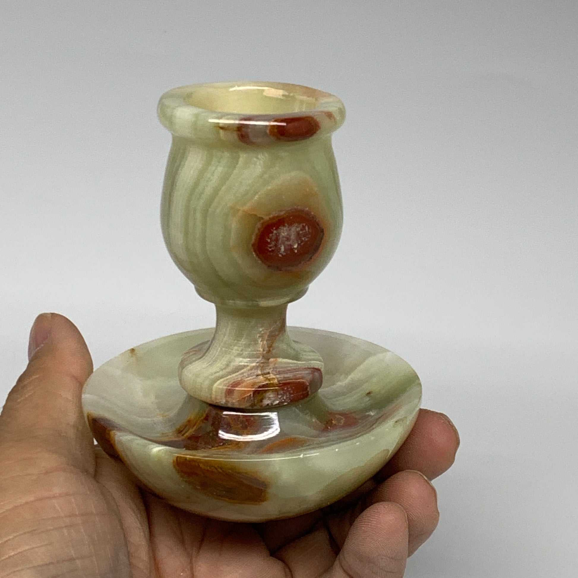 273g, 3.1"x1.5"x2.9", Natural Green Onyx Candle Holder Gemstone Hand Carved, B32172