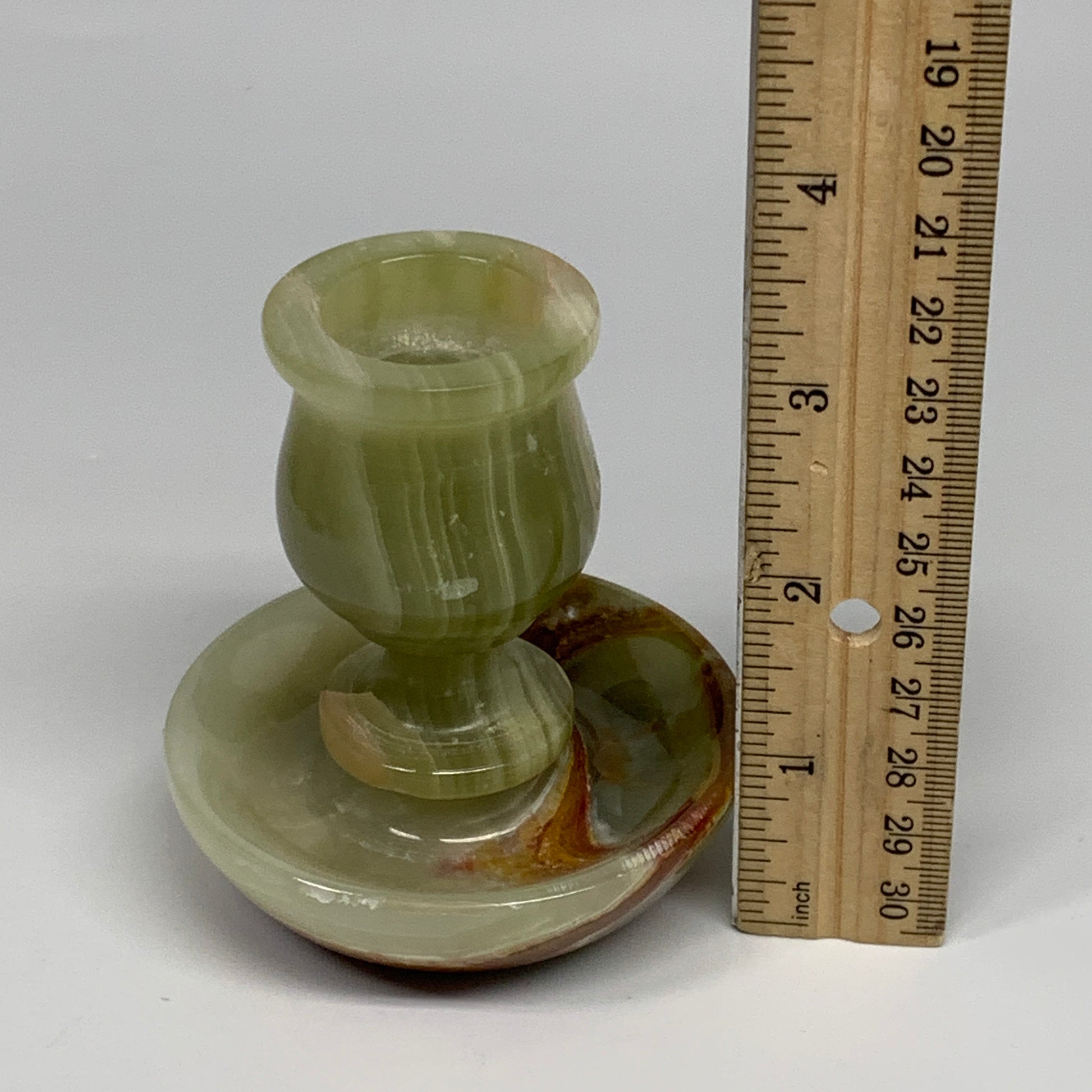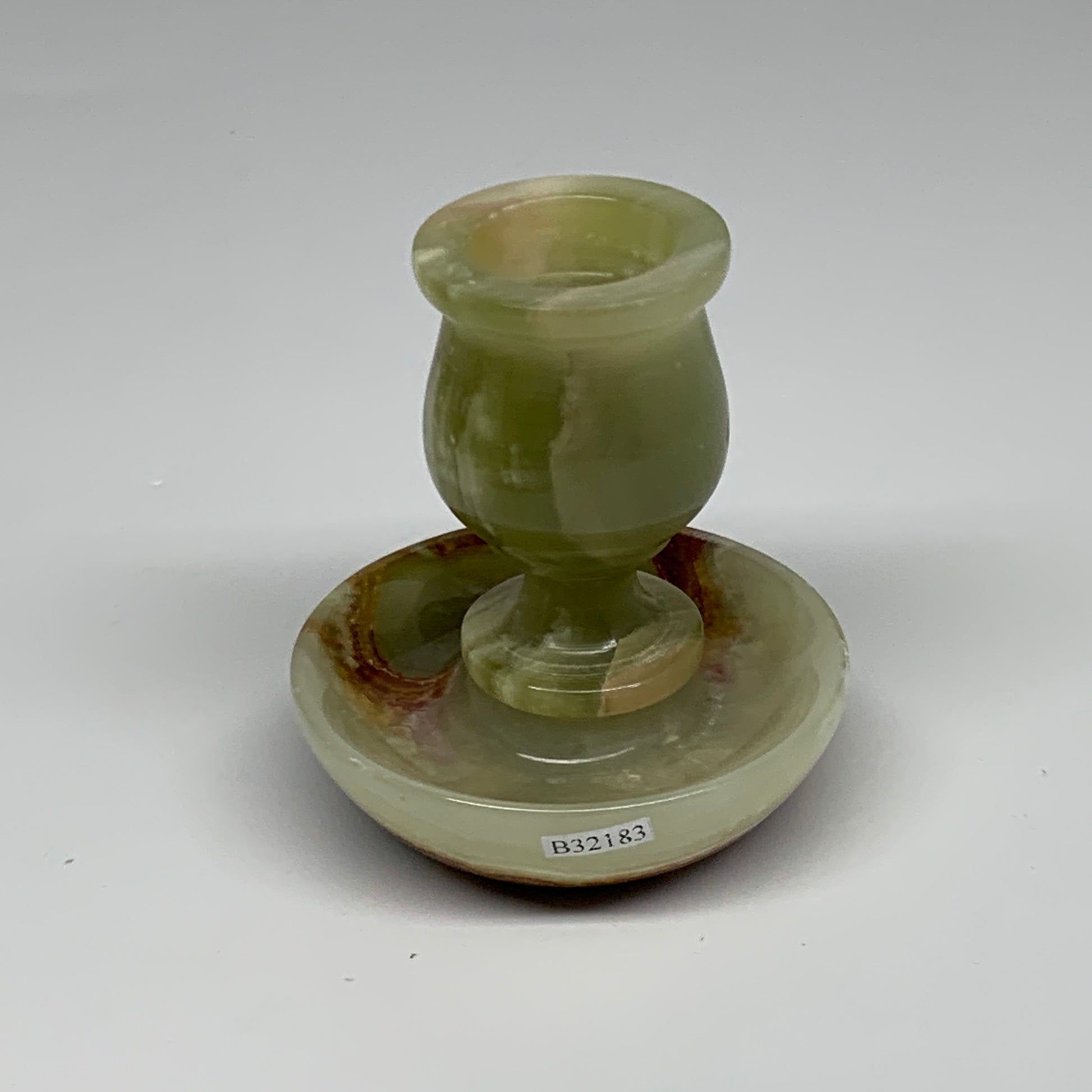 284g, 3.3"x1.4"x2.9", Natural Green Onyx Candle Holder Gemstone Hand Carved, B32182