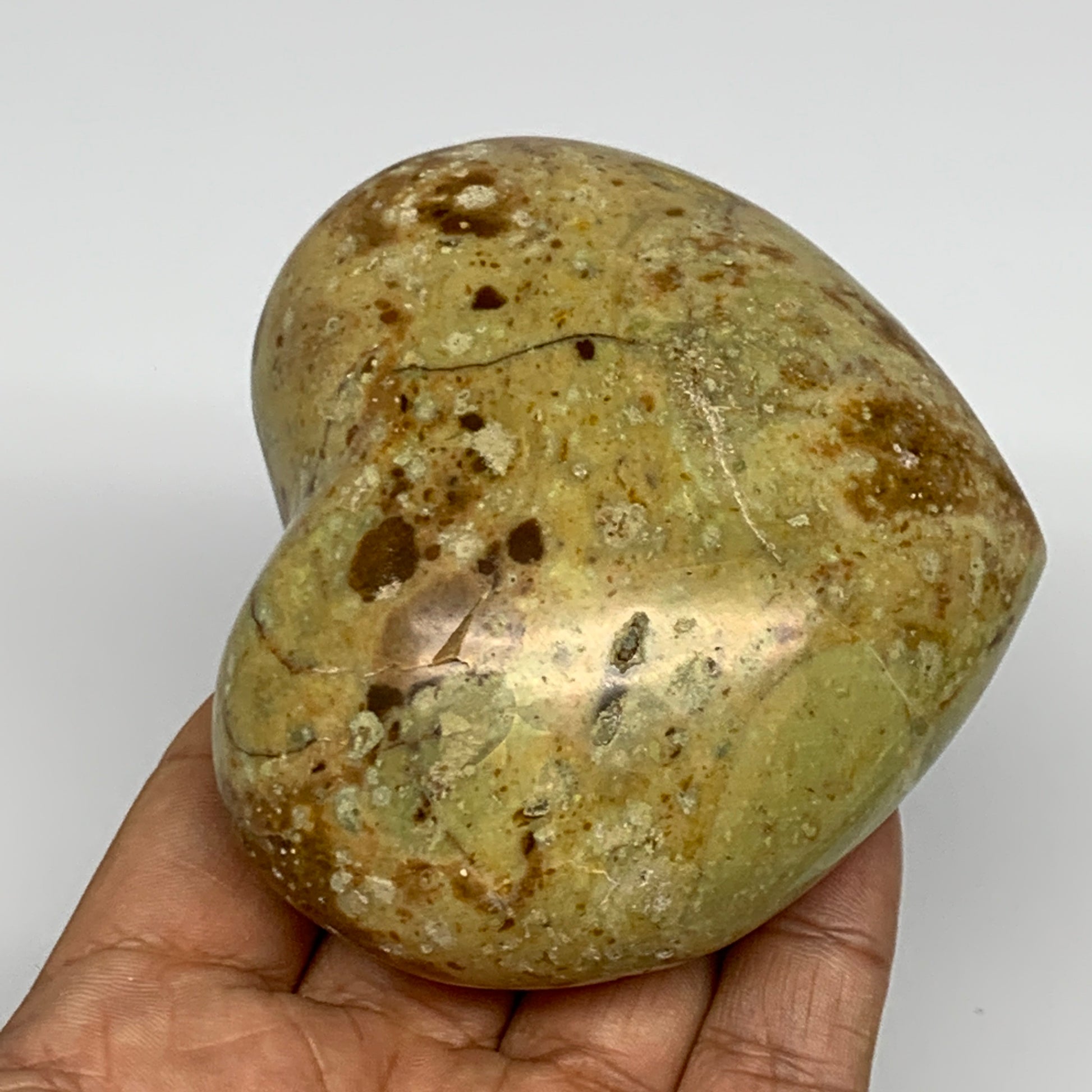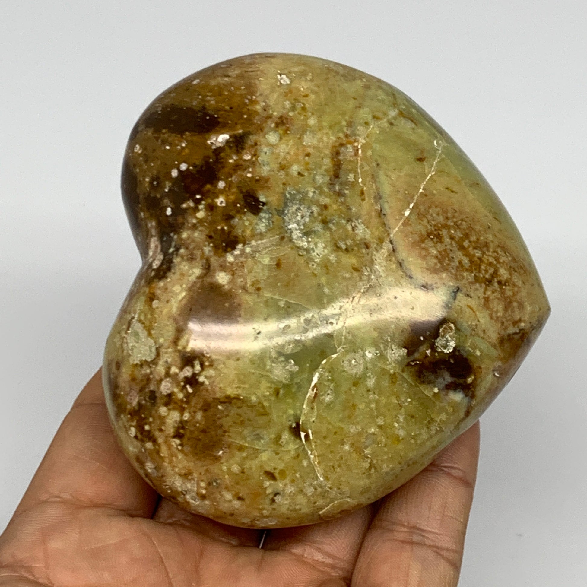 283.1g,2.9"x3.2"x1.6", Green Opal Heart Polished Gemstone @Madagascar, B17568
