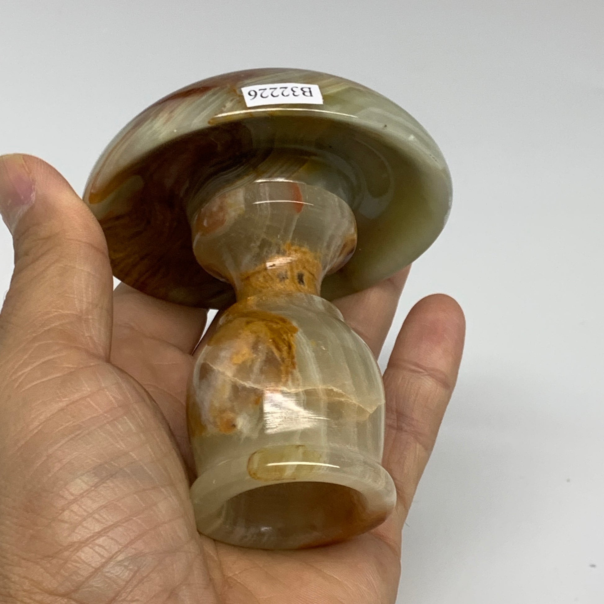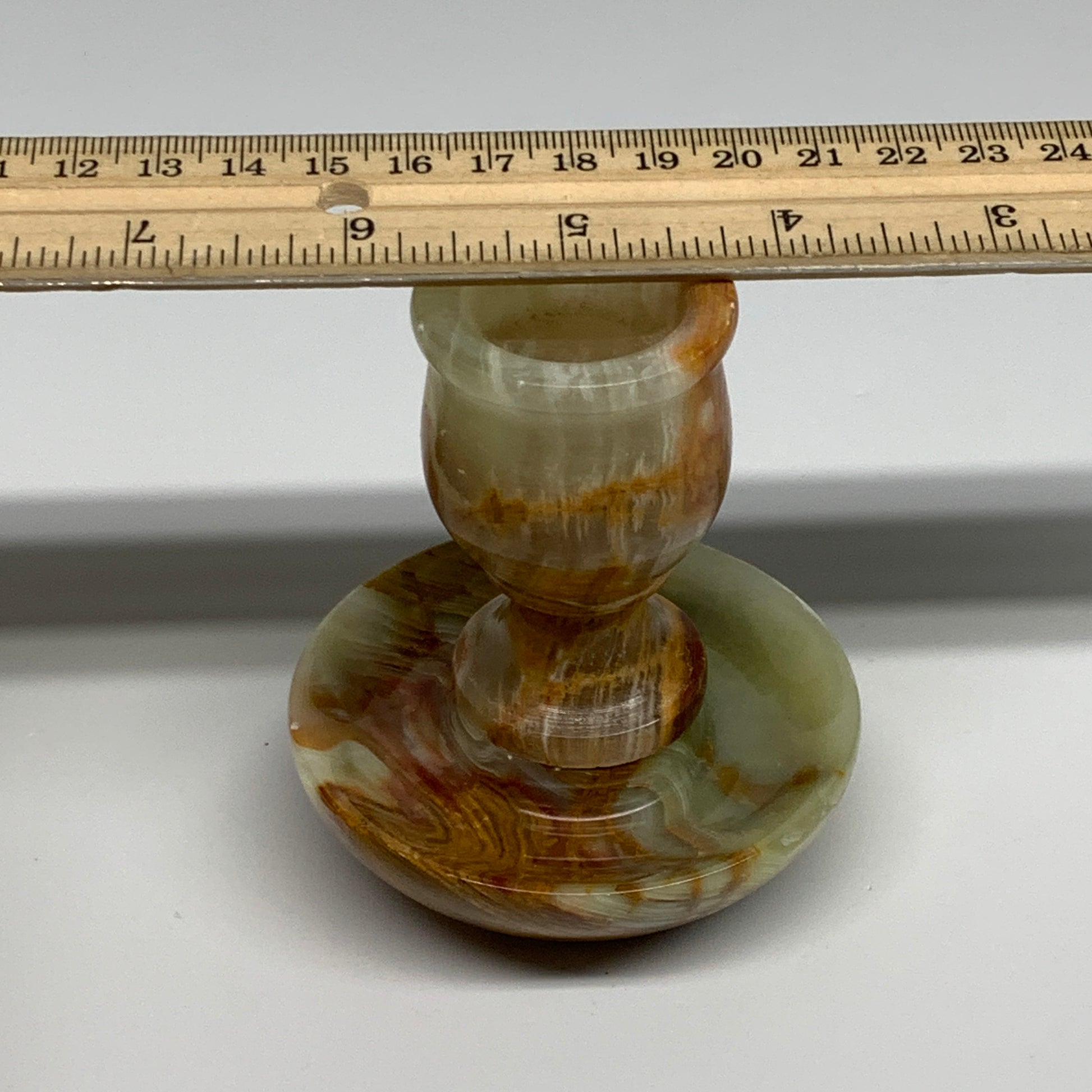 283g, 3.3"x1.5"x2.9", Natural Green Onyx Candle Holder Gemstone Carved, B32226