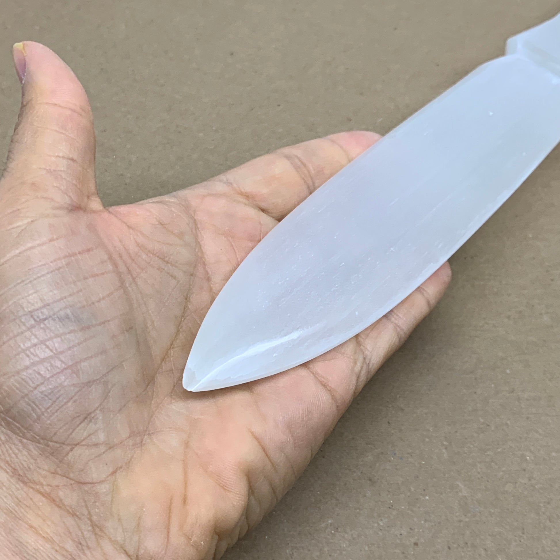This is a natural product so specification varies from item to item. Due to its soft nature, scratches, chips, dents, Rustics, Crack looking lines, Repairs and fractures looking lines are very common in selenites. Therefore, please expect all Selenite products to have some minor issues & imperfections.