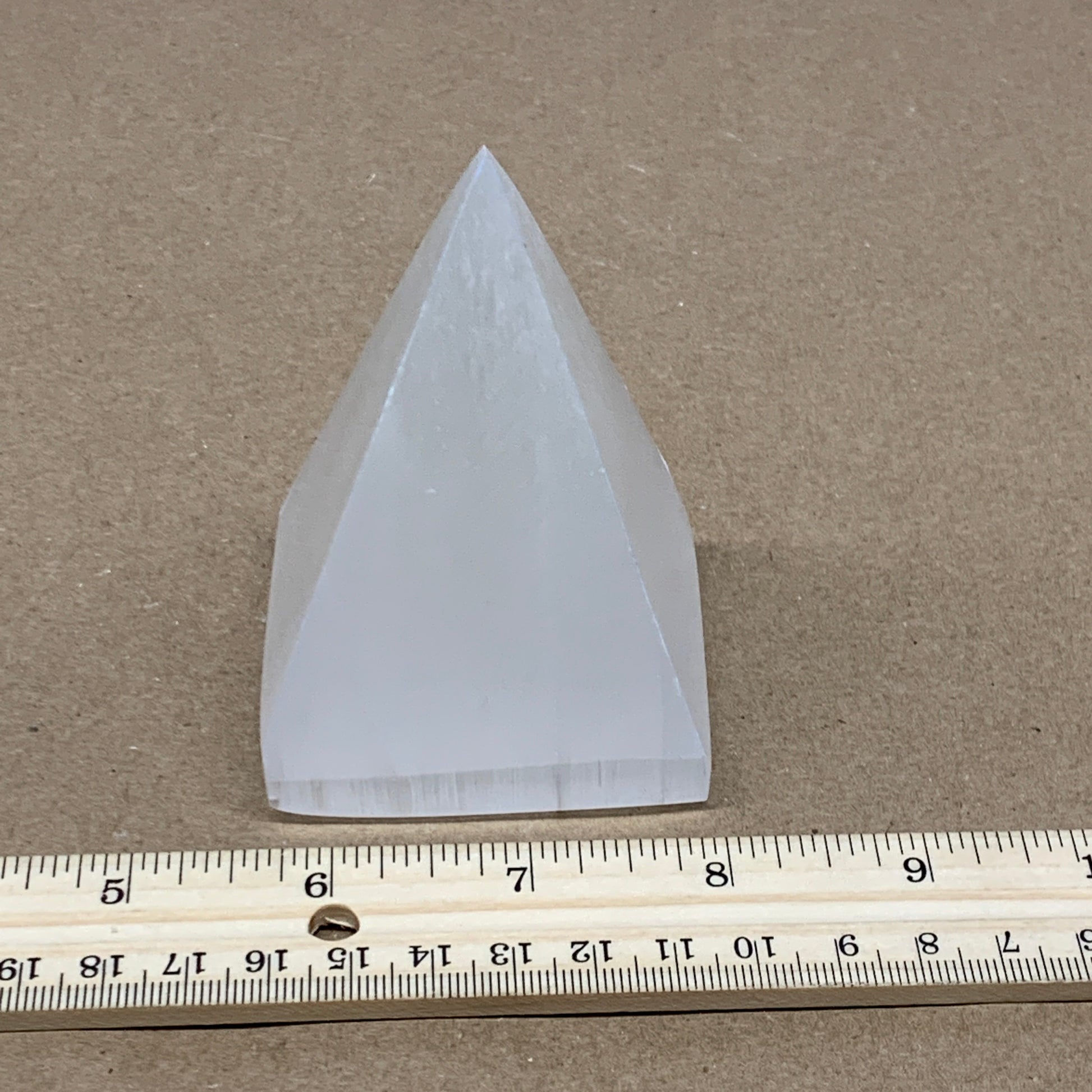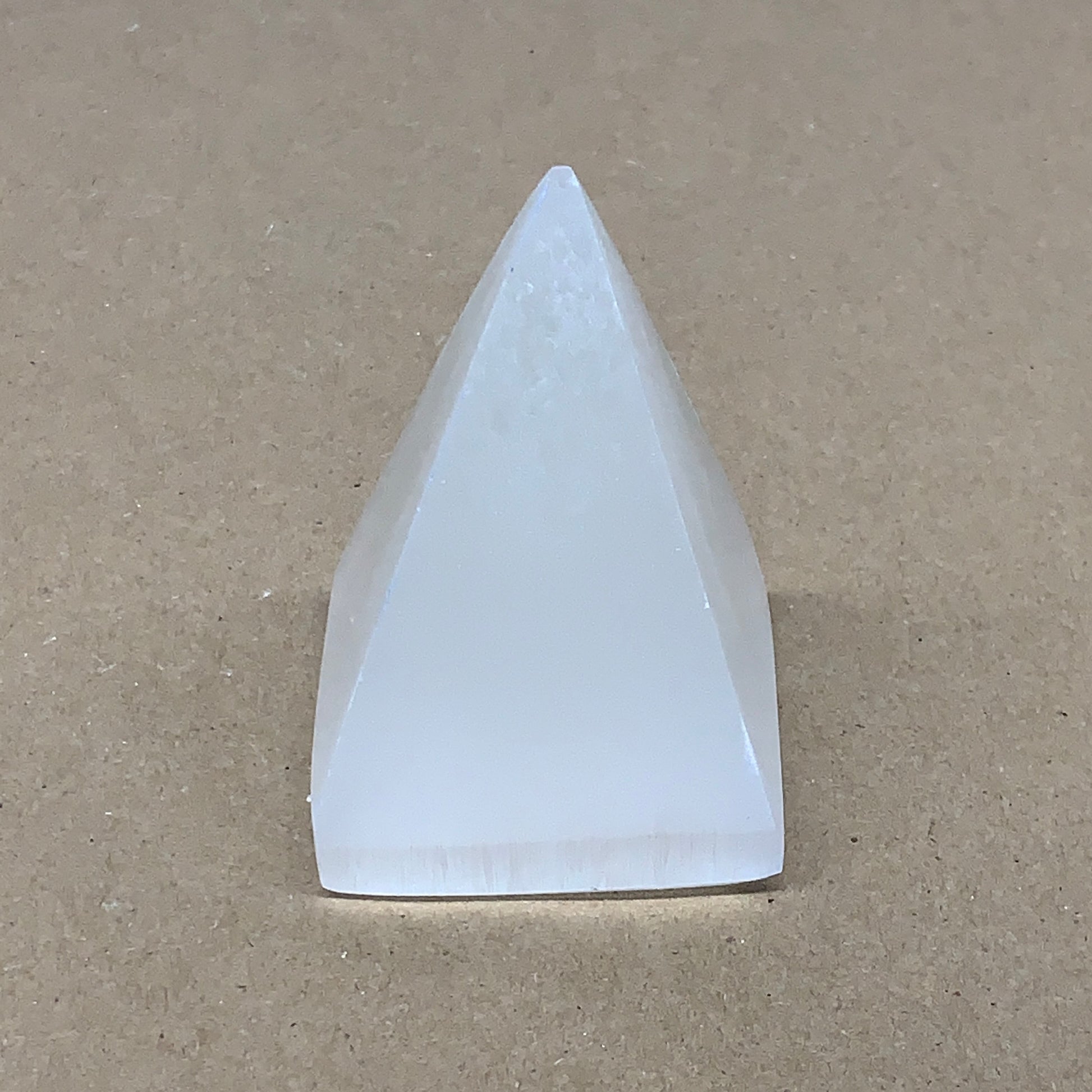 287.7g, 3.3"x2.4" White Selenite/Satin Spar Pyramid Crystal @Morocco, B24183