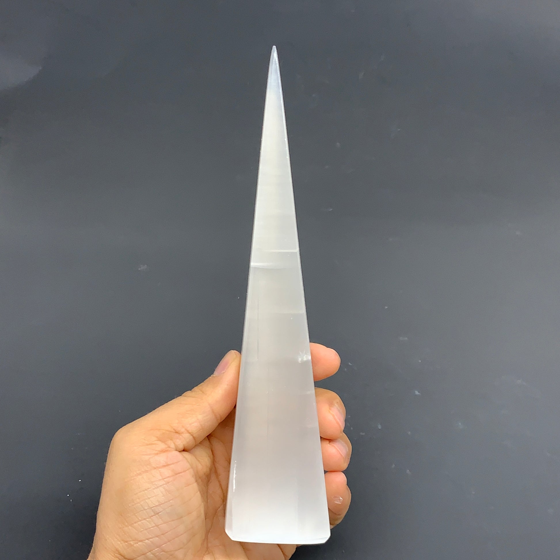 Buyer will receive the exact item as pictured. Look at edges, tips for chips, wears & tears...etc. Selenite is soft so such things are normal to see on selenites
