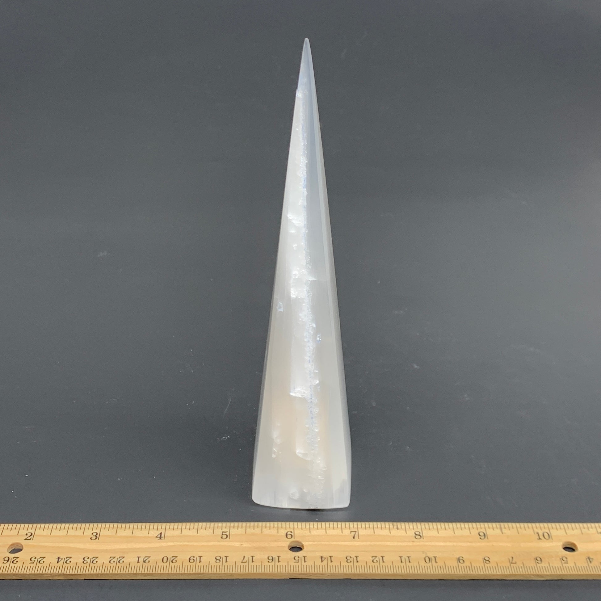 288.1g, 7.8"x1.7", Selenite (Satin Spar) Crystal Crystal Tower Point,B35953