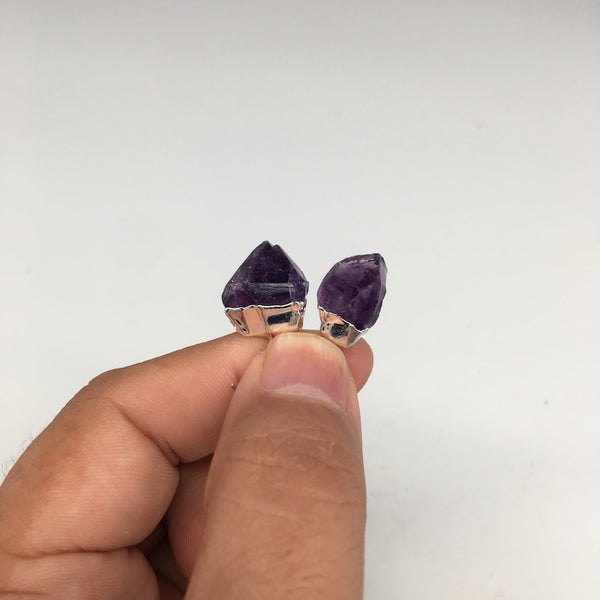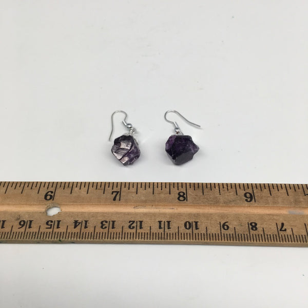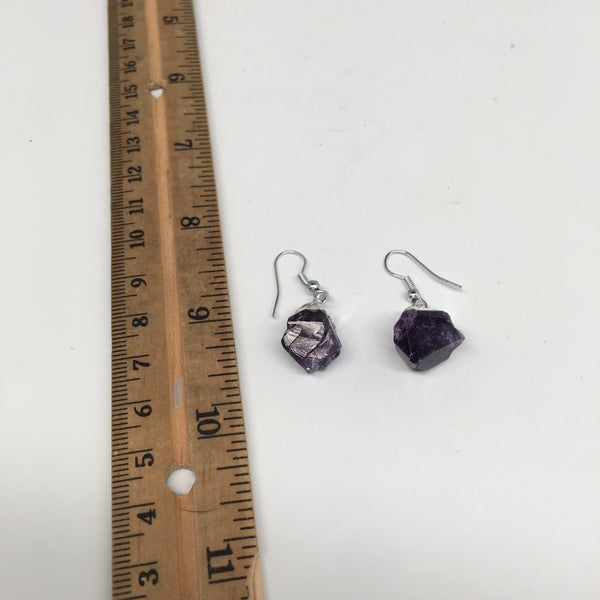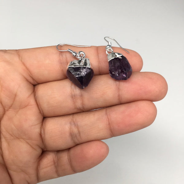 29 cts,1.4"Gorgeous Natural Rough Amethyst Silver Plated Earring @Brazil,BE275