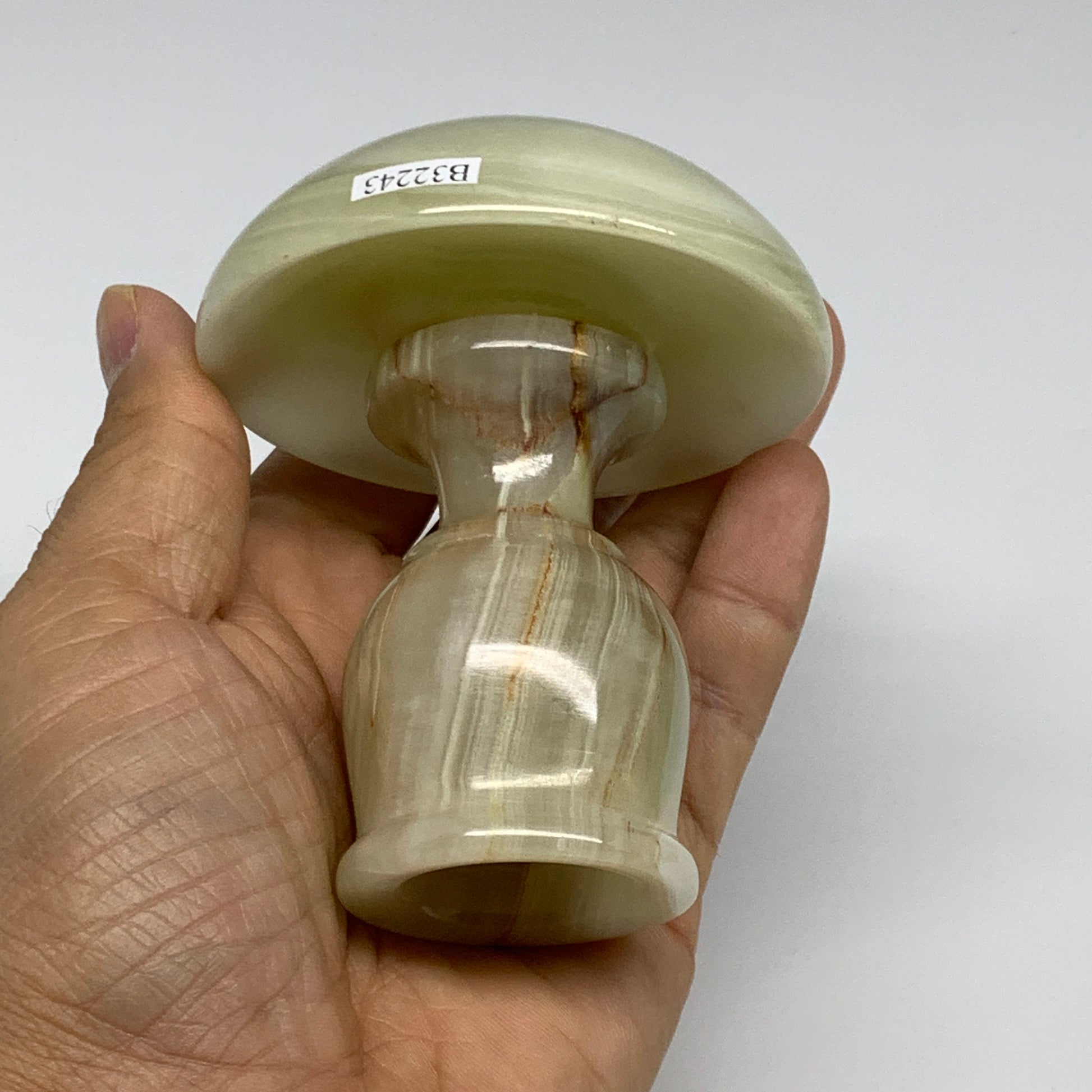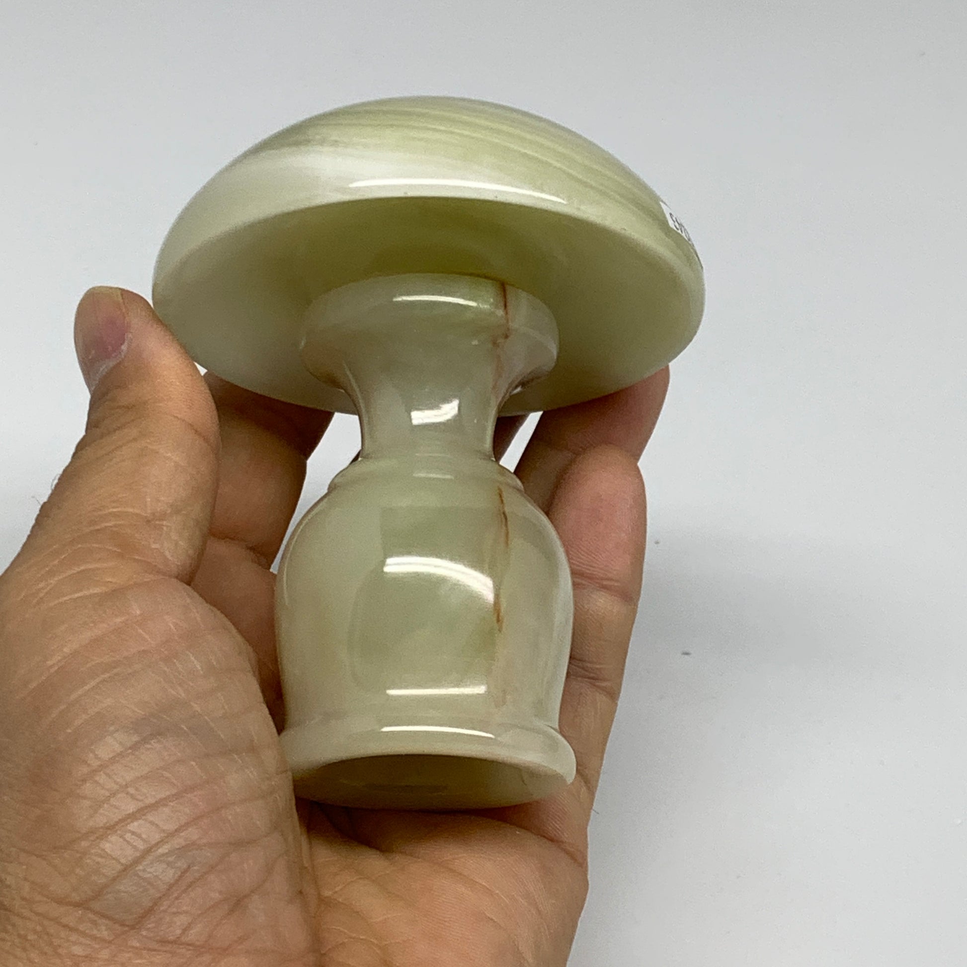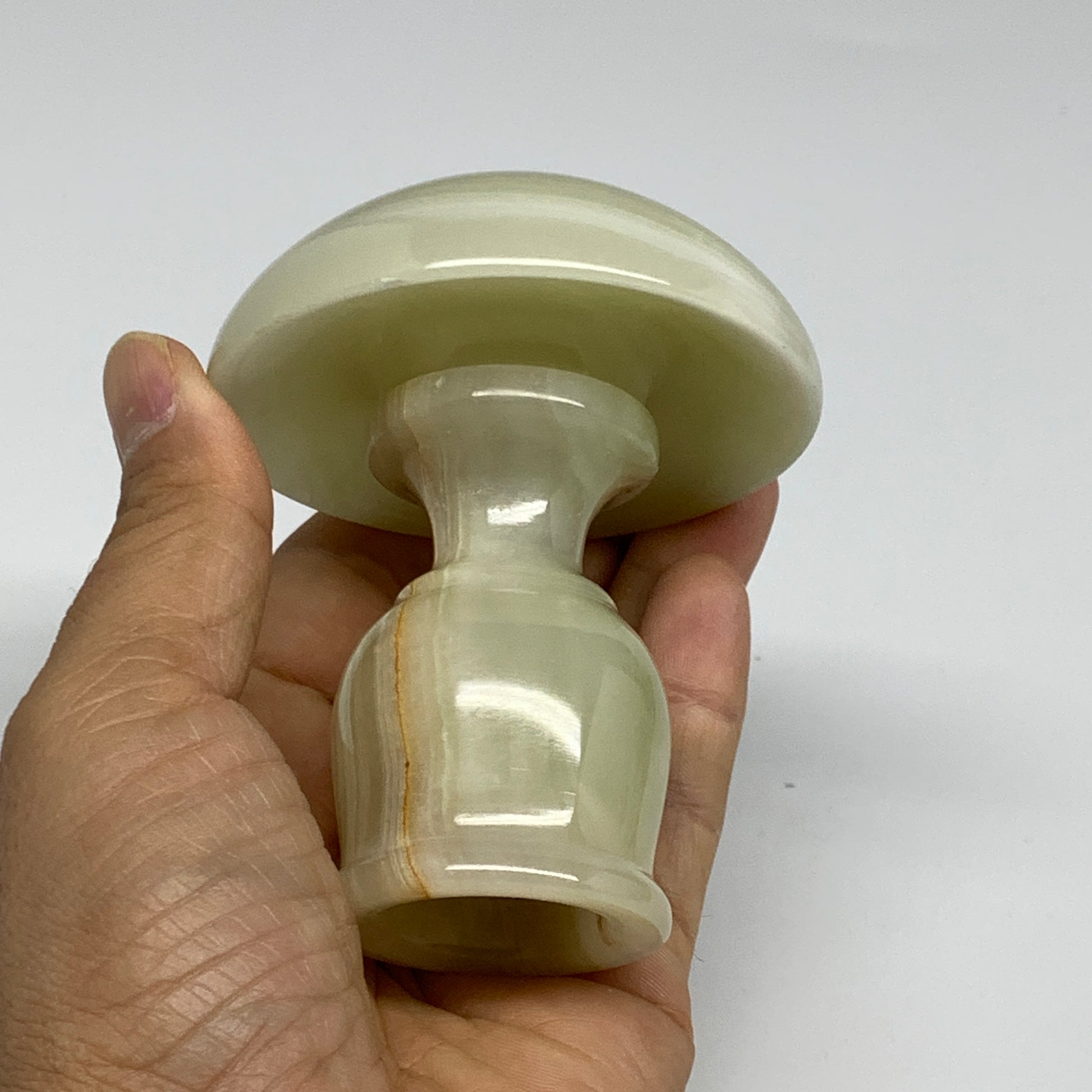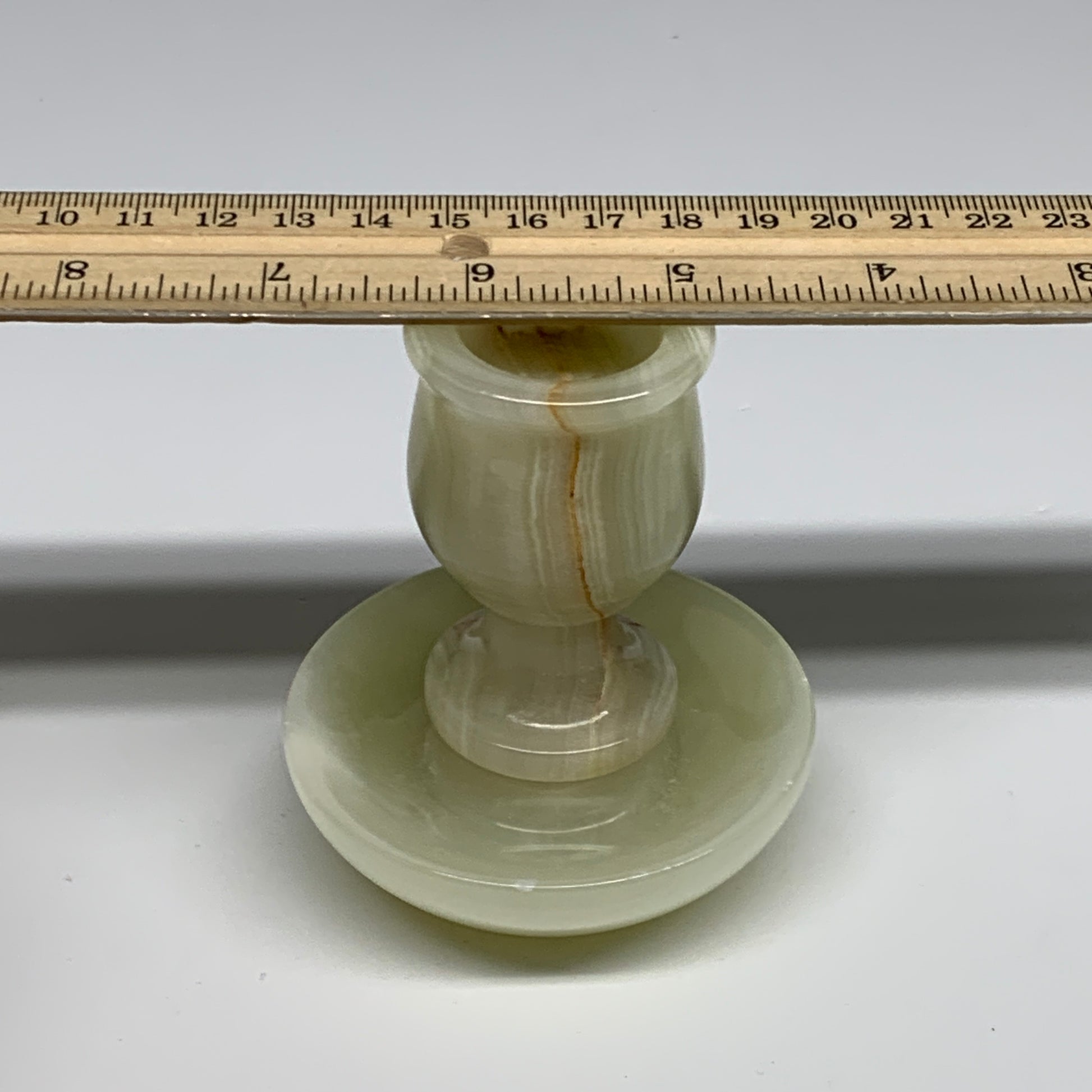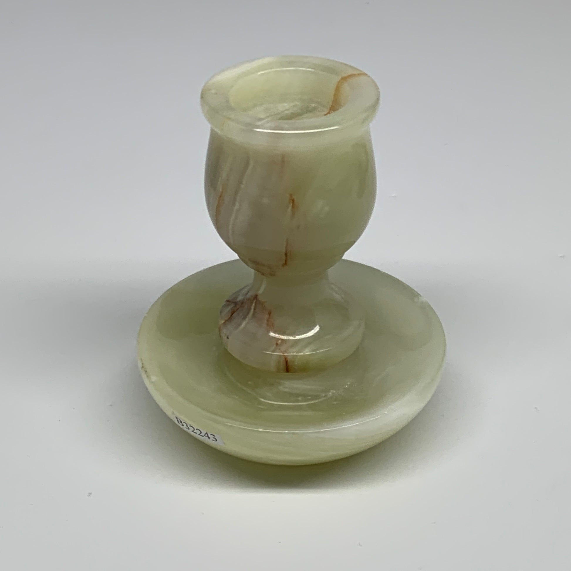 291g, 3.3"x1.5"x2.9", Natural Green Onyx Candle Holder Gemstone Carved, B32243
