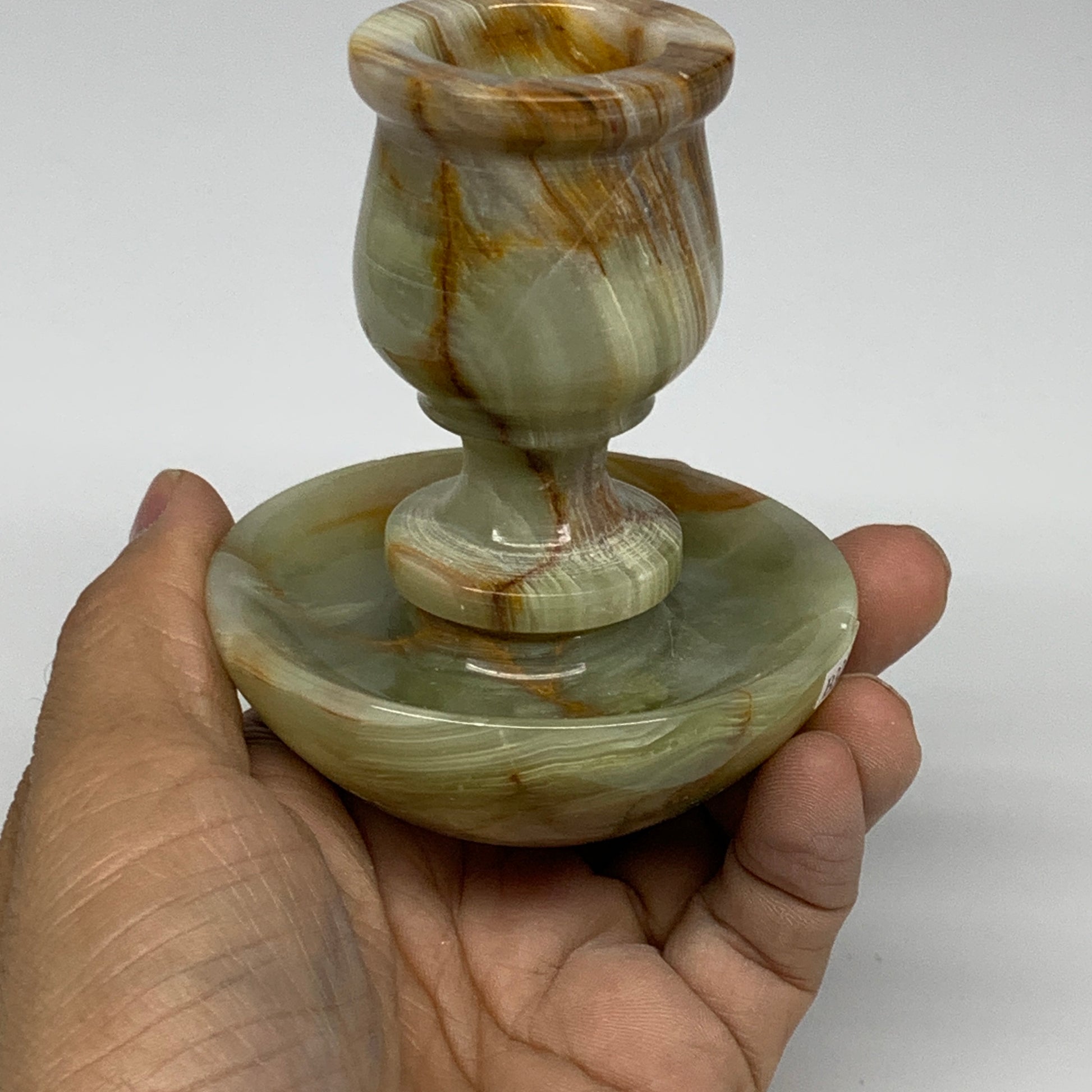 285g, 3.2"x1.5"x2.9", Natural Green Onyx Candle Holder Gemstone Hand Carved, B32177