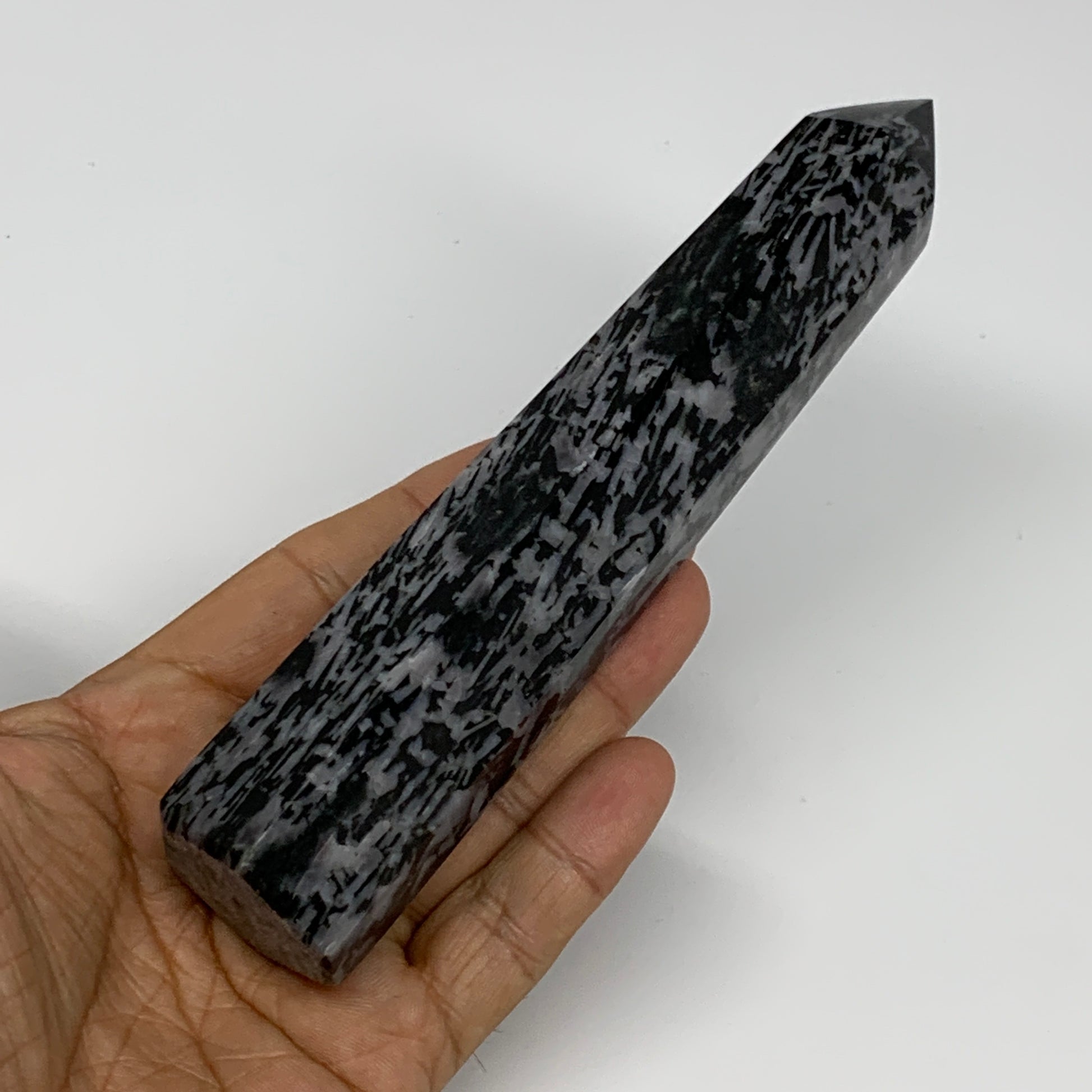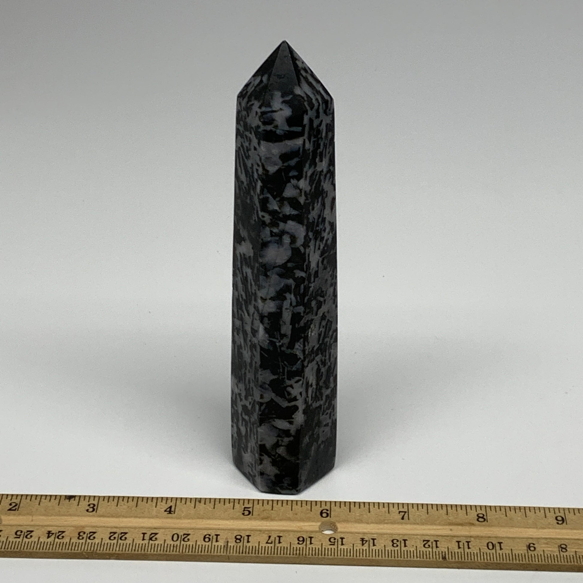 293g, 6.2" x 1.3" x 1.3" Indigo Gabro Merlinite Point Tower @Madagascar,B18352
