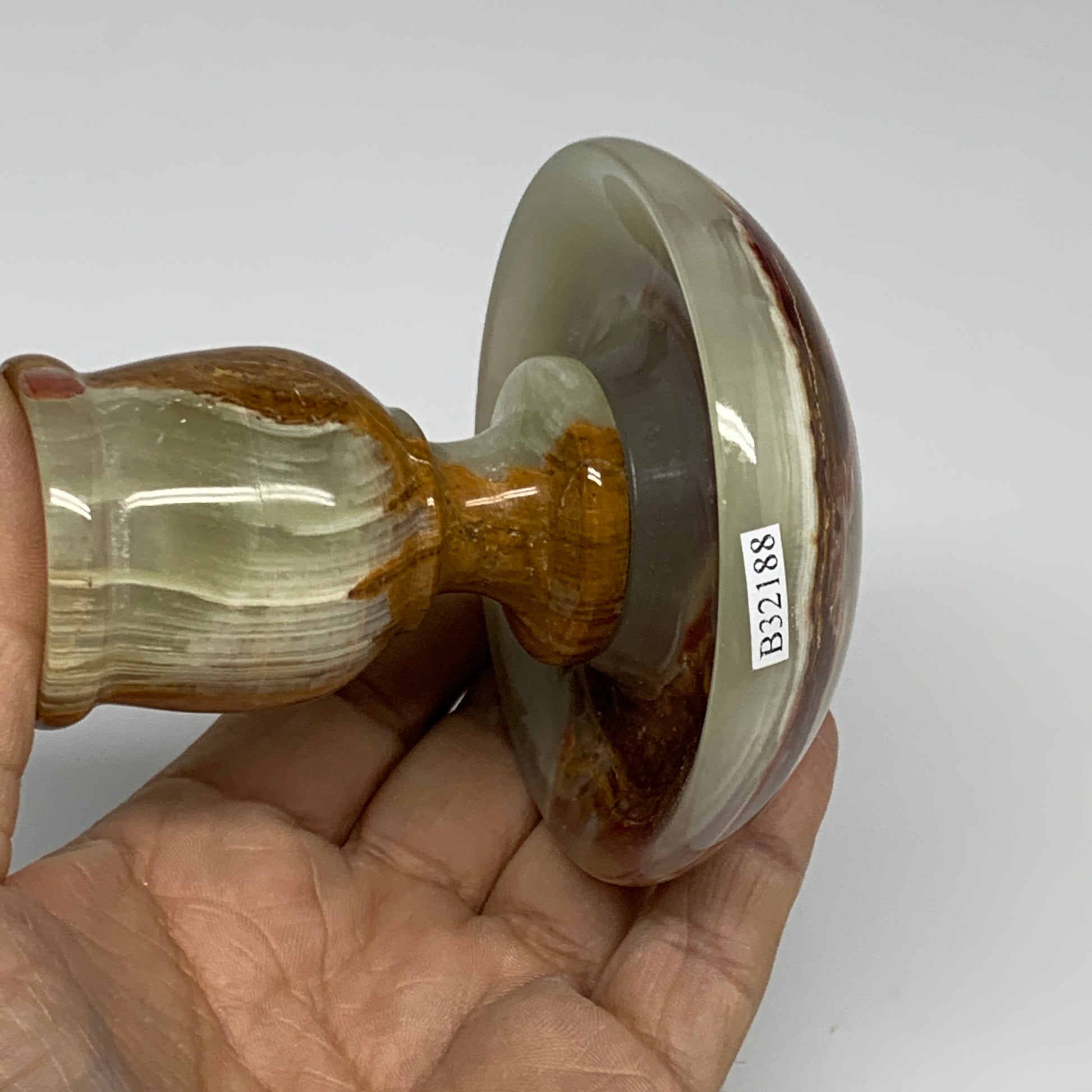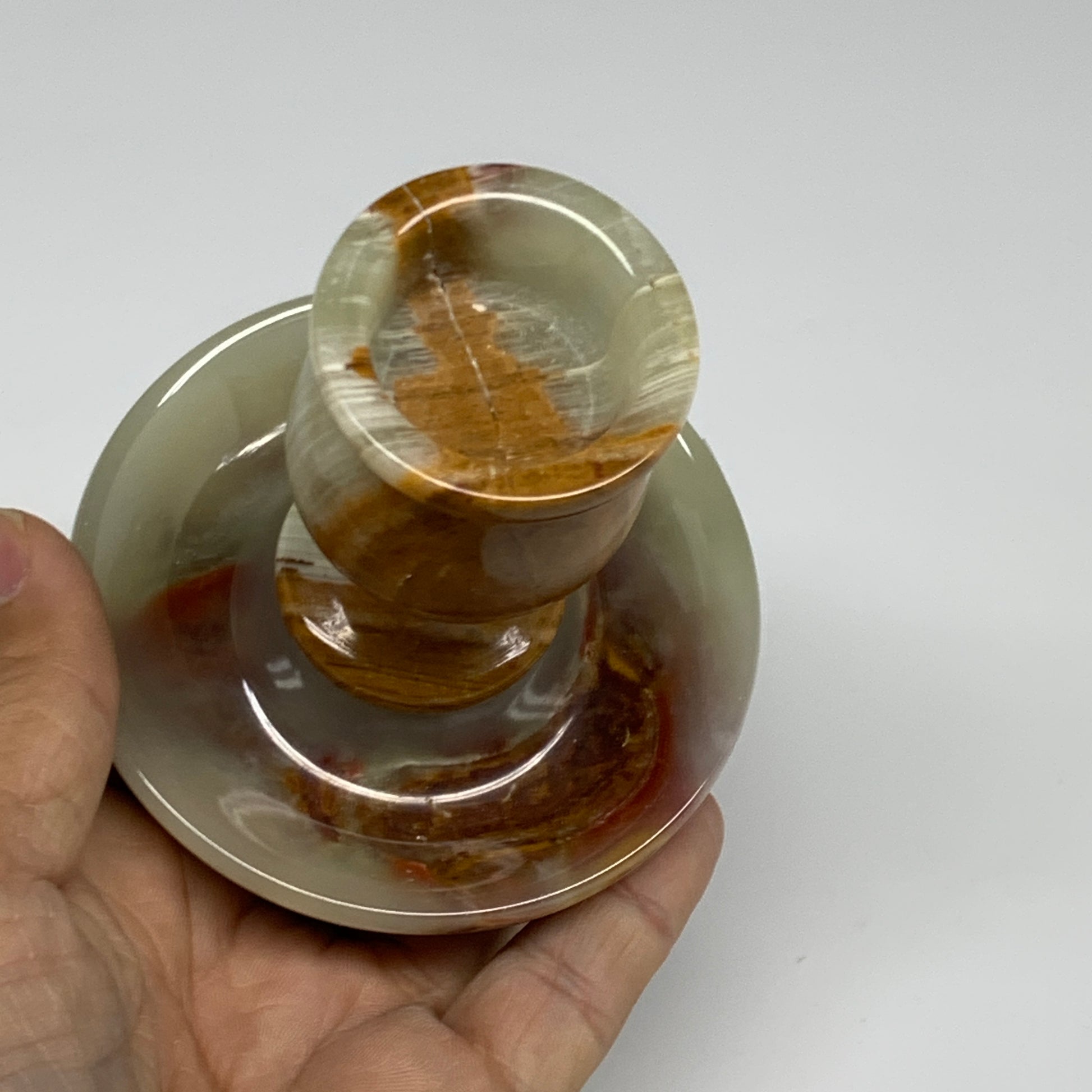 294g, 3.2"x1.4"x3", Natural Green Onyx Candle Holder Gemstone Hand Carved, B3218