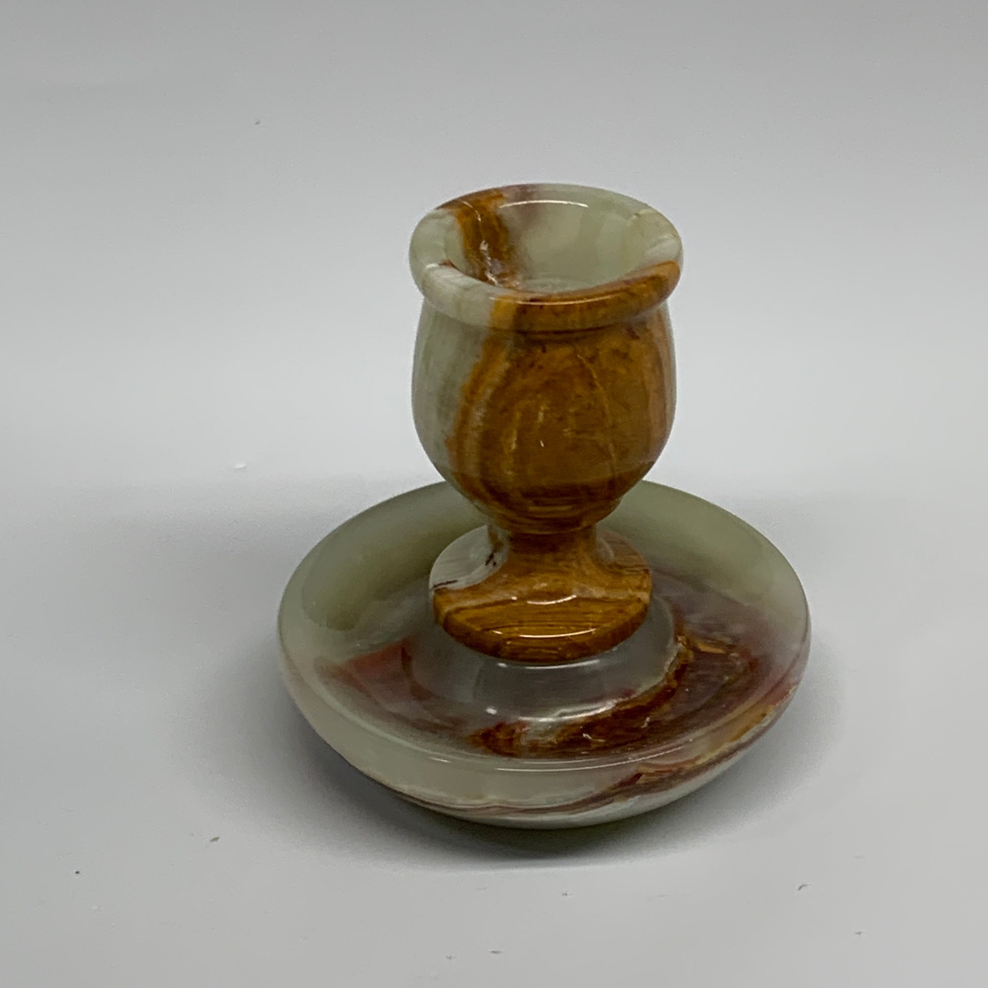 264g, 3.2"x1.4"x2.9", Natural Green Onyx Candle Holder Gemstone Hand Carved, B32187