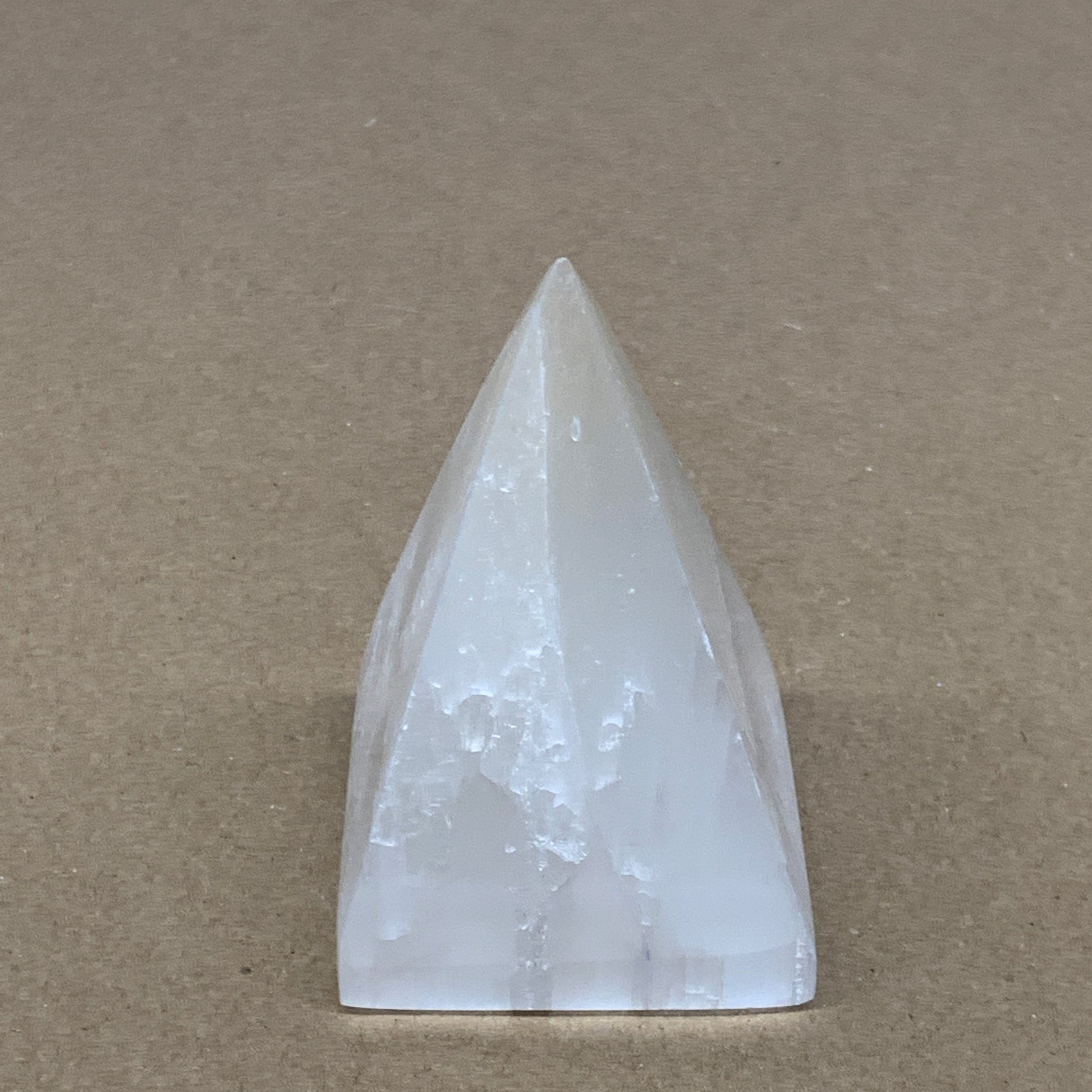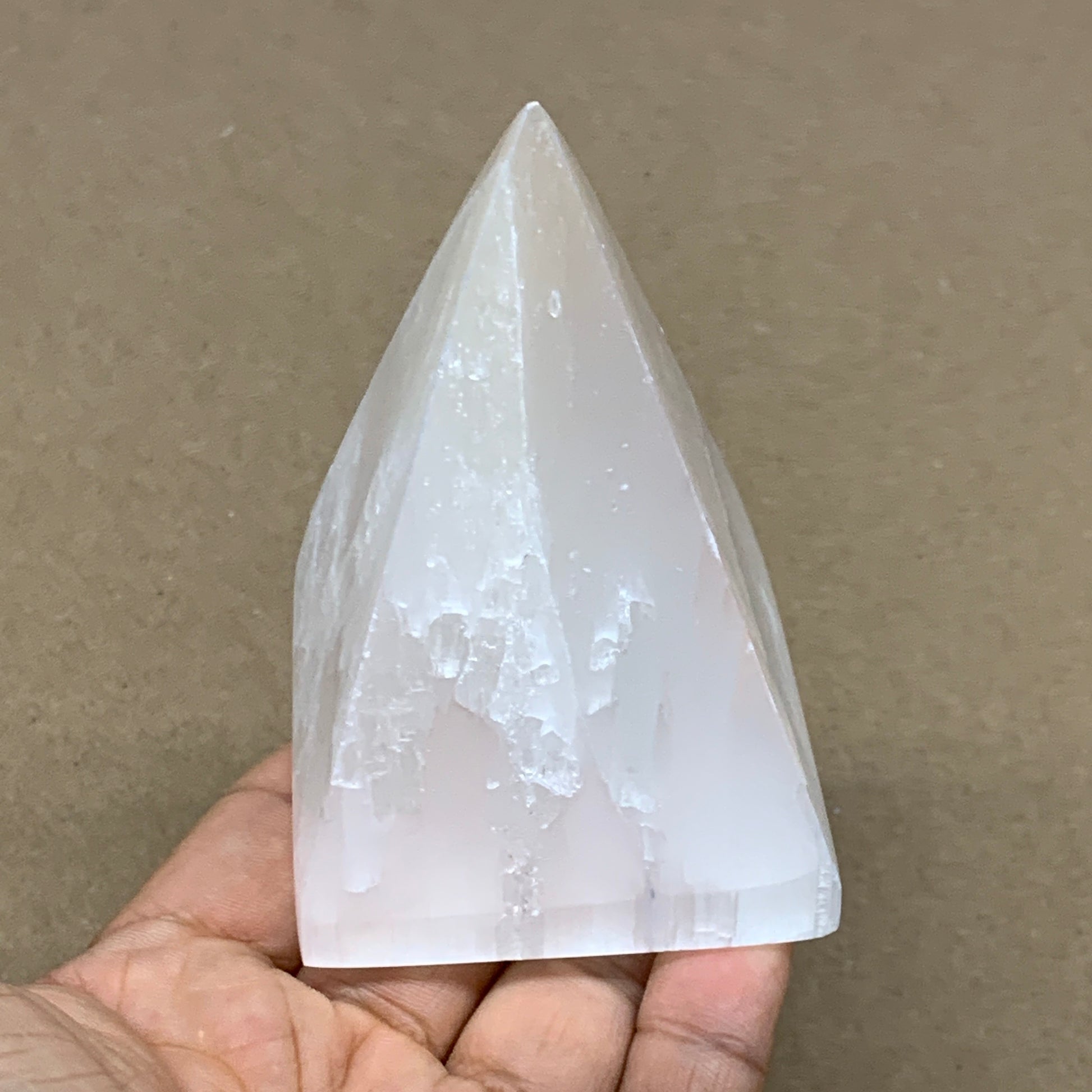 294g, 3.5"x2.4" White Selenite/Satin Spar Pyramid Crystal @Morocco, B24147