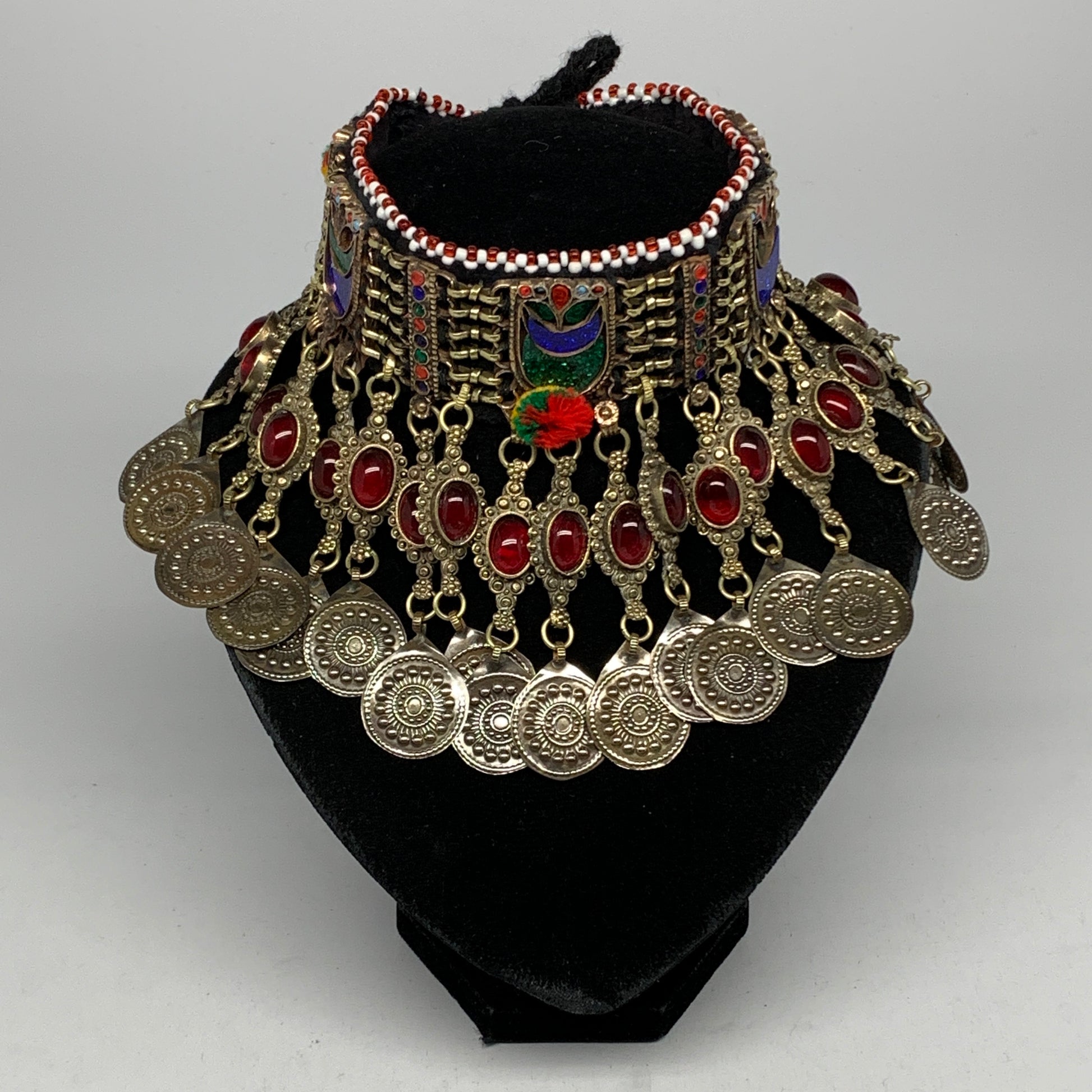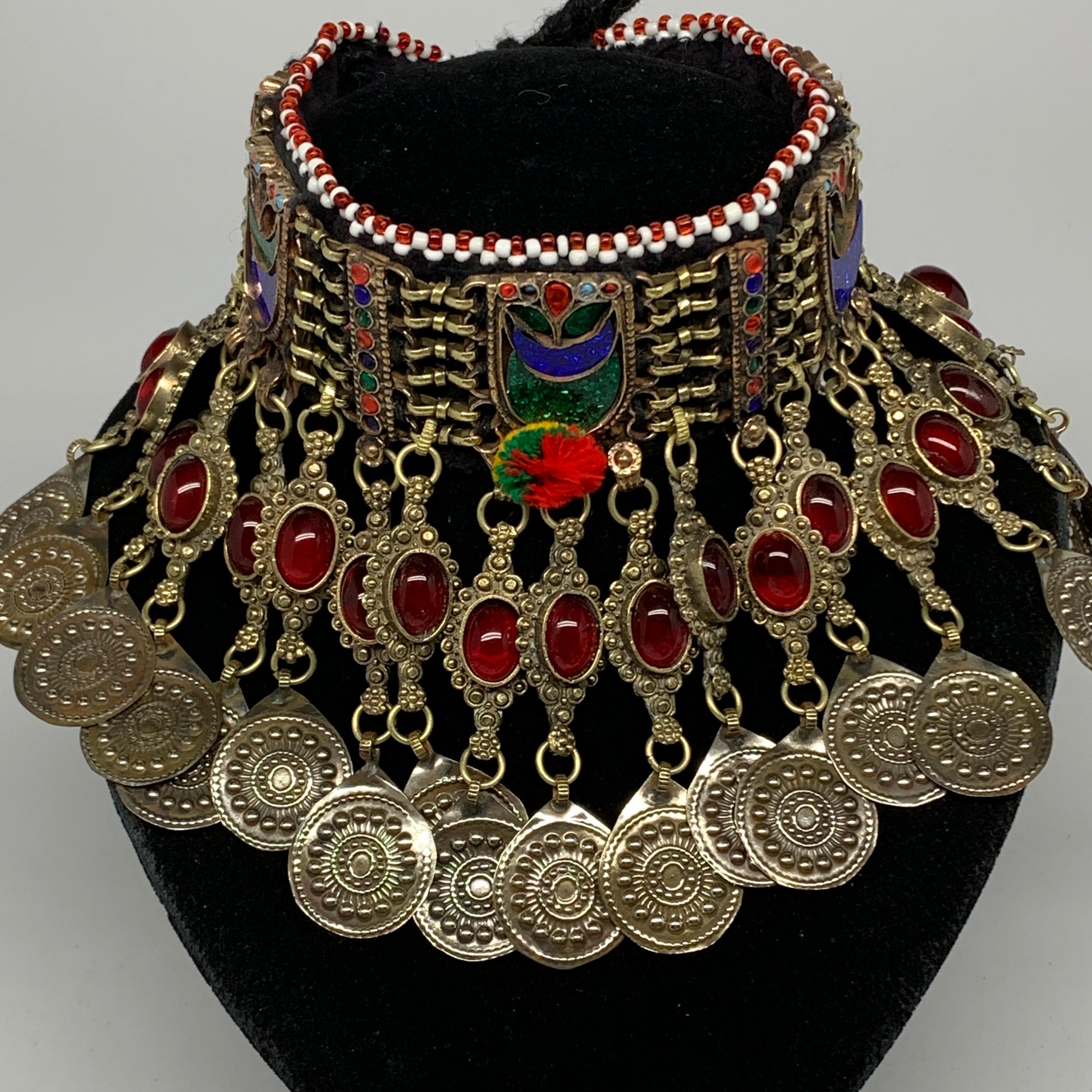 295g, 12"x4.5"Kuchi Choker Necklace Multi-Color Tribal Gypsy Bohemian,B14067