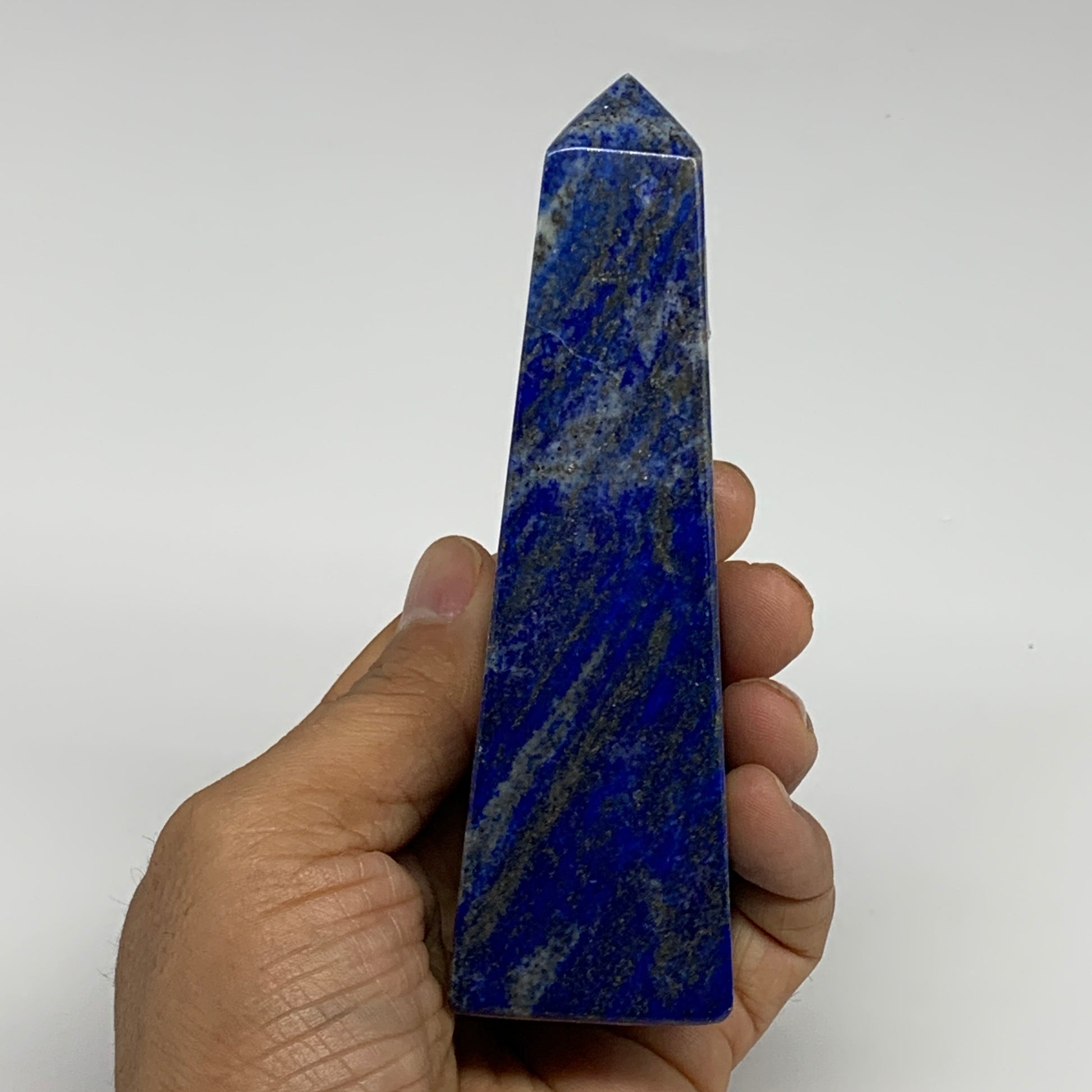 298.2g, 4.6"x1.4"x1.5", Natural Lapis Lazuli Tower Point Obelisk Afghanistan,B30509