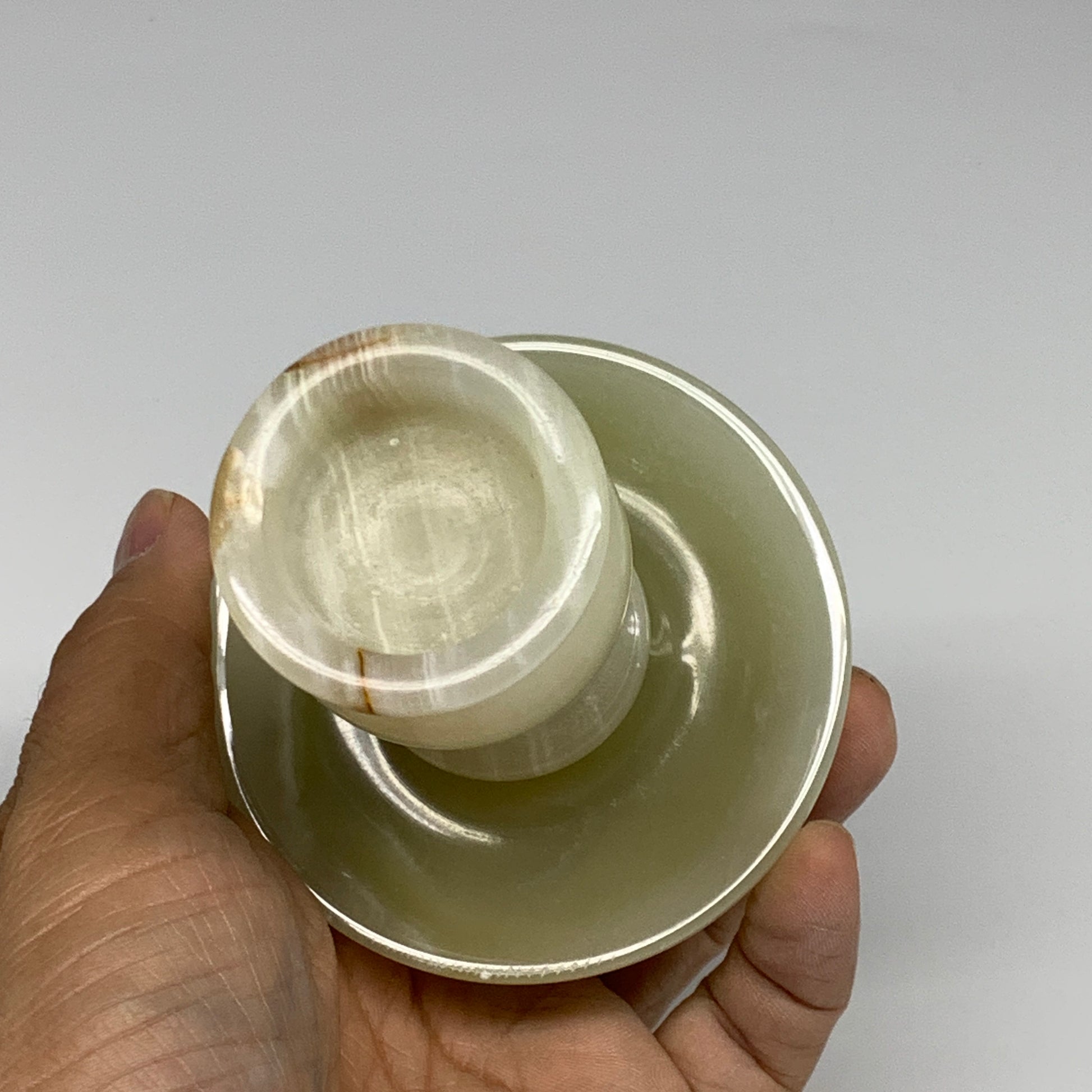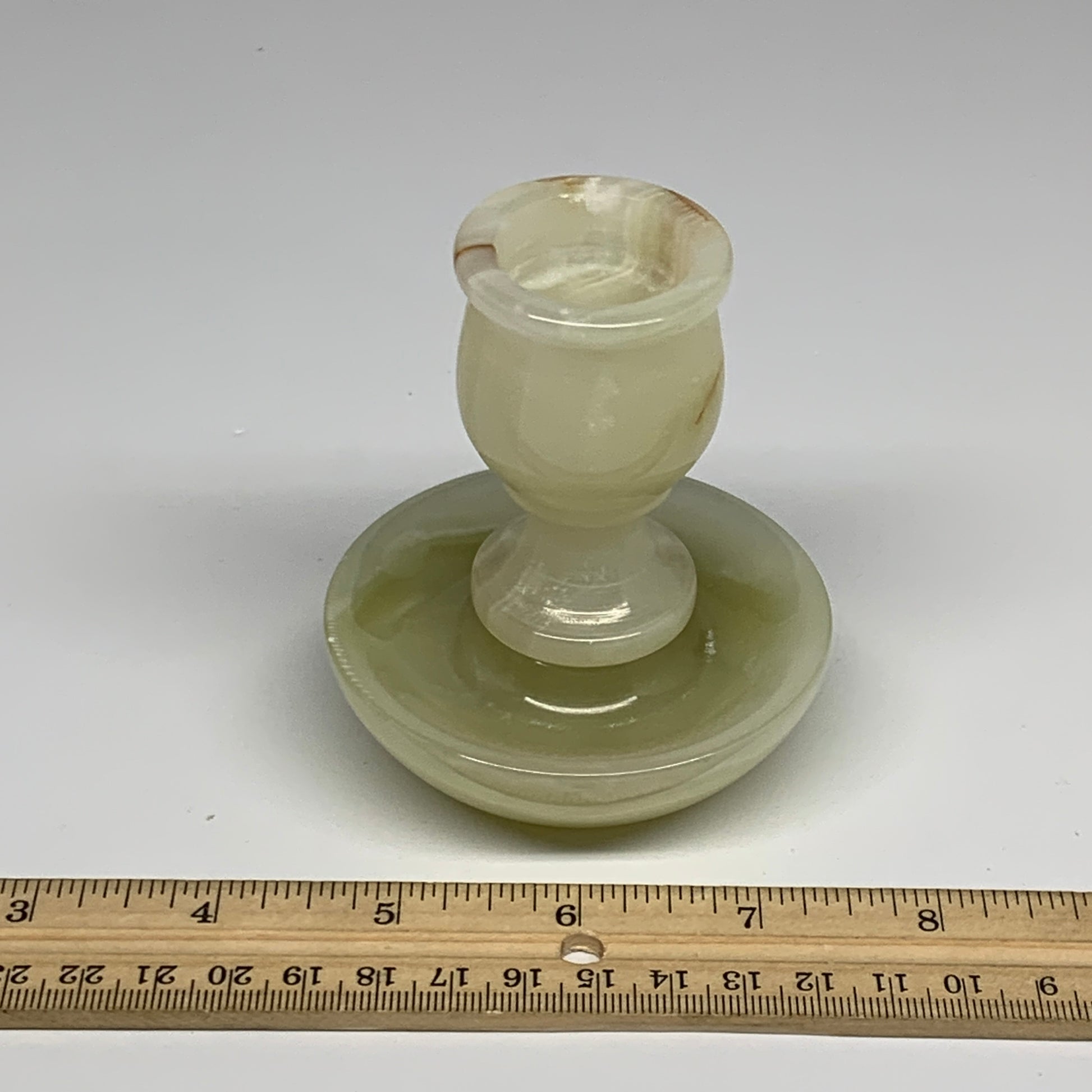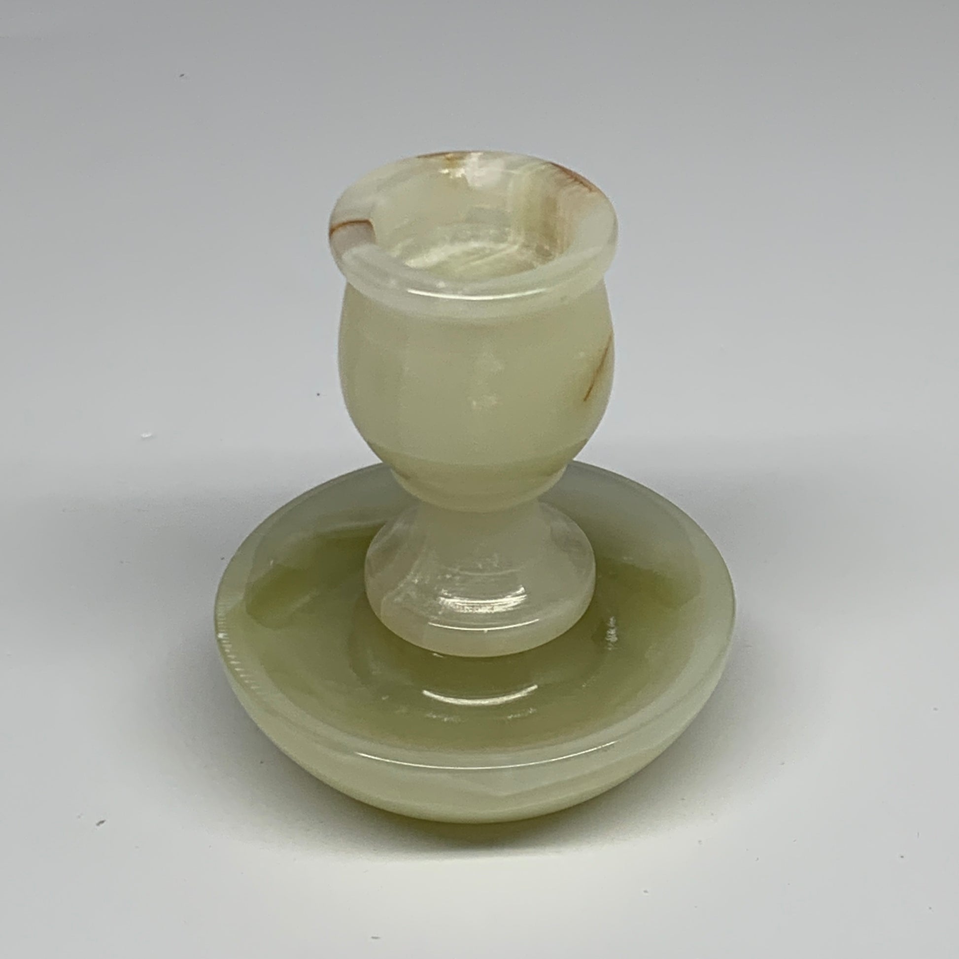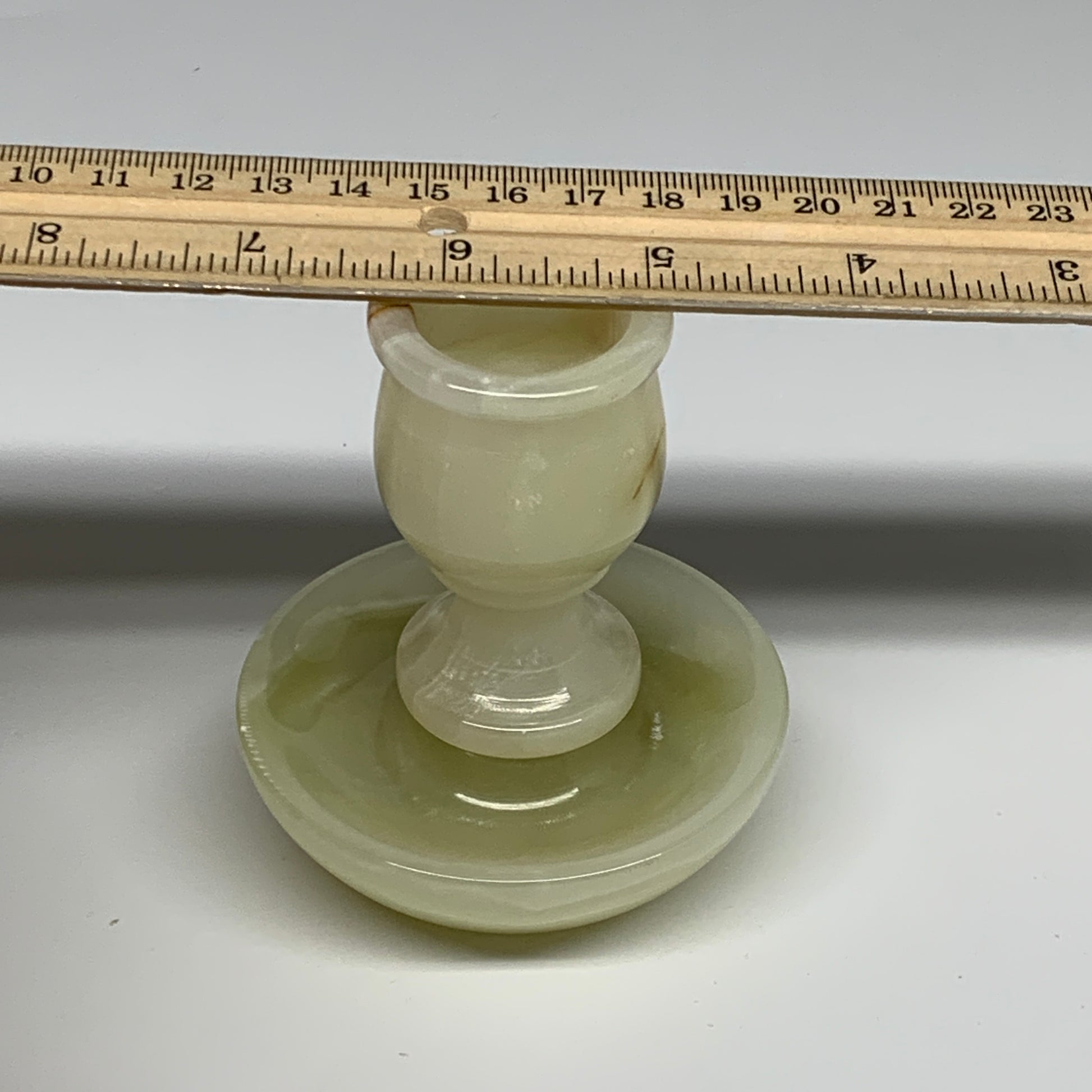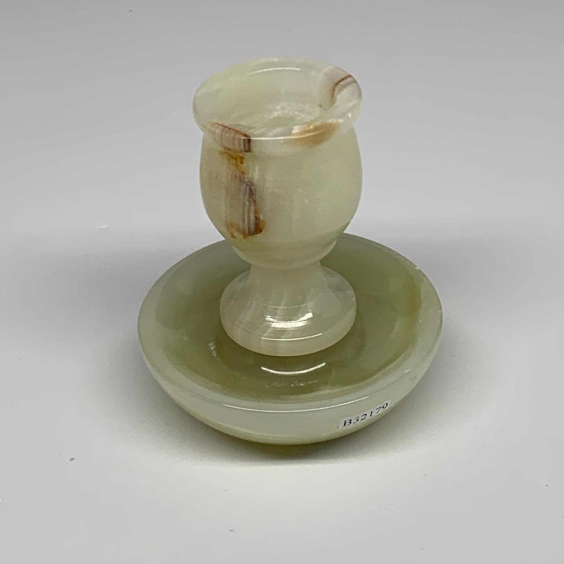 299.9g, 3.3"x1.5"x3", Natural Green Onyx Candle Holder Gemstone Hand Carved, B32179