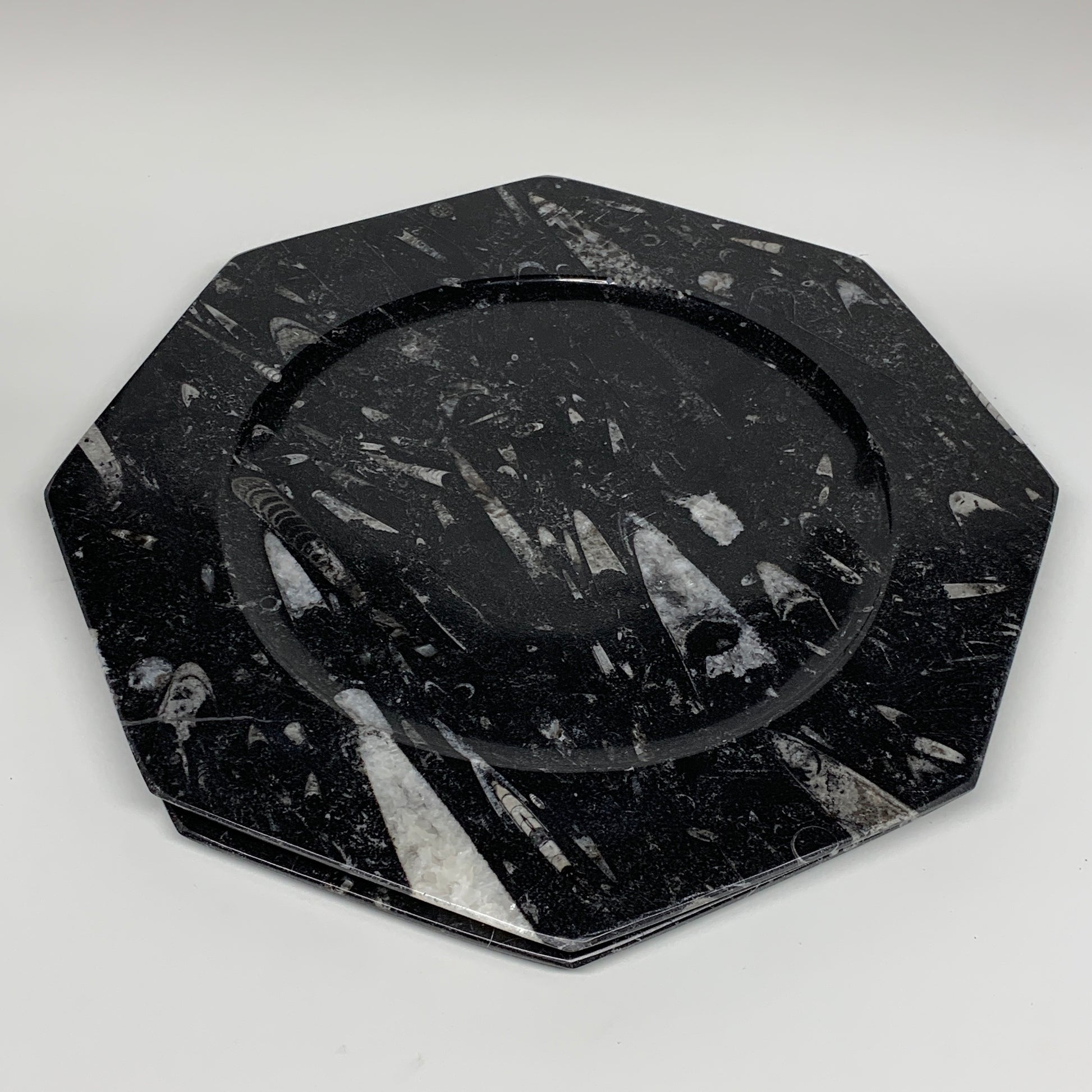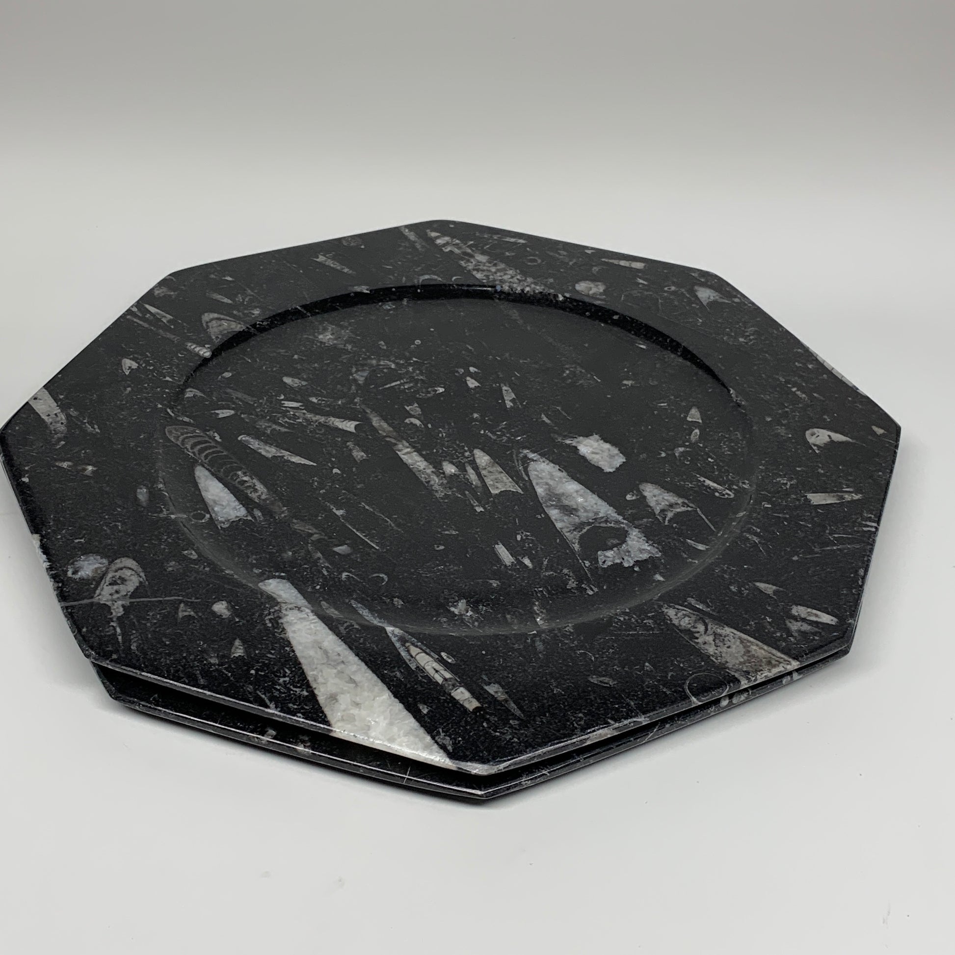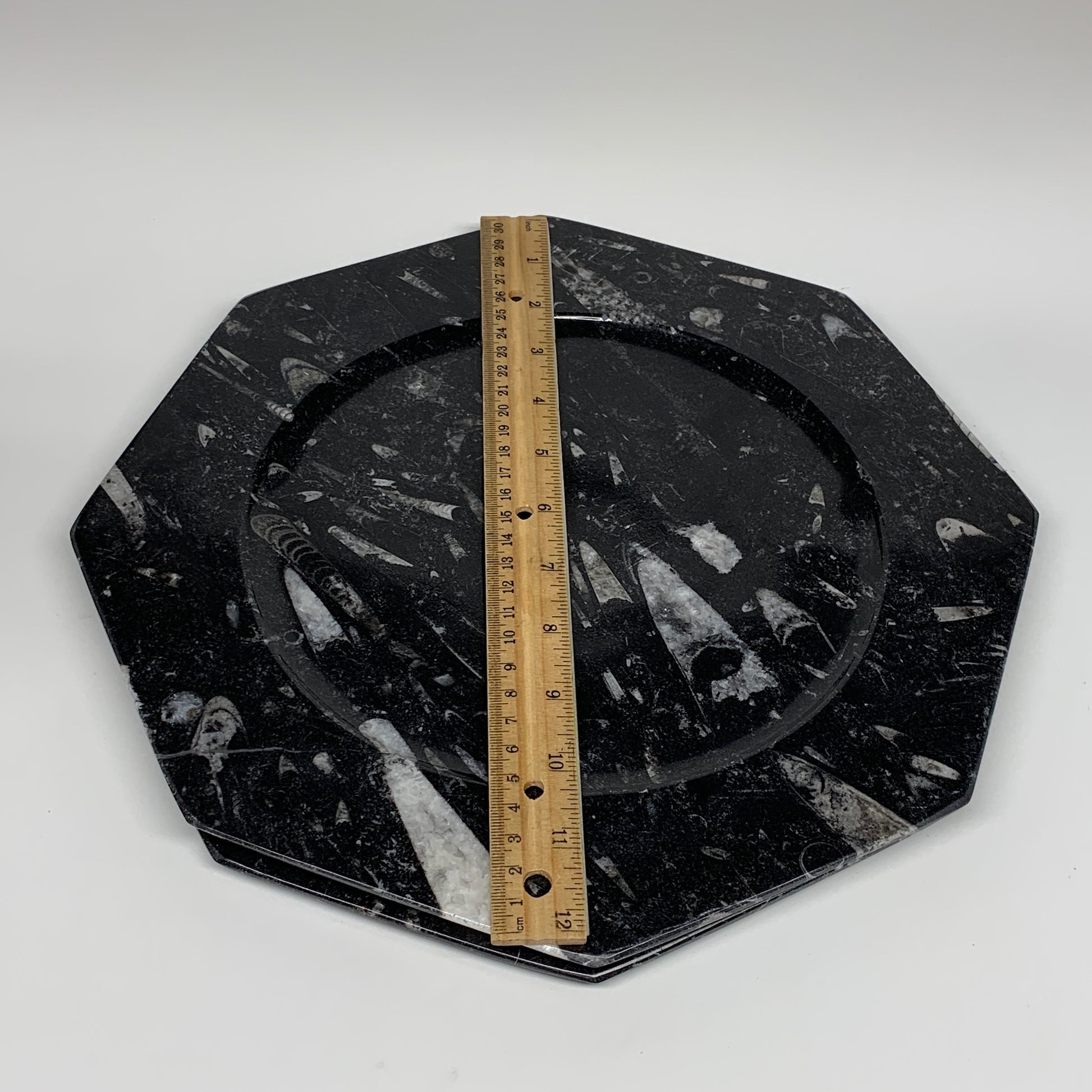 2pcs, 12" Large Octagon Shape Black Fossils Orthoceras Plates @Morocco, B8287