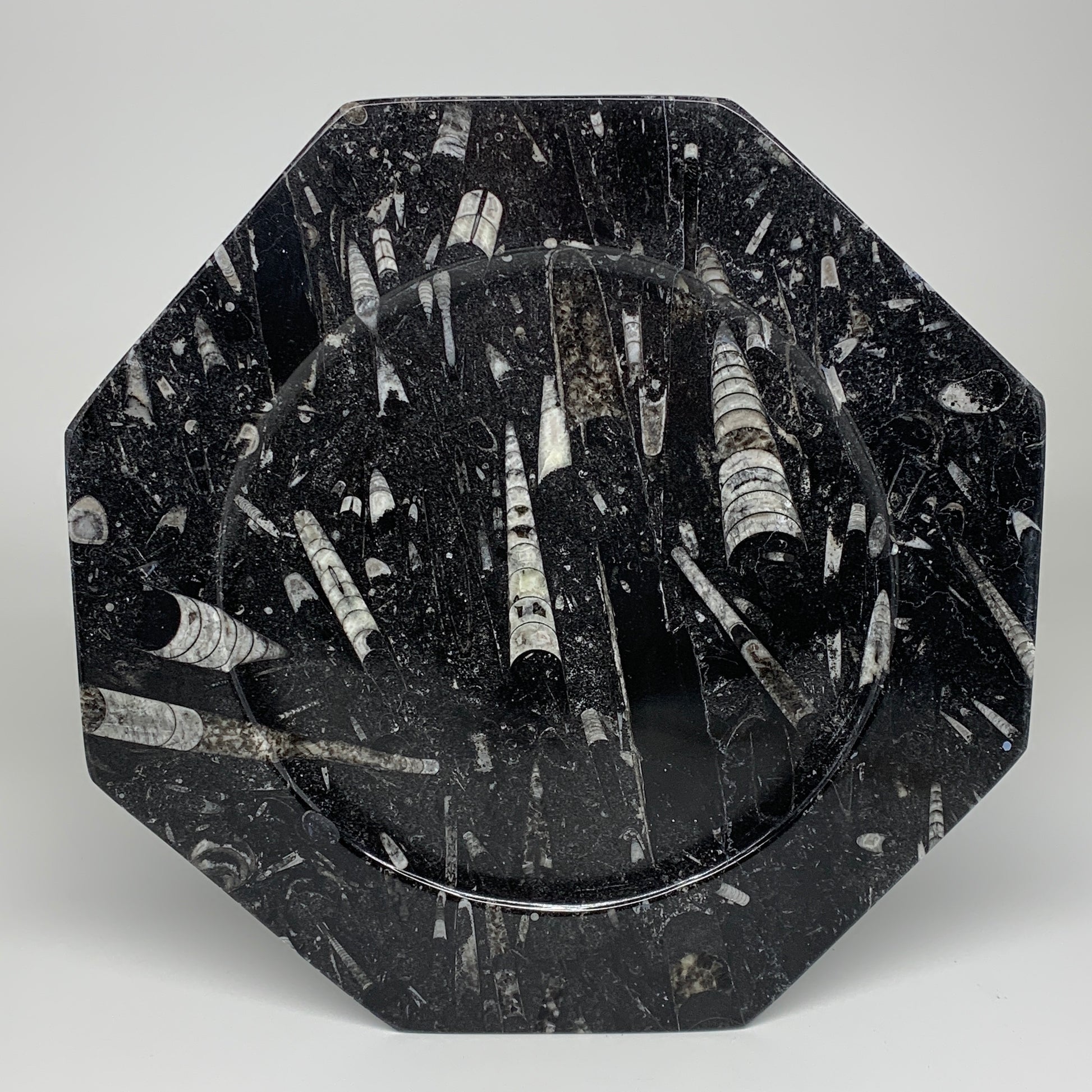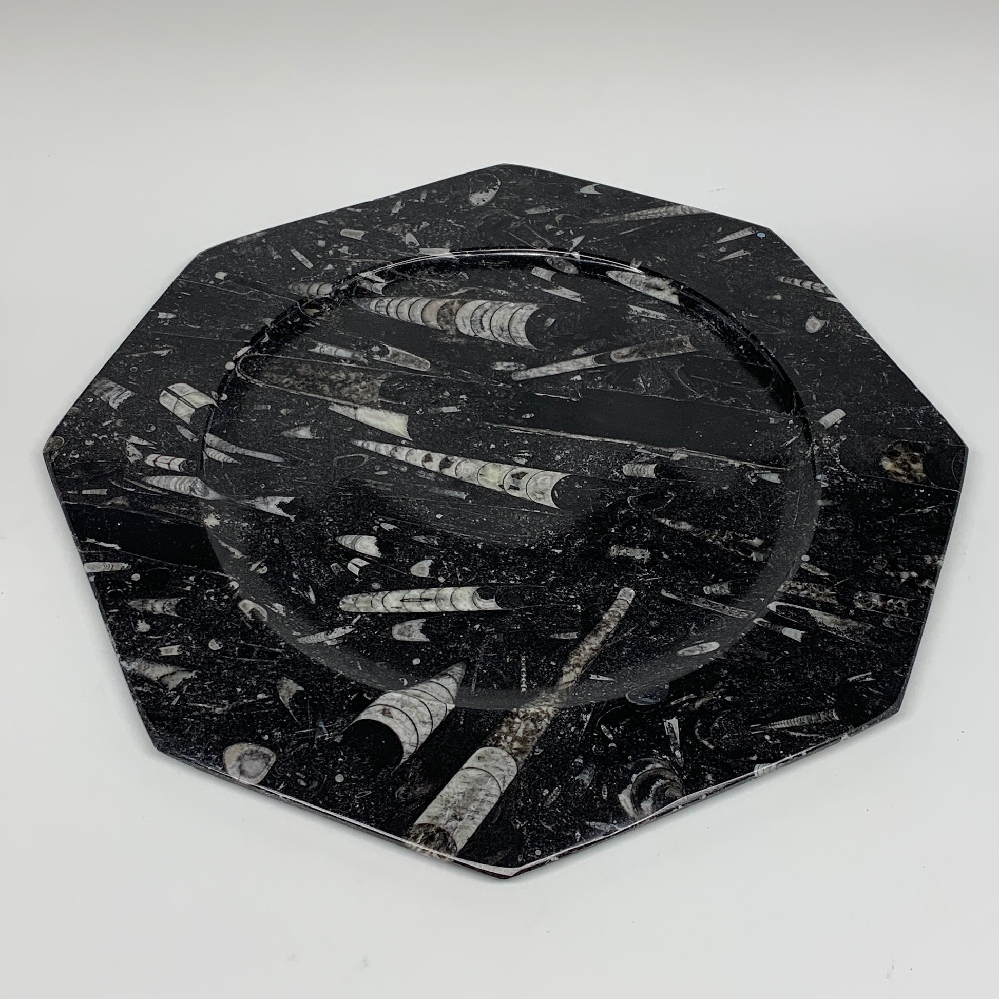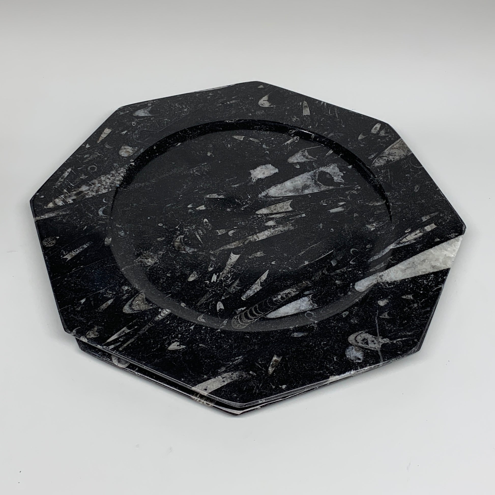 2pcs, 12" Large Octagon Shape Black Fossils Orthoceras Plates @Morocco, B8287