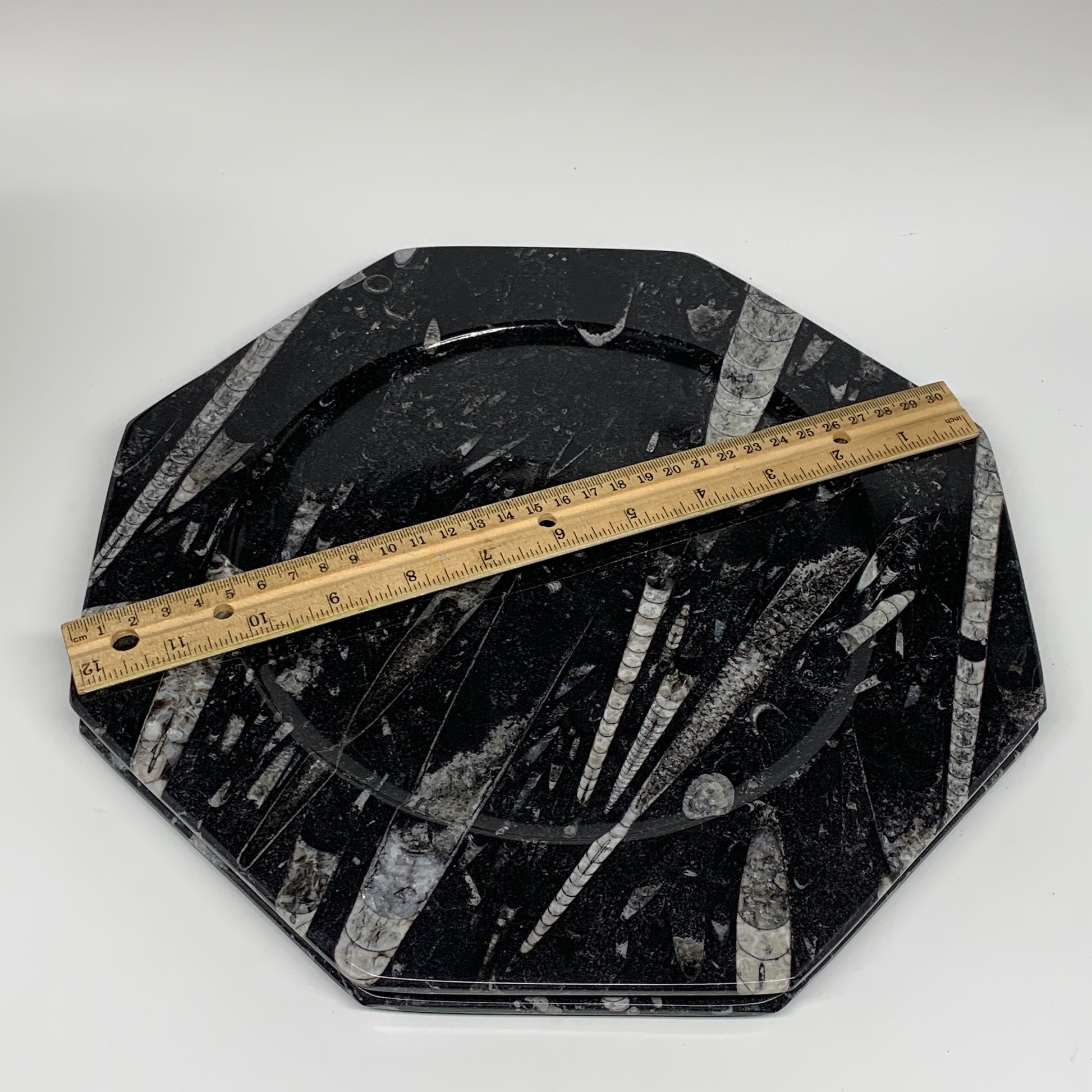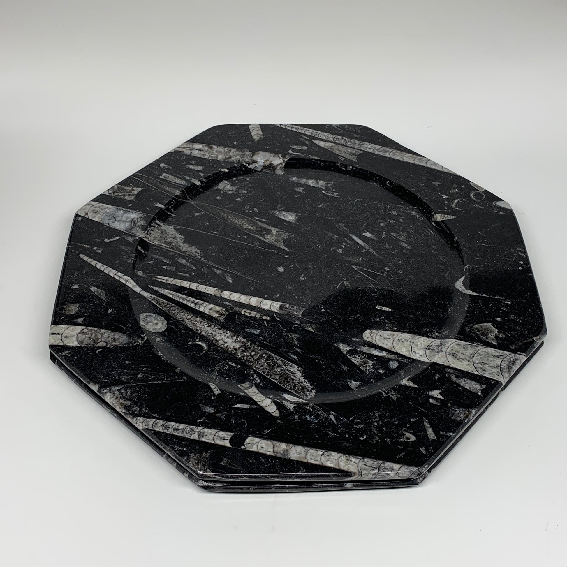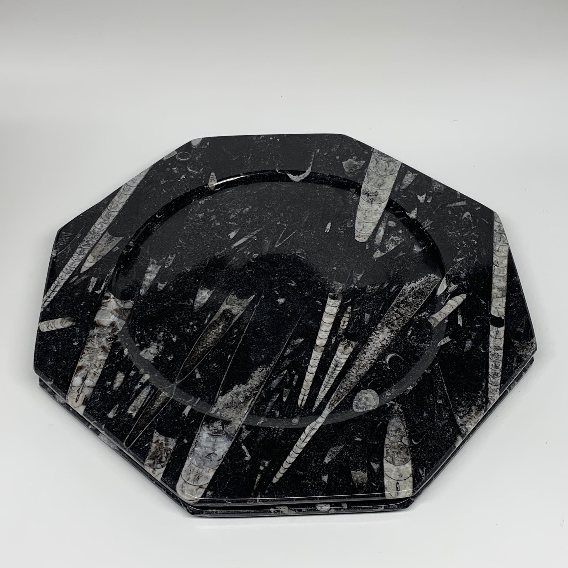 2pcs, 12" Large Octagon Shape Black Fossils Orthoceras Plates @Morocco, B8297