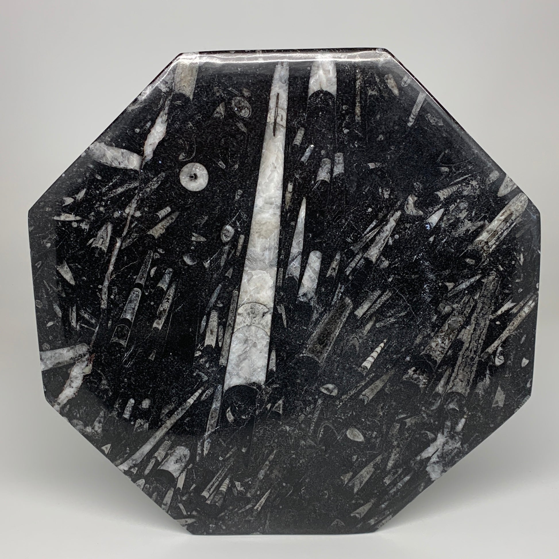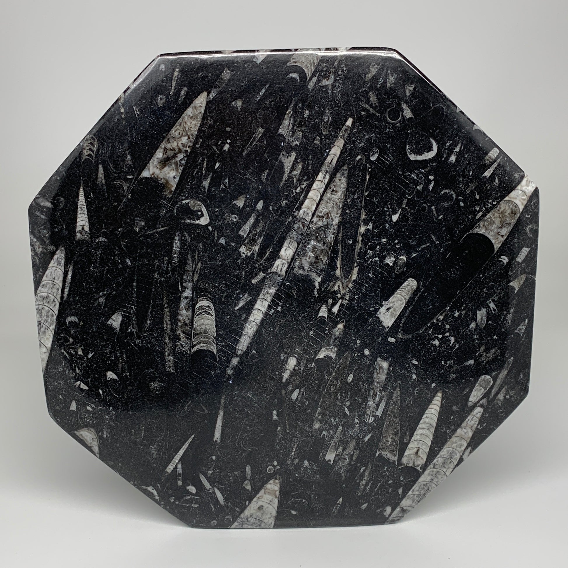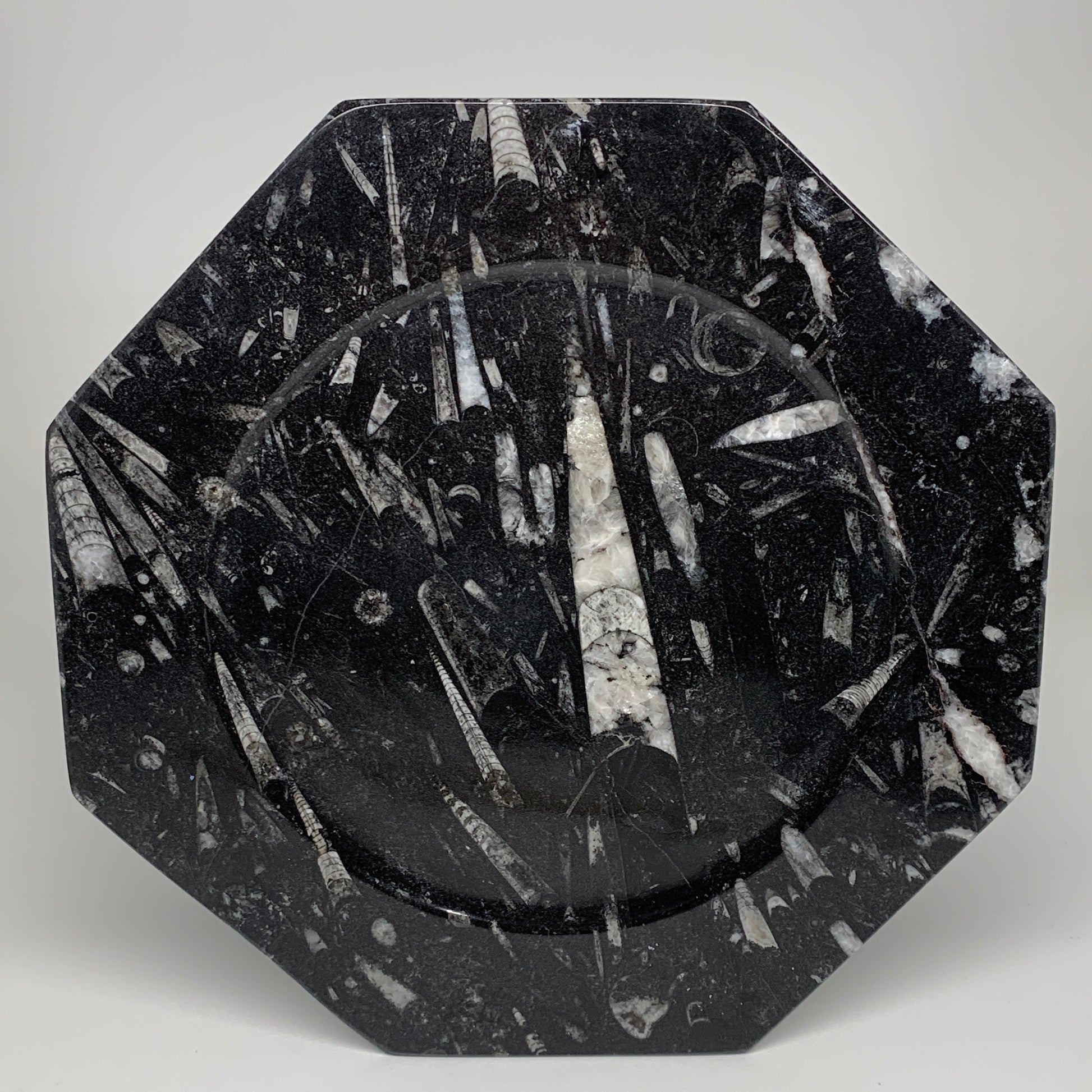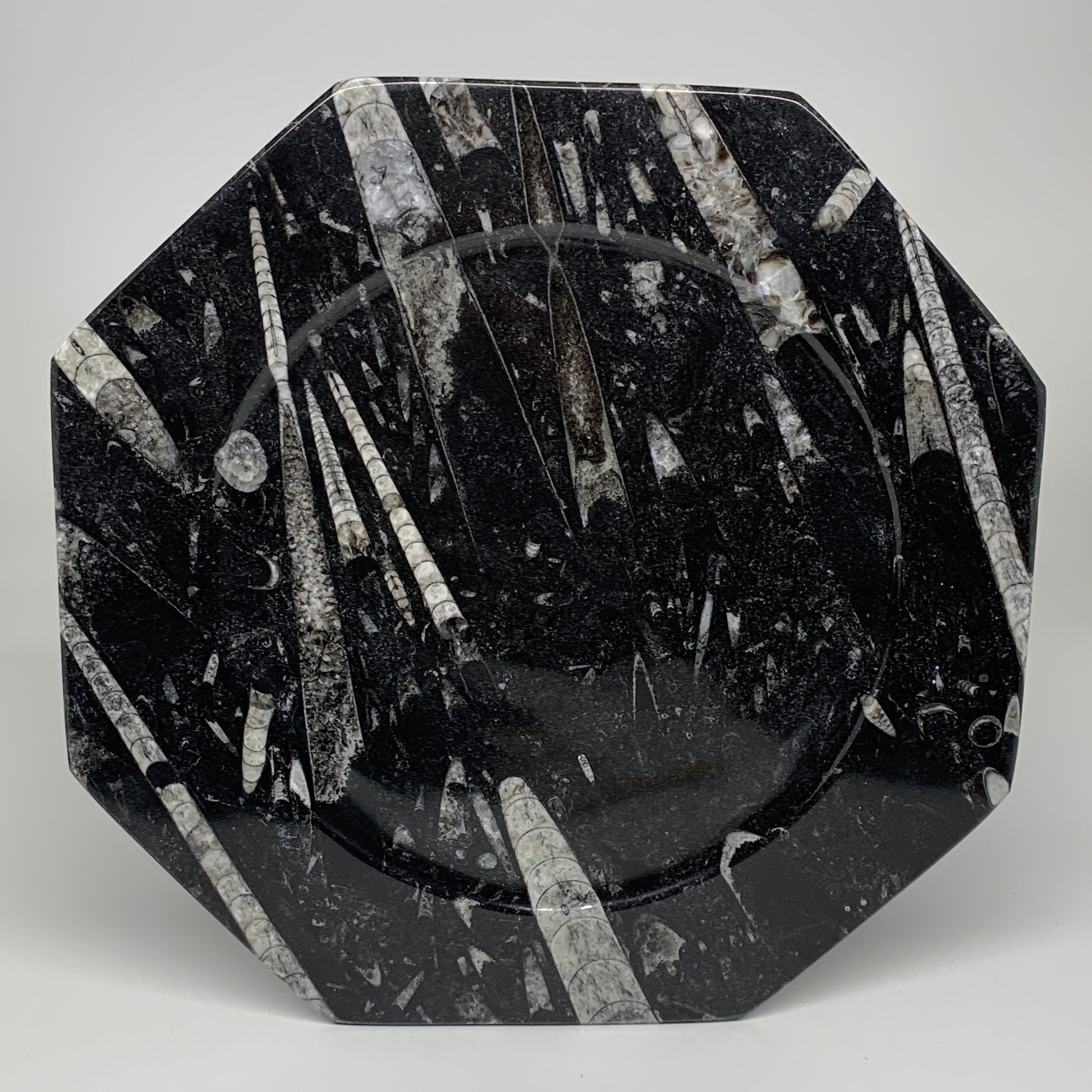 2pcs, 12" Large Octagon Shape Black Fossils Orthoceras Plates @Morocco, B8297
