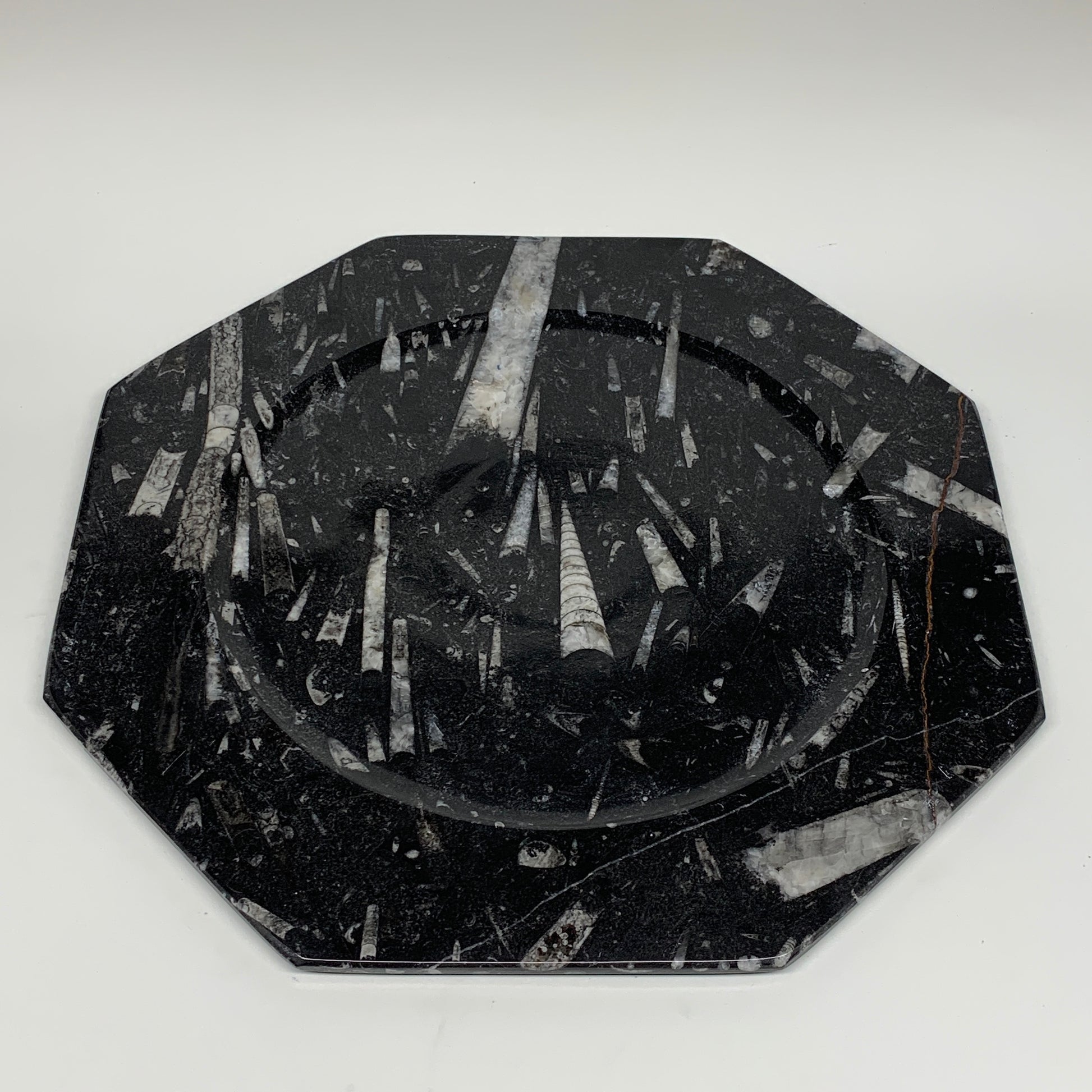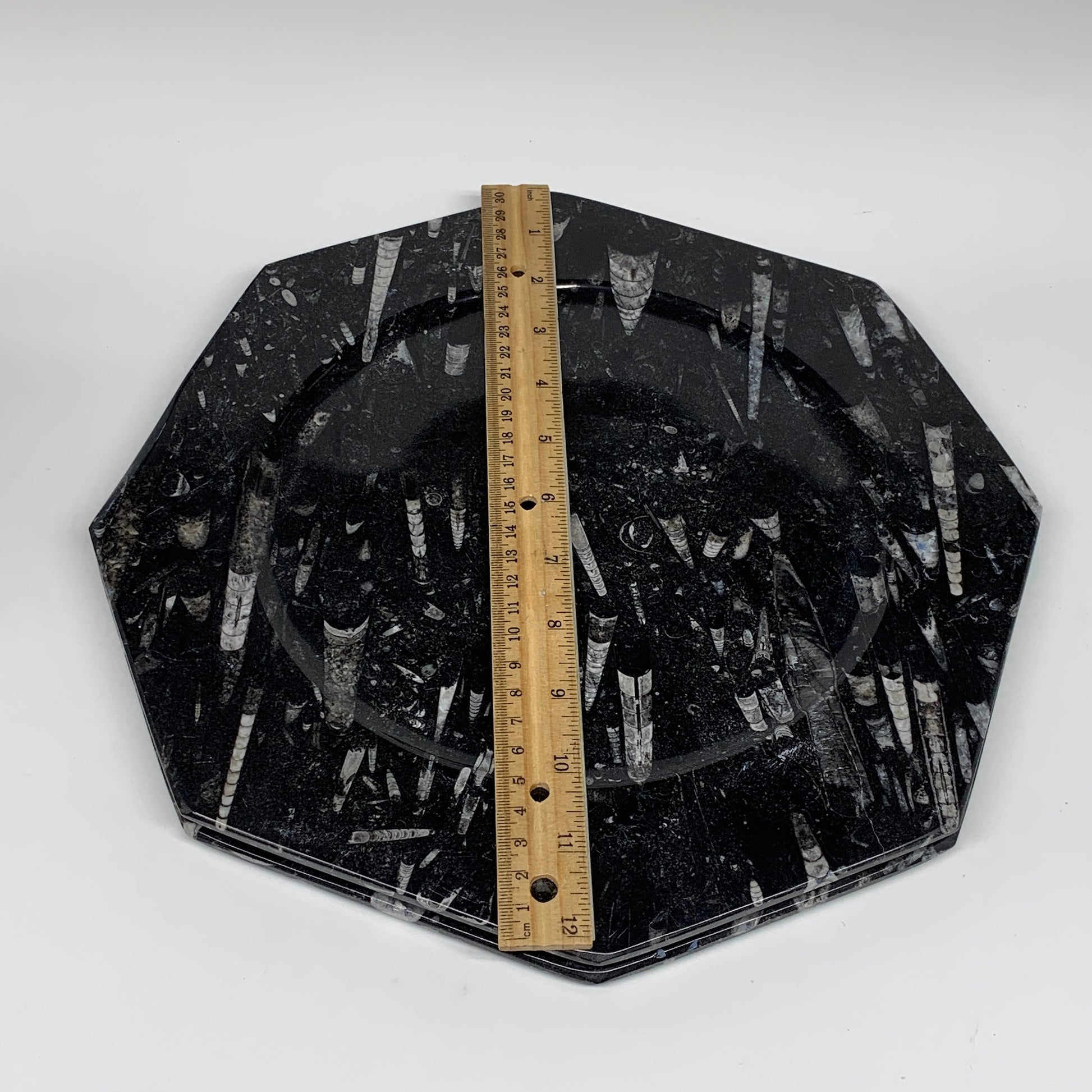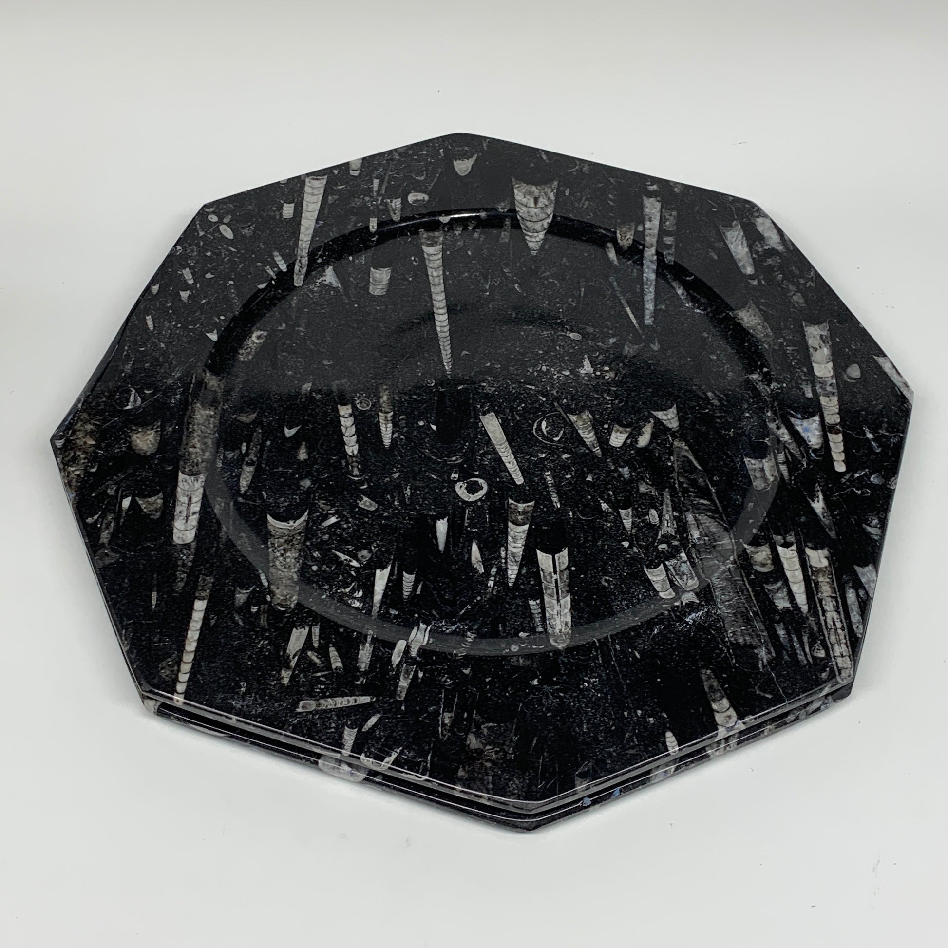 2pcs, 12" Large Octagon Shape Black Fossils Orthoceras Plates @Morocco, B8299