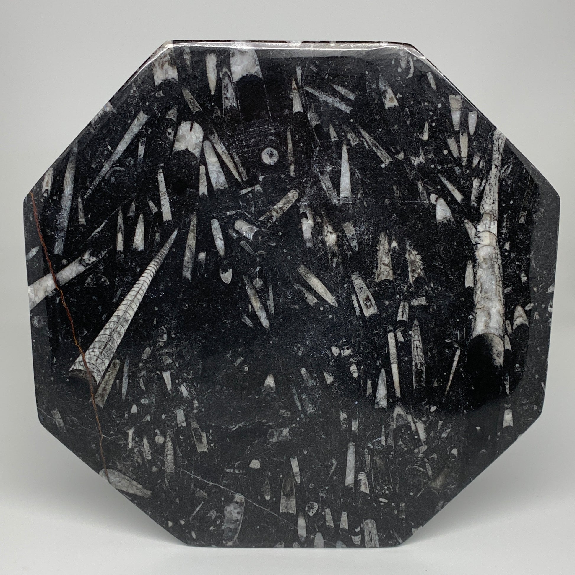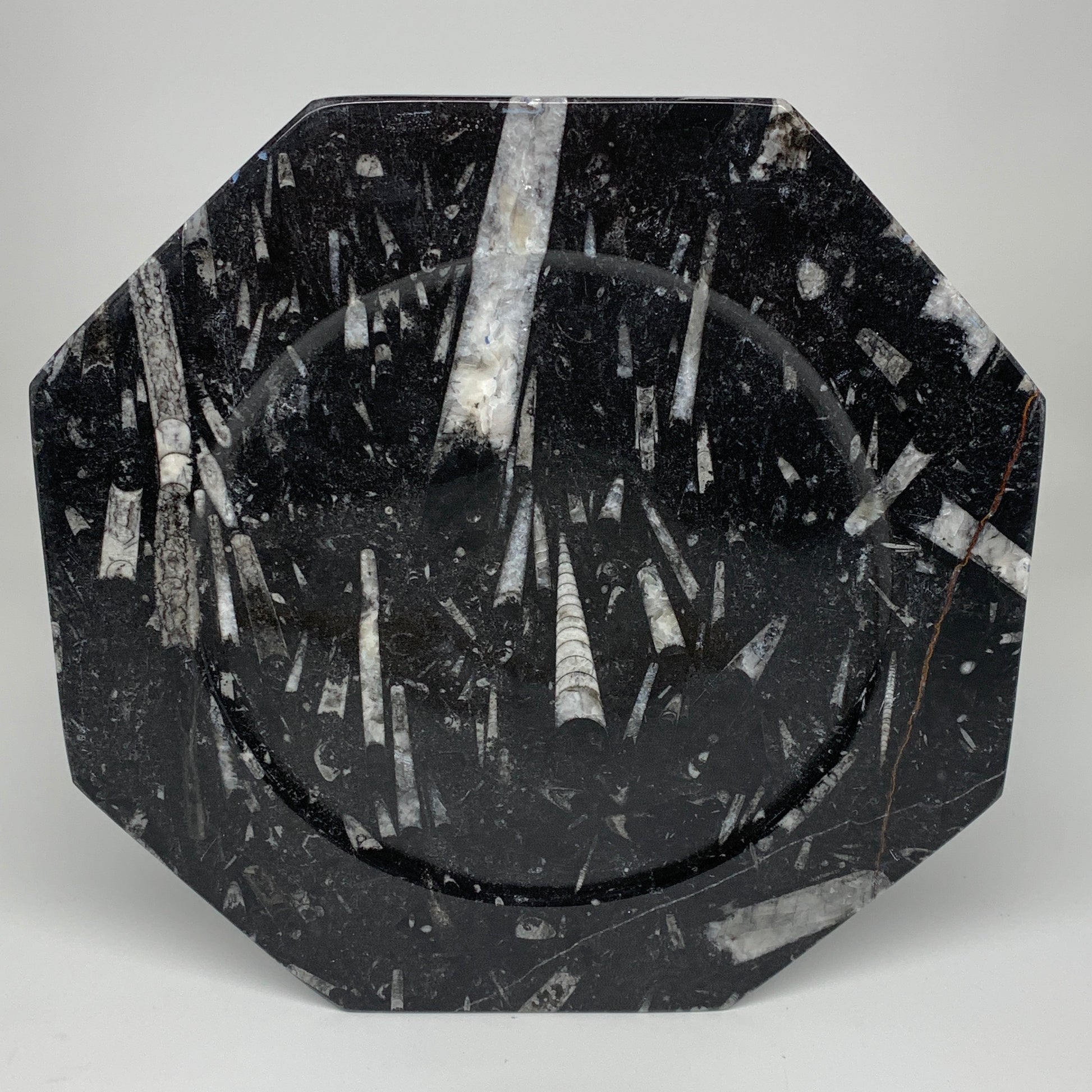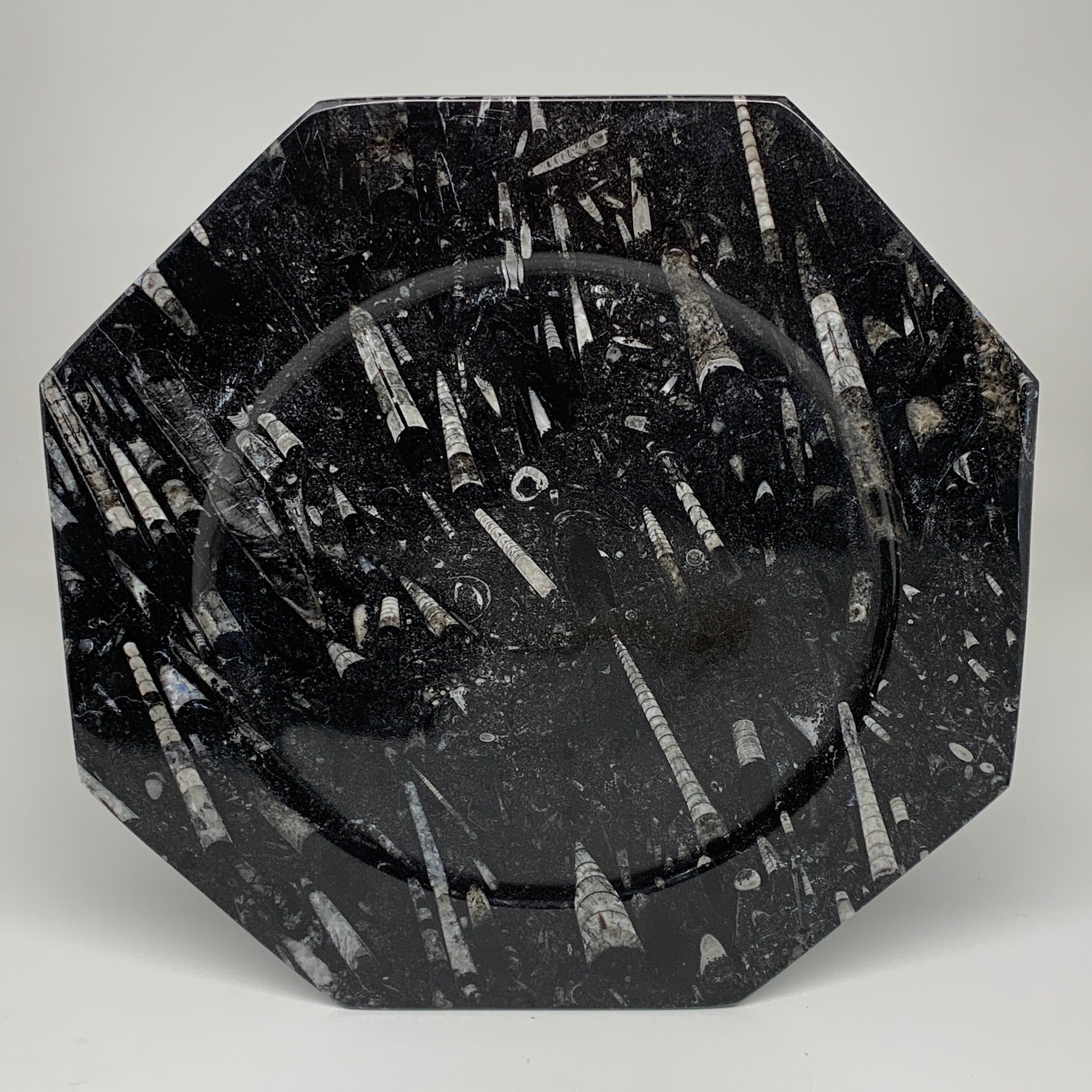 2pcs, 12" Large Octagon Shape Black Fossils Orthoceras Plates @Morocco, B8299