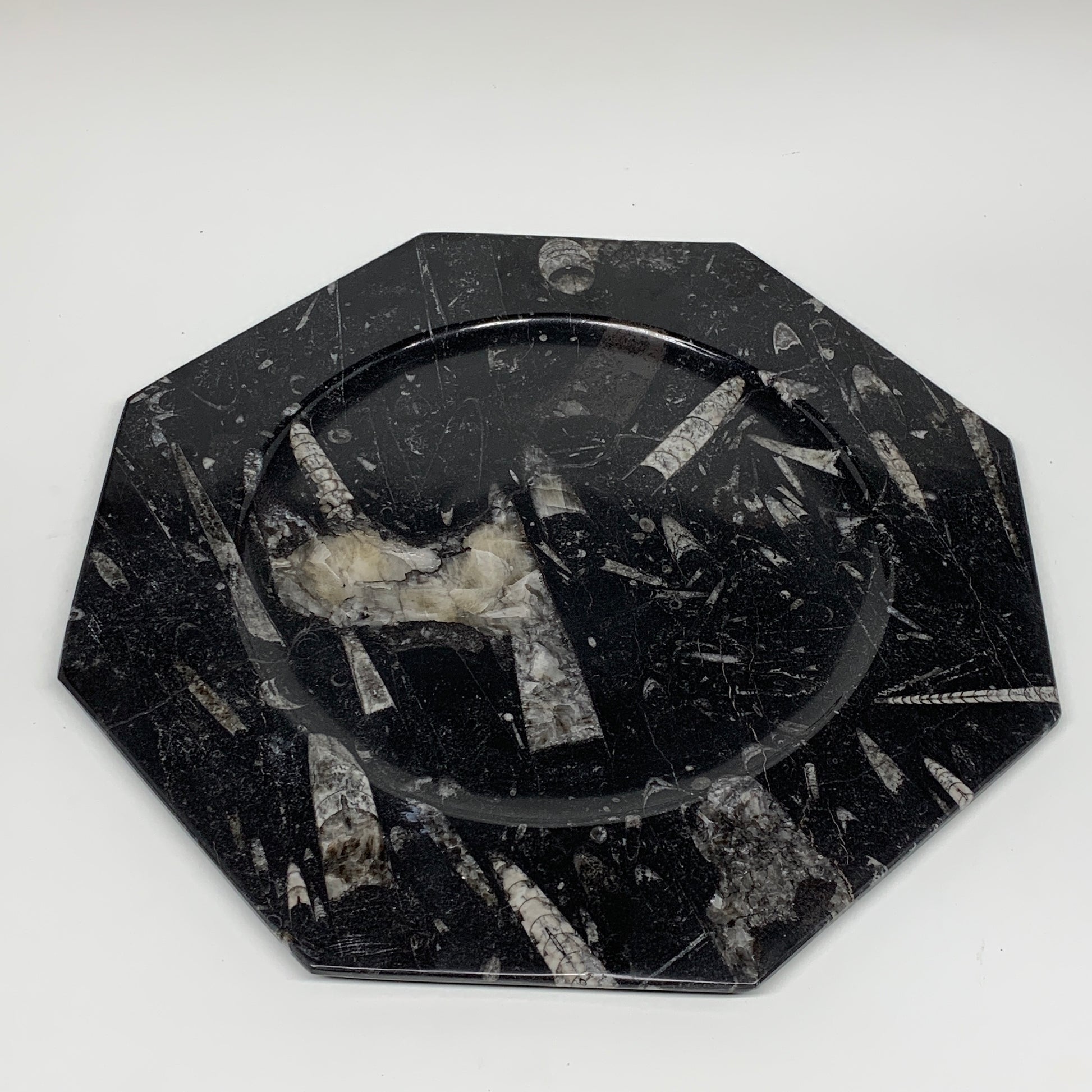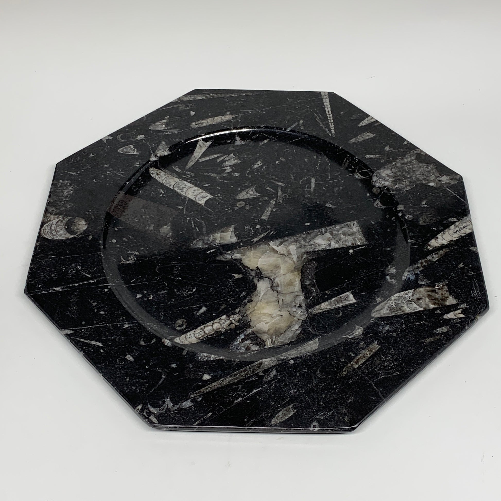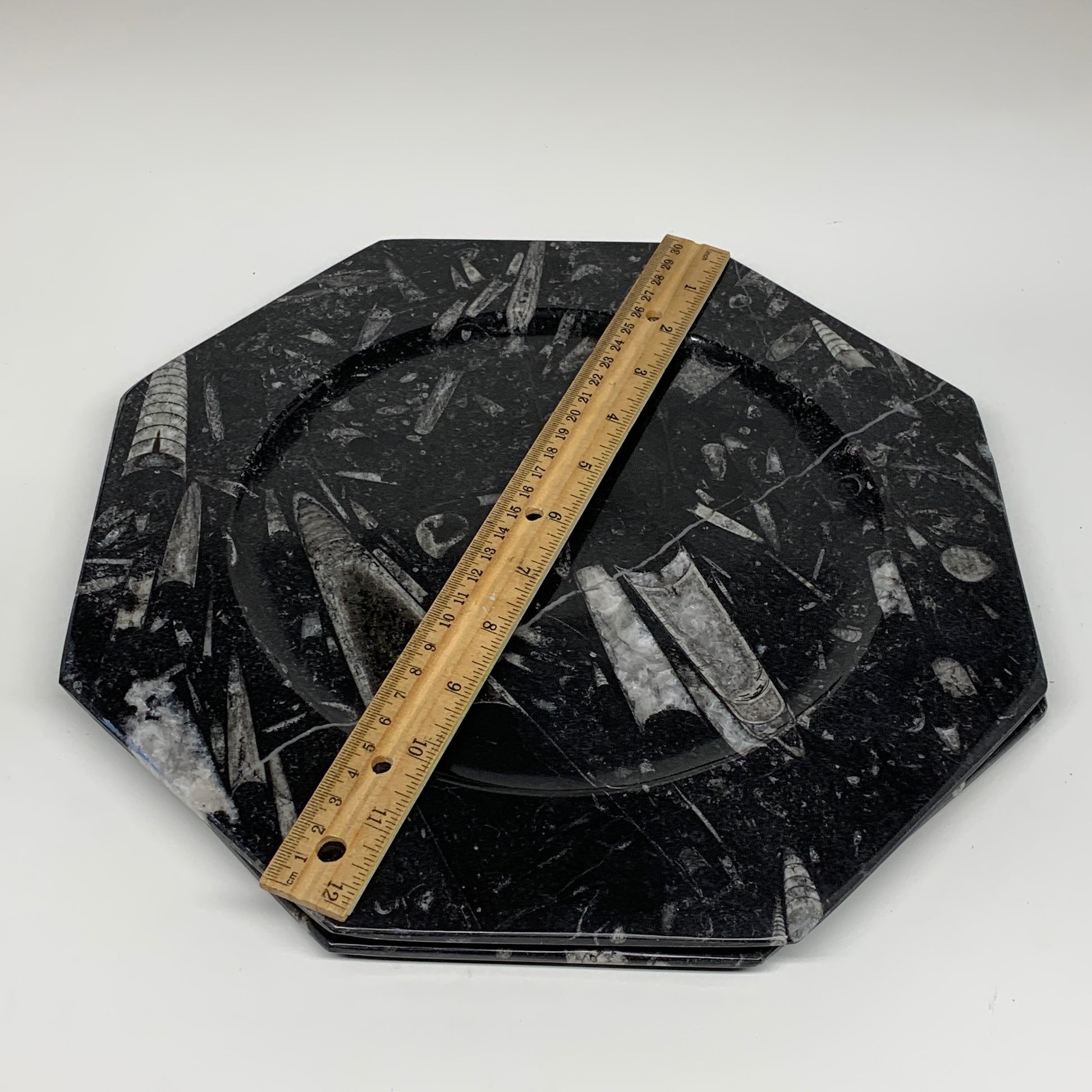 2pcs, 12" Large Octagon Shape Black Fossils Orthoceras Plates @Morocco, B8304