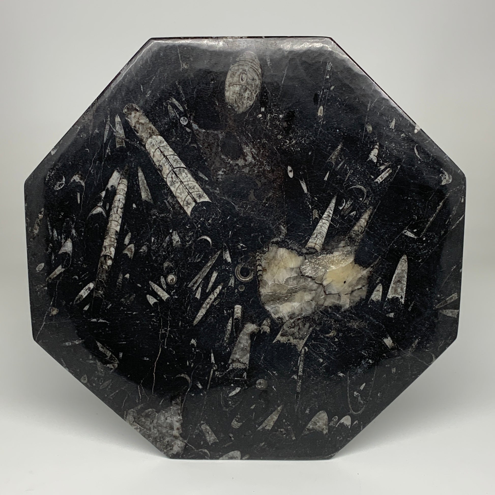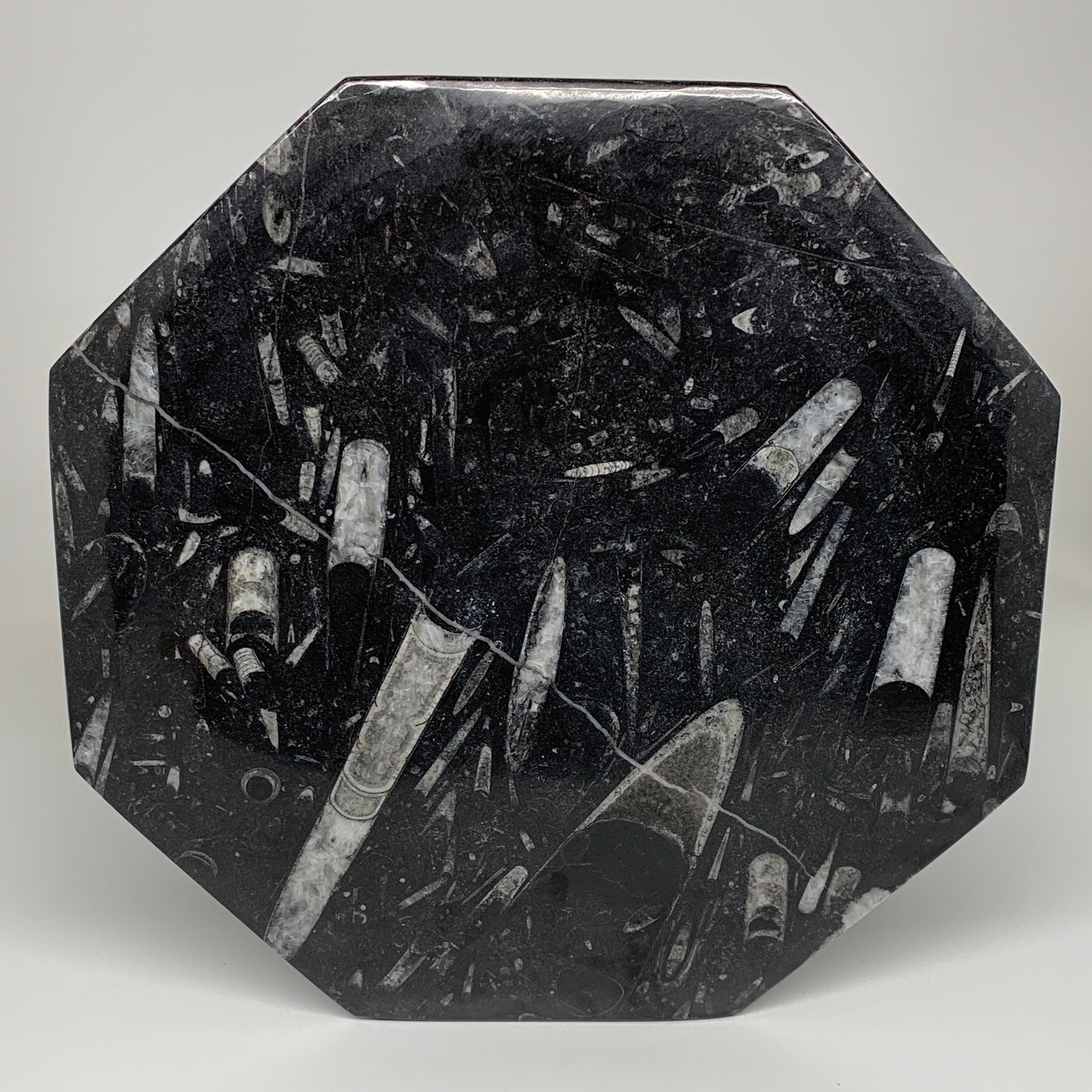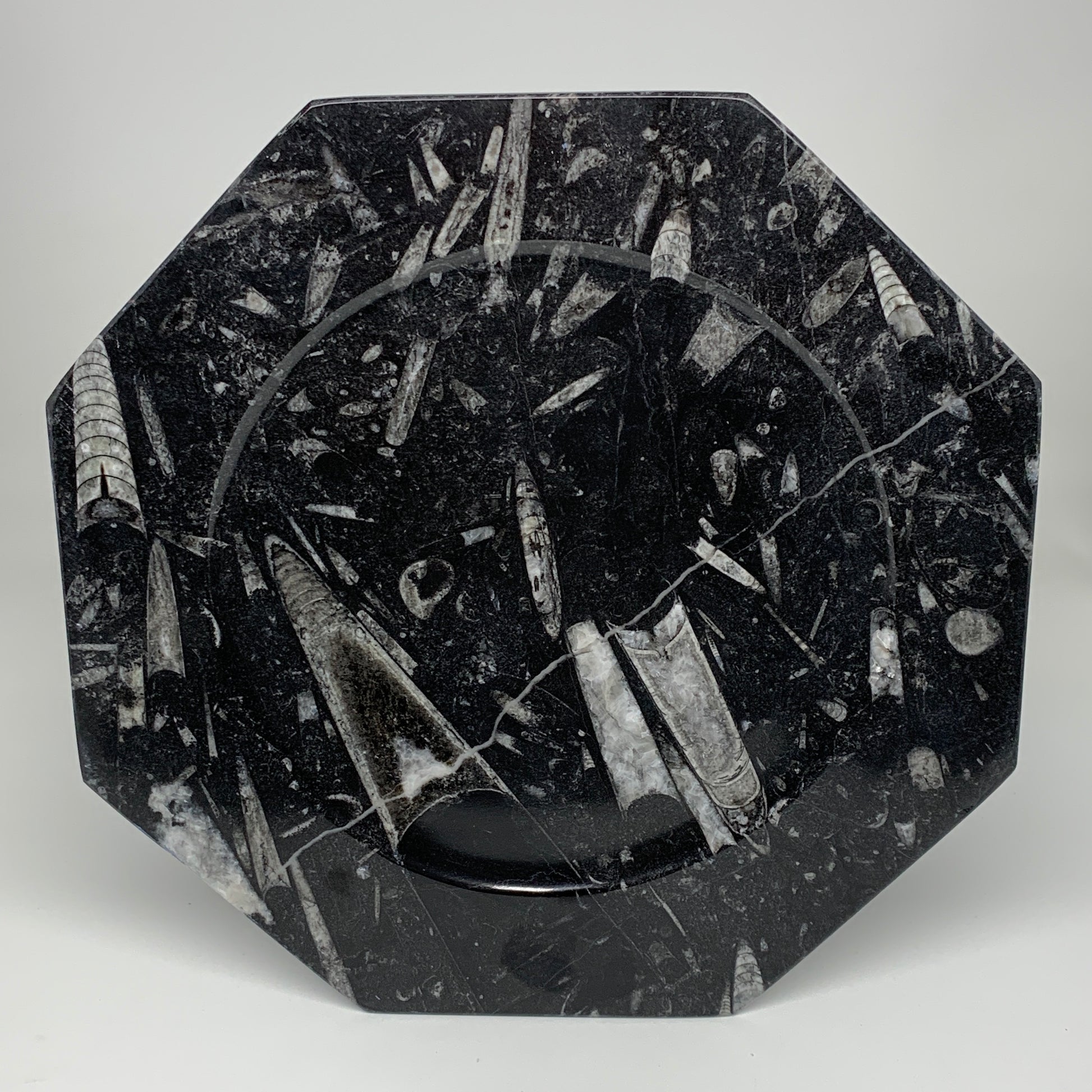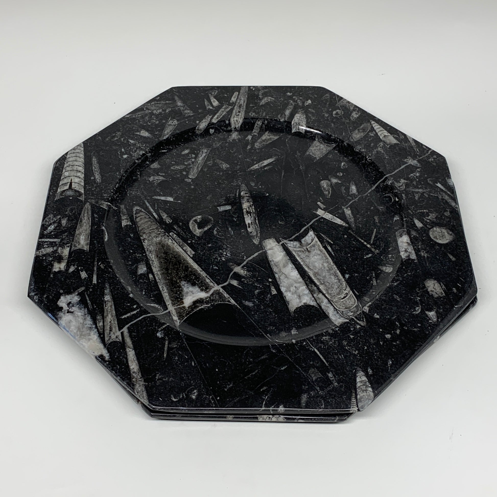 2pcs, 12" Large Octagon Shape Black Fossils Orthoceras Plates @Morocco, B8304