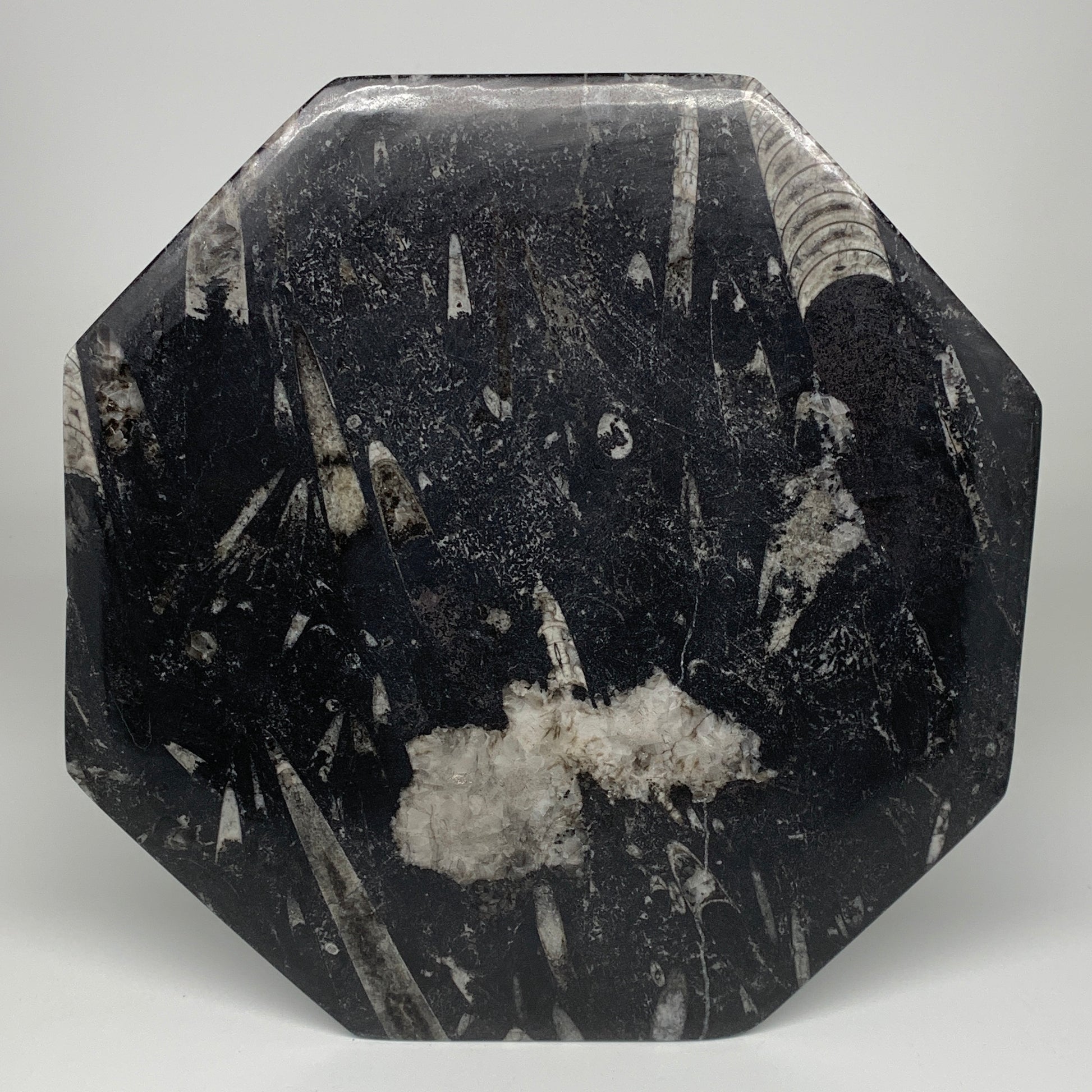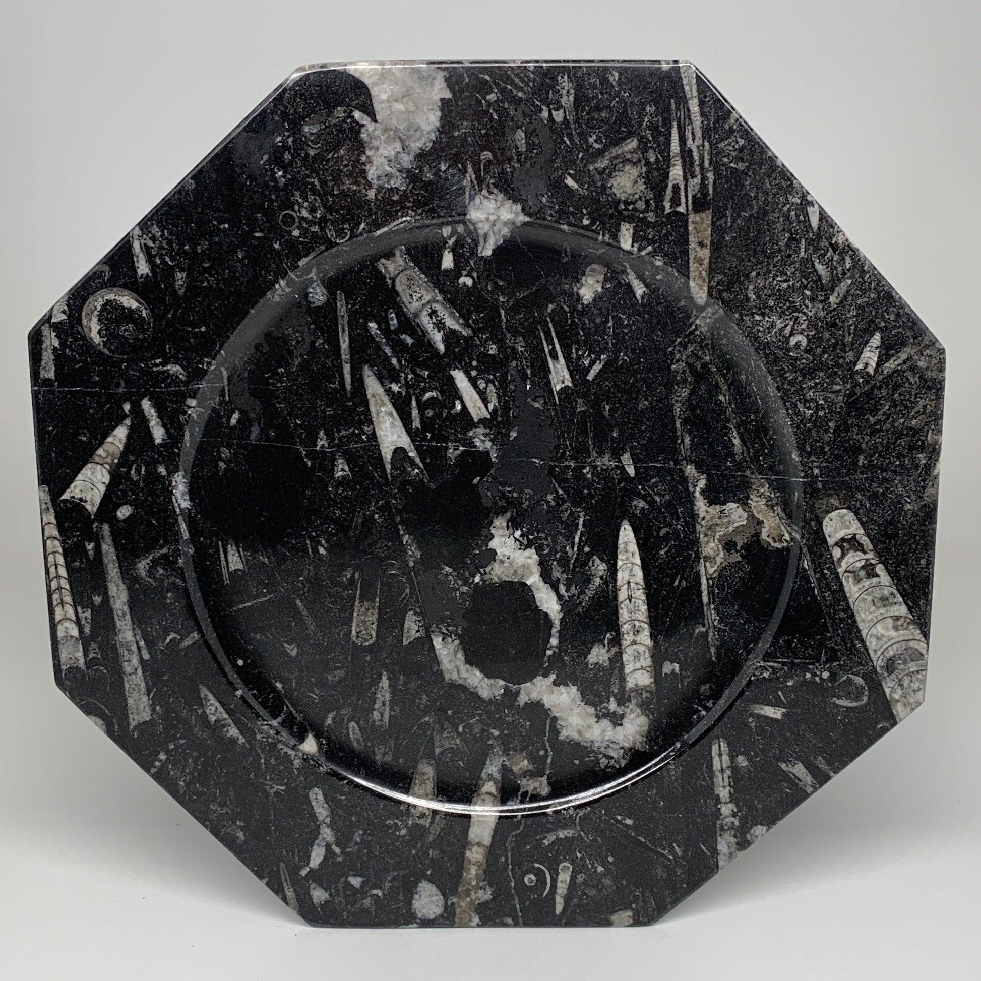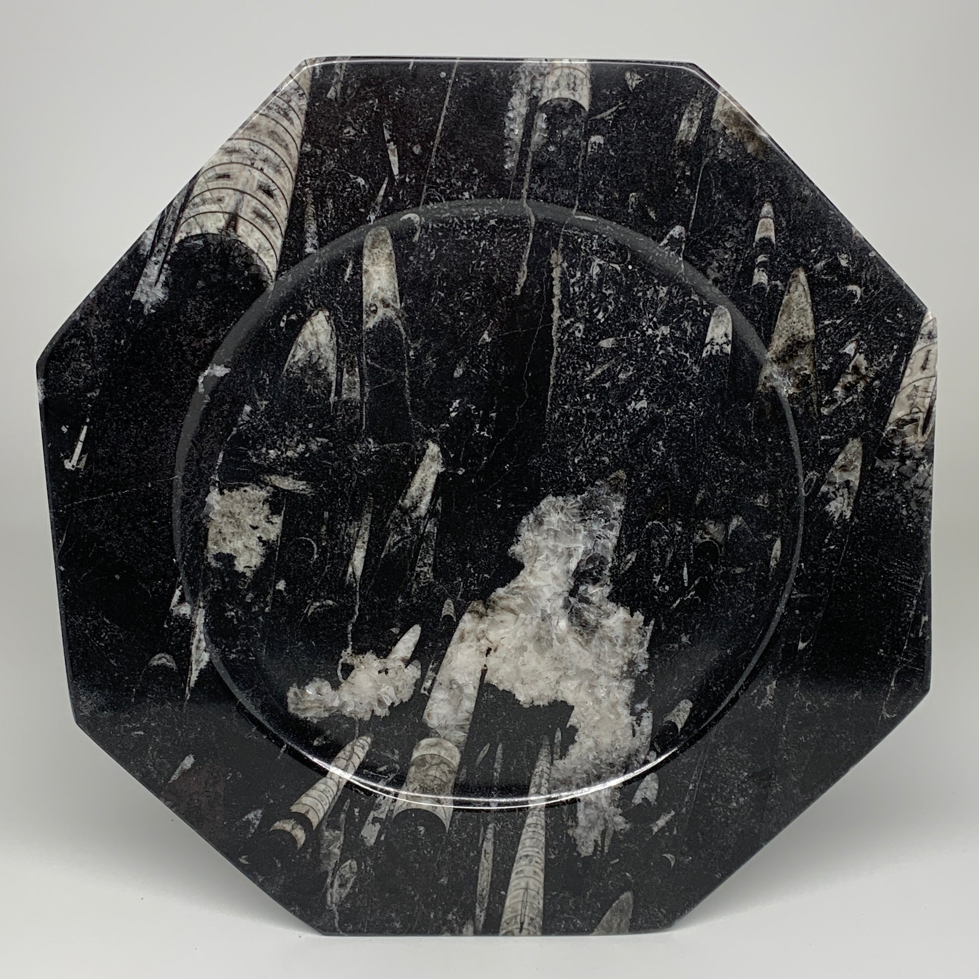 2pcs, 12" Large Octagon Shape Black Fossils Orthoceras Plates @Morocco, B8305