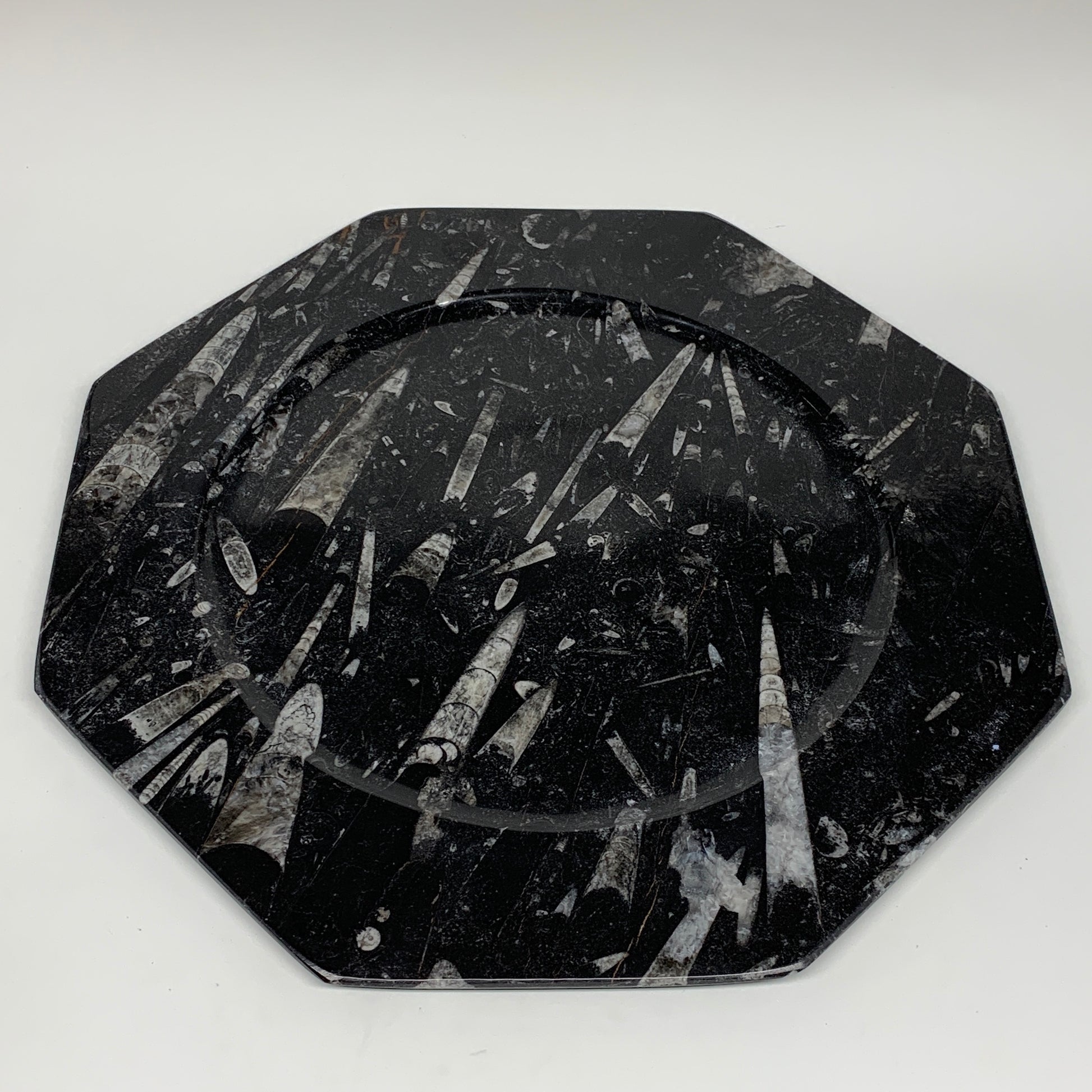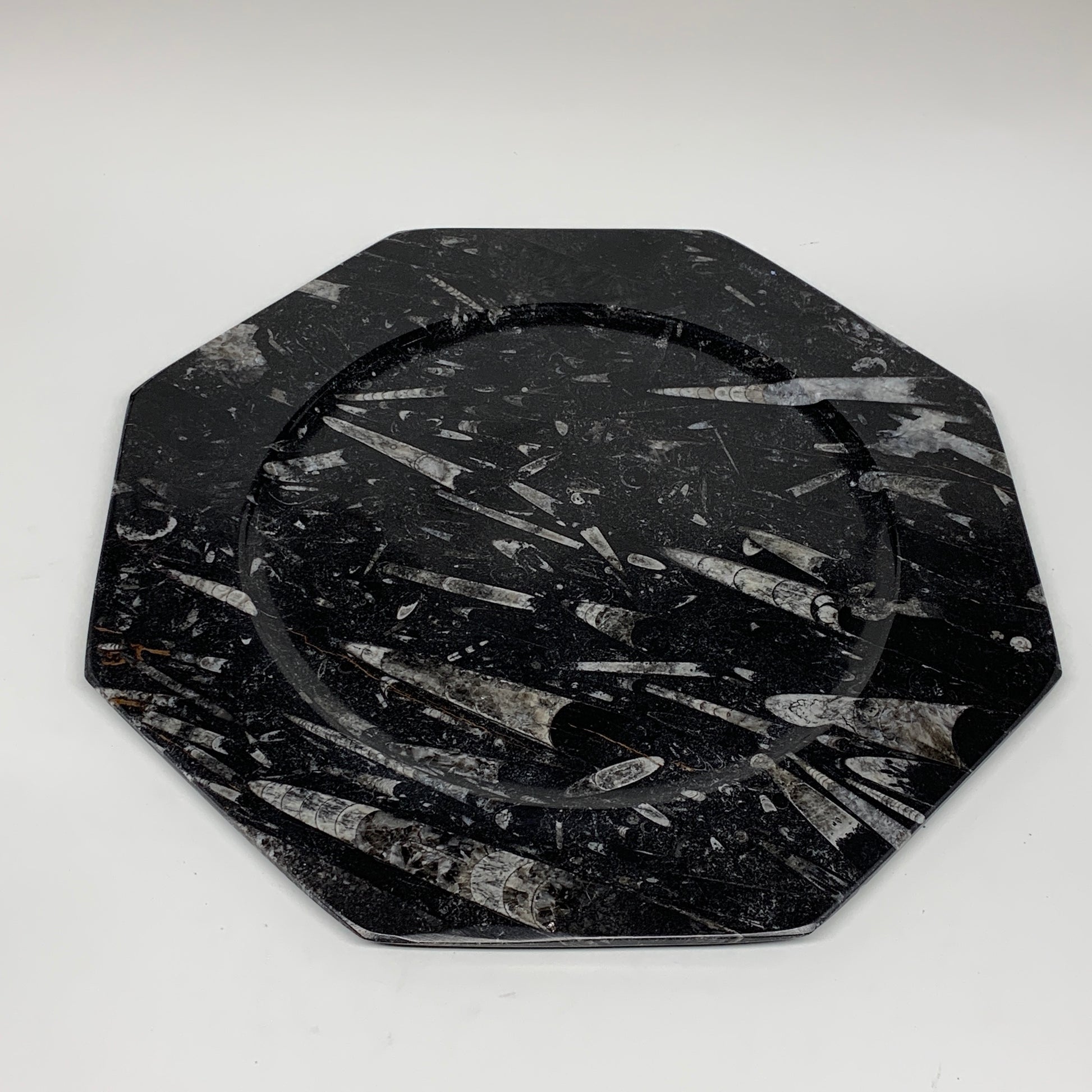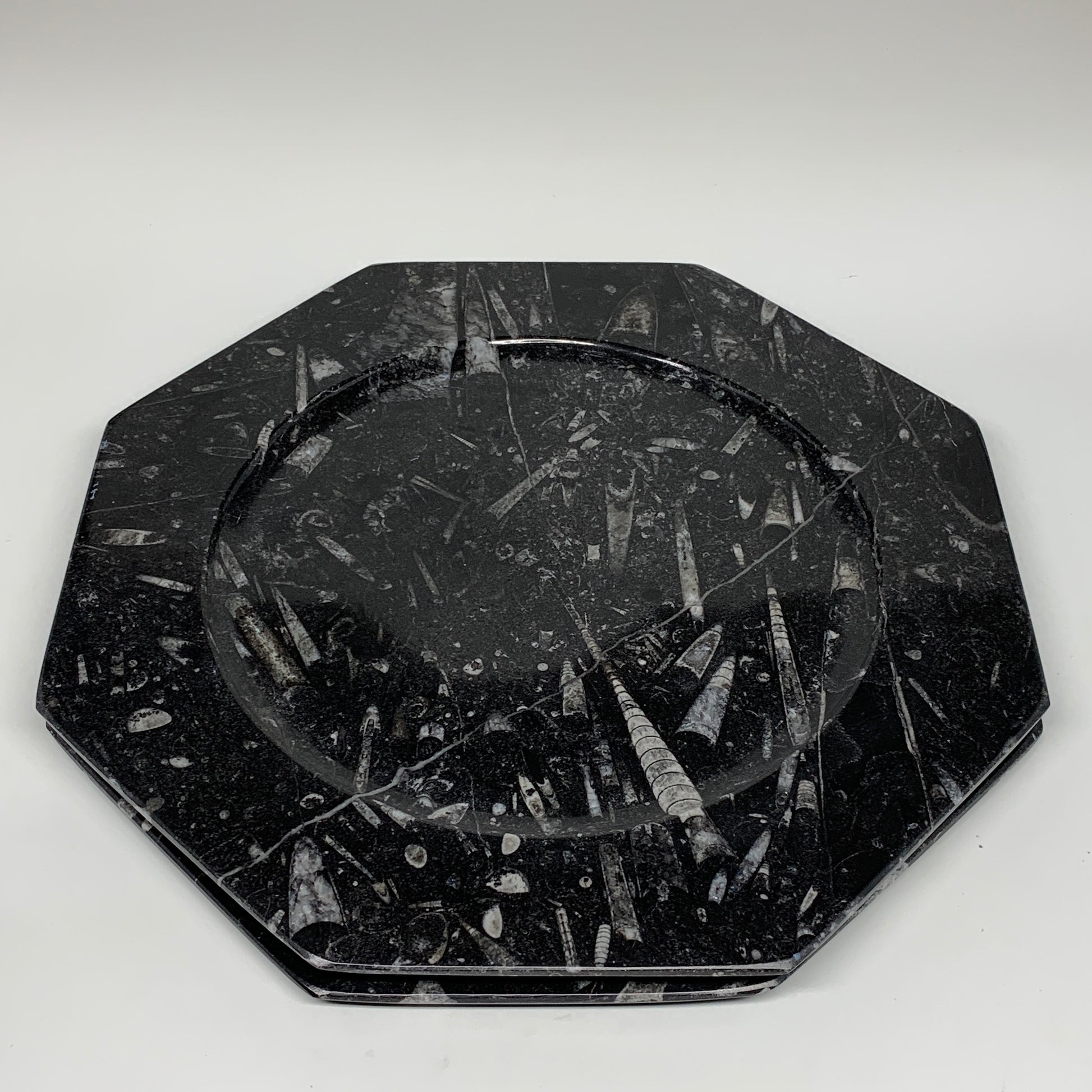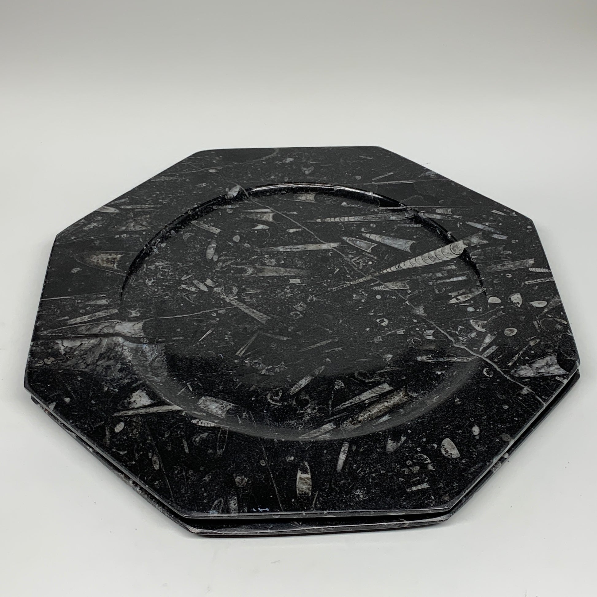 2pcs, 12" Large Octagon Shape Black Fossils Orthoceras Plates @Morocco, B8310
