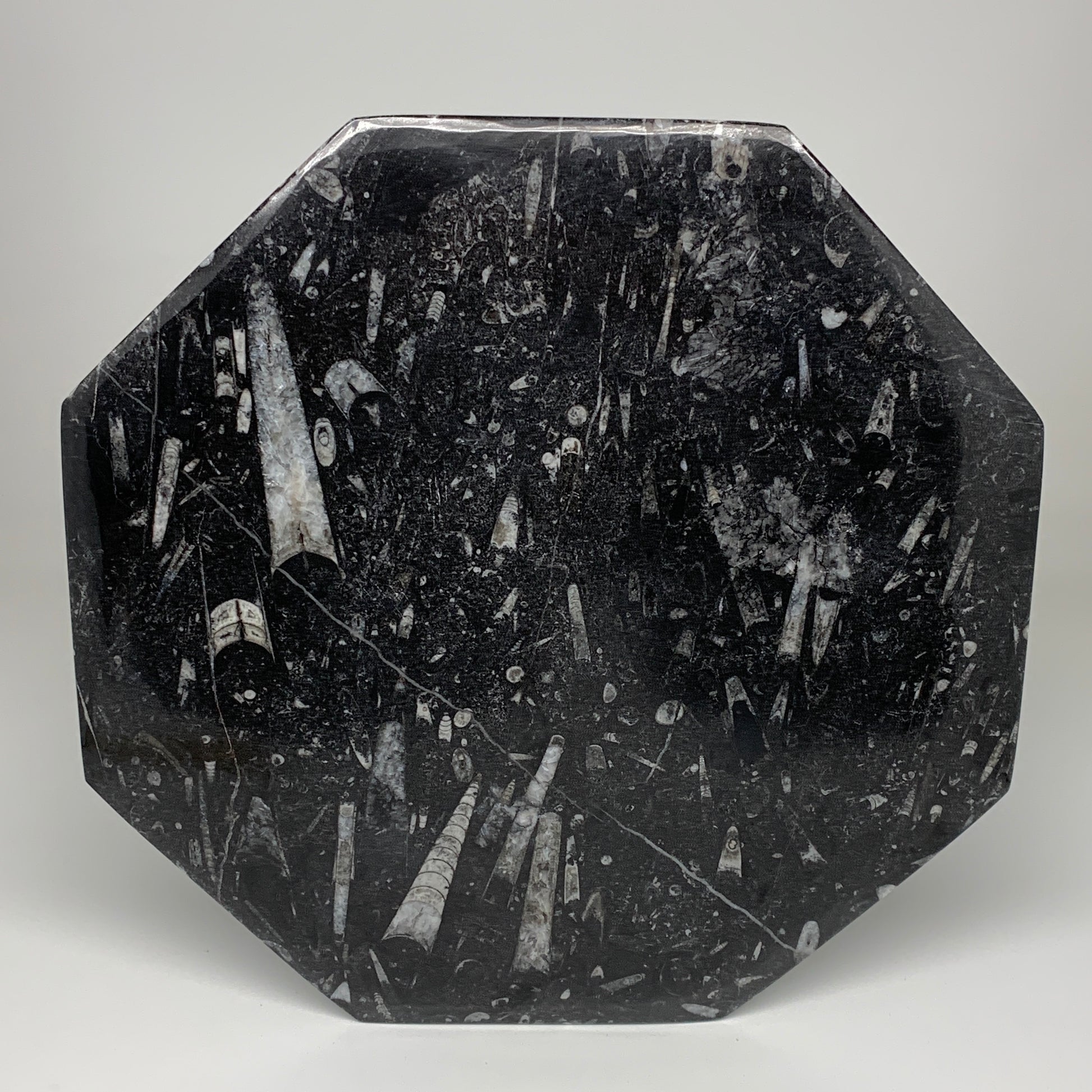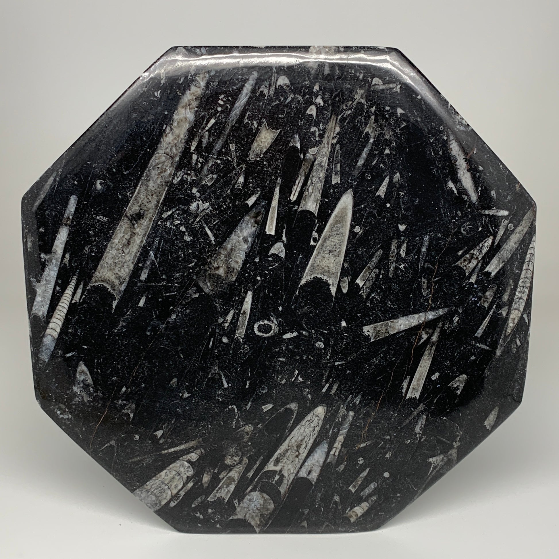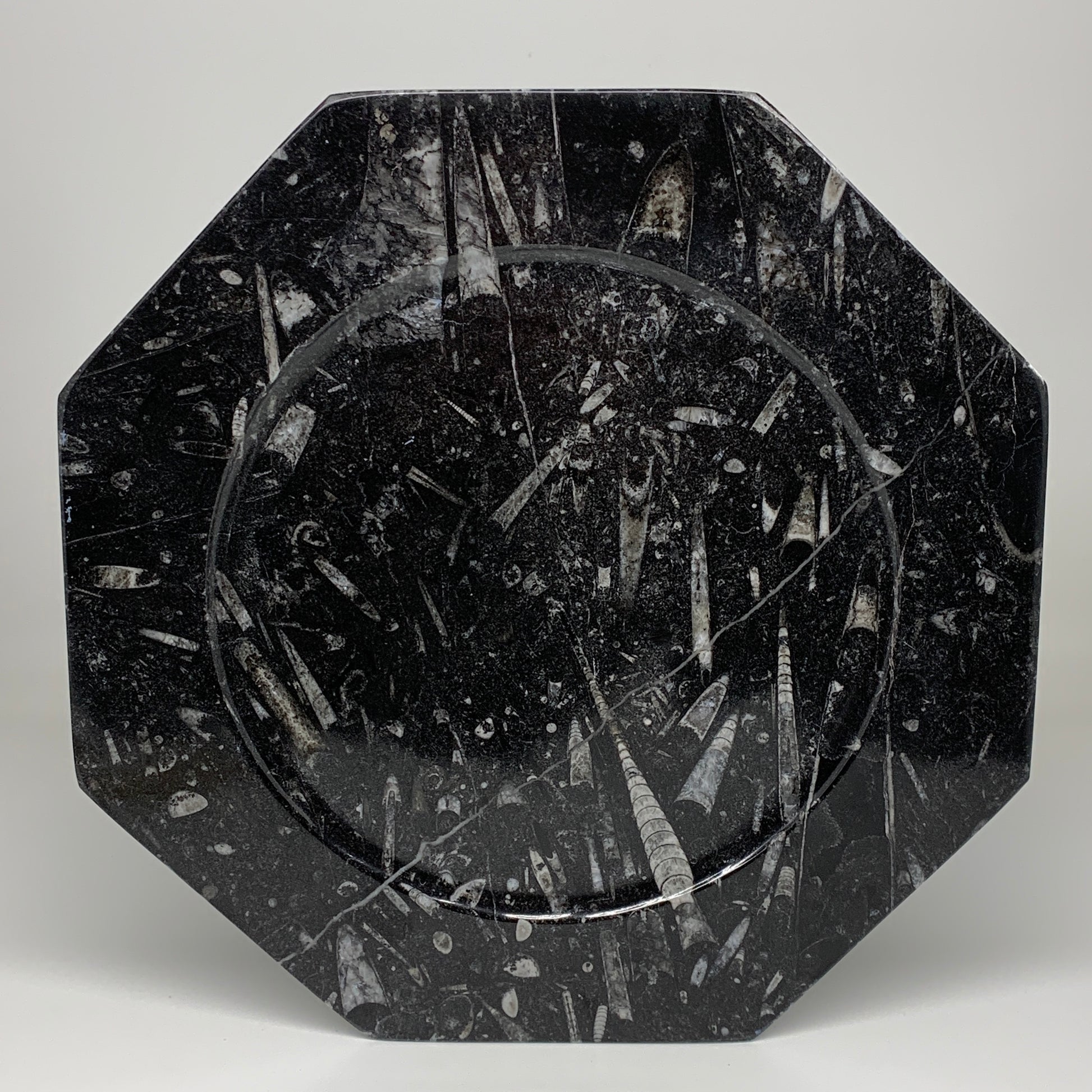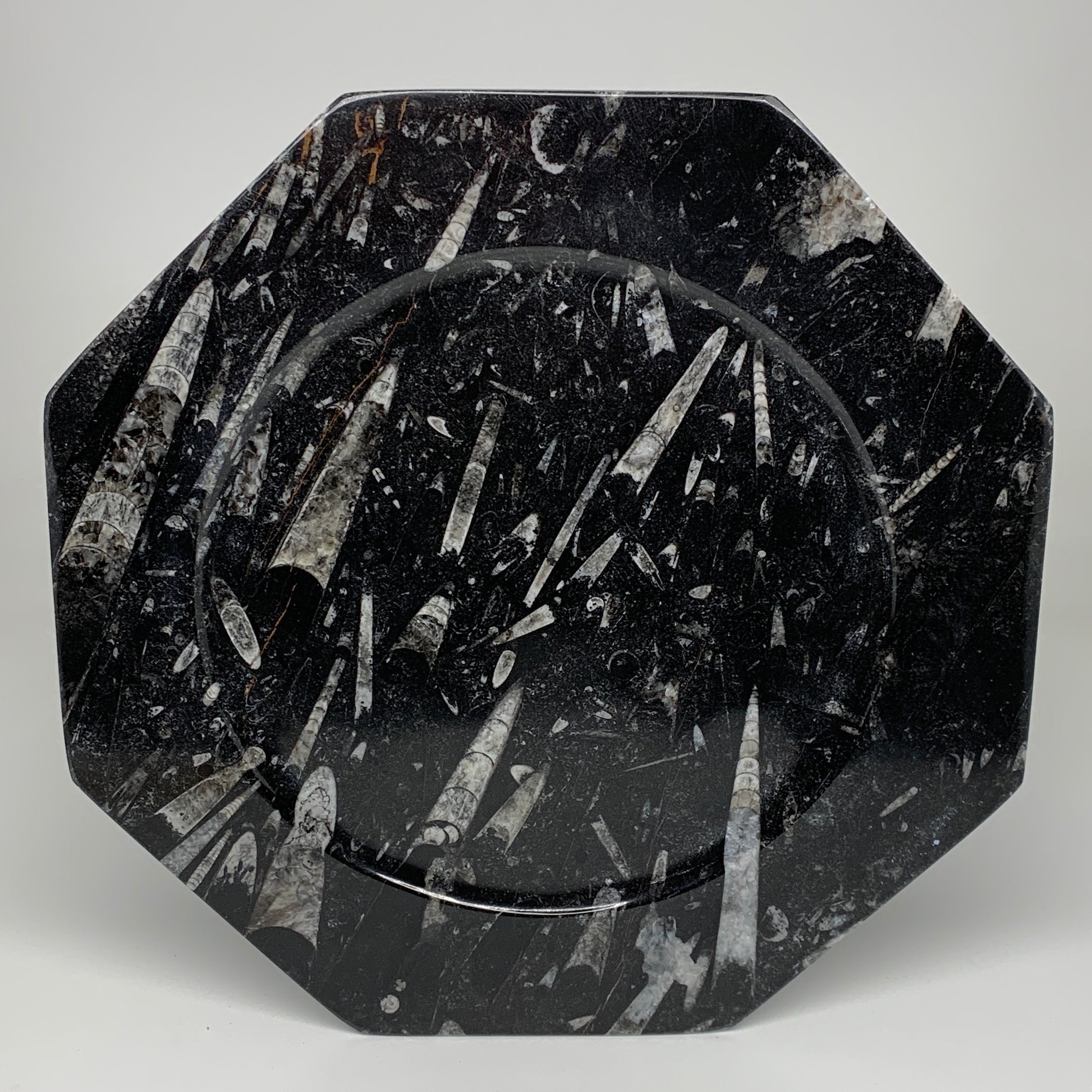 2pcs, 12" Large Octagon Shape Black Fossils Orthoceras Plates @Morocco, B8310
