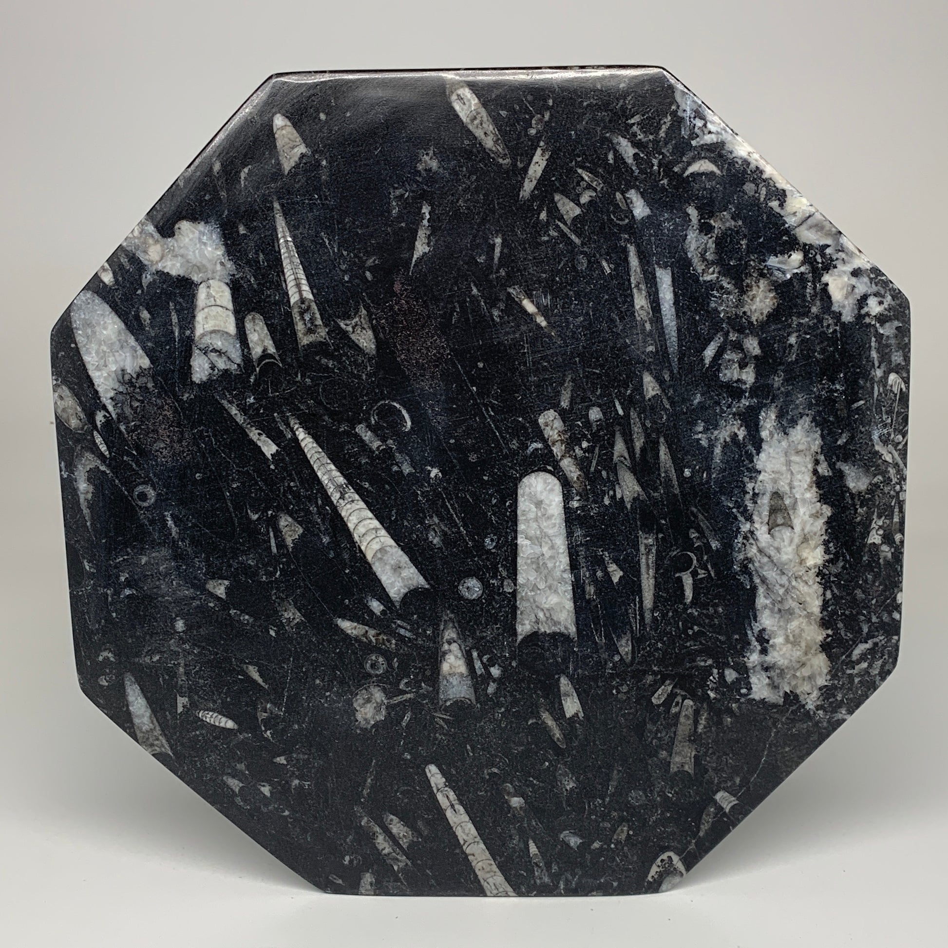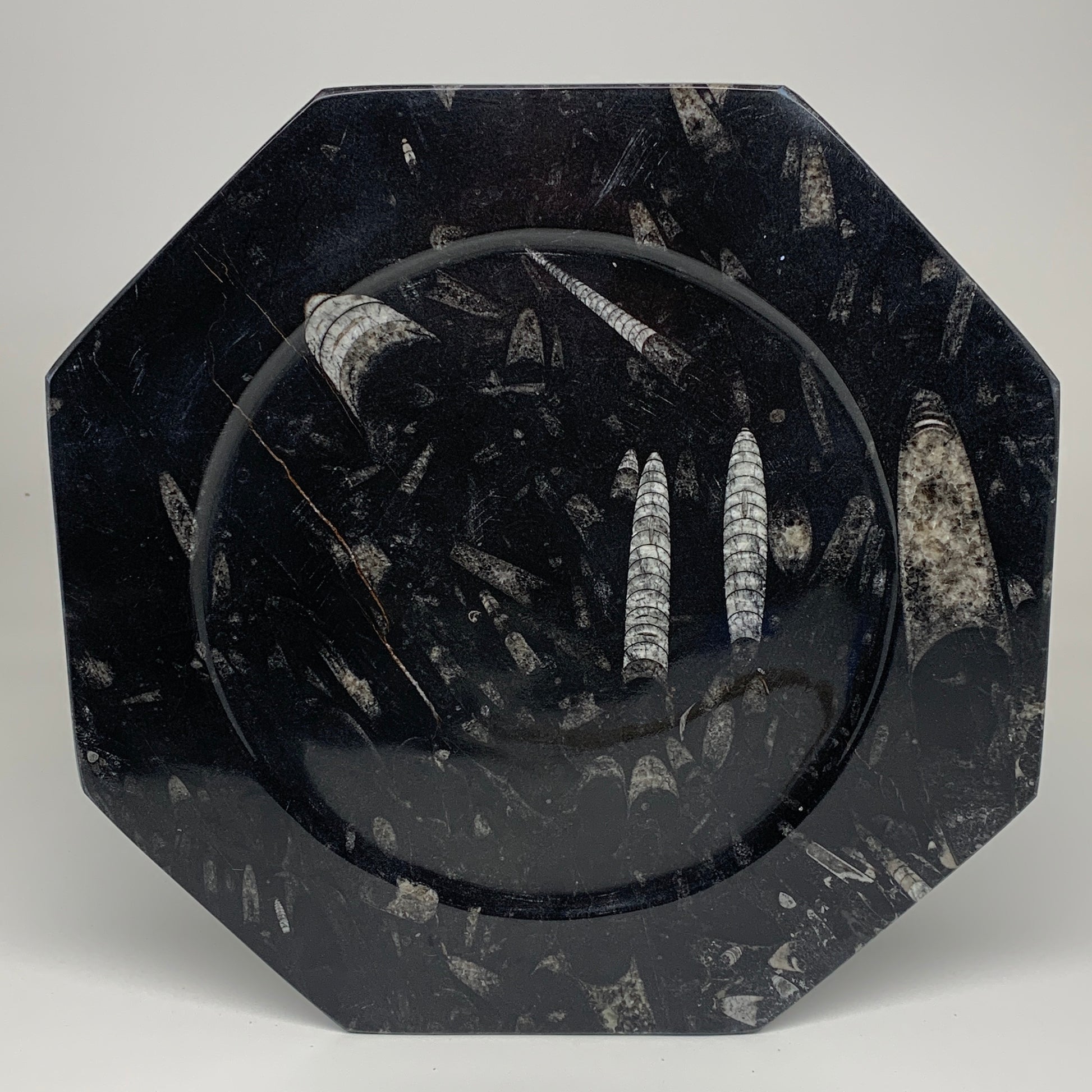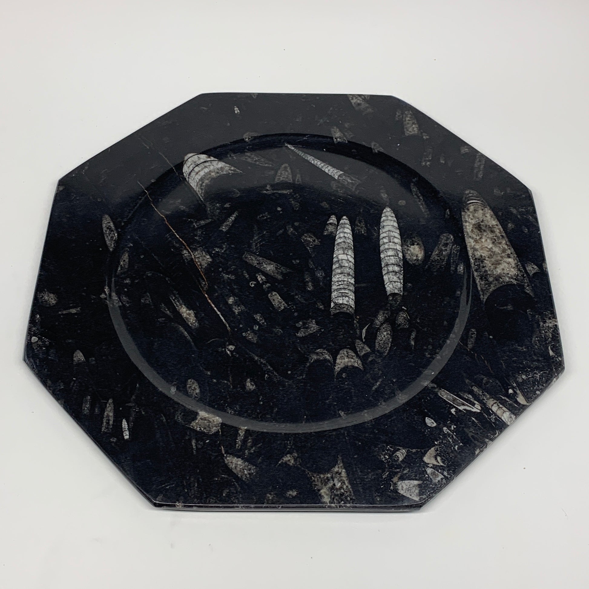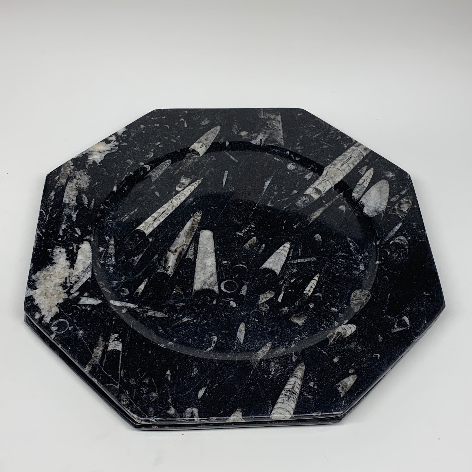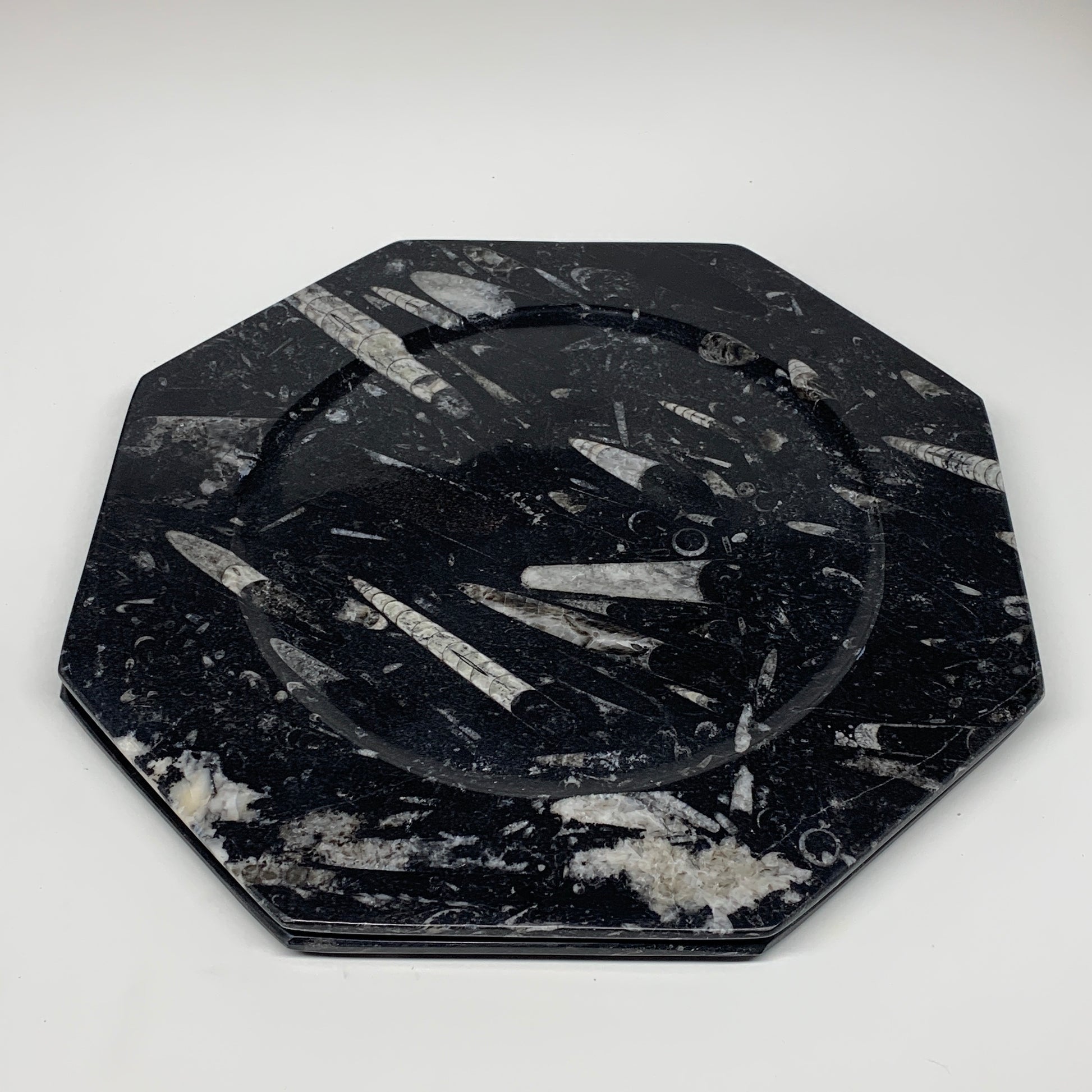 2pcs, 12" Large Octagon Shape Black Fossils Orthoceras Plates @Morocco, B8343