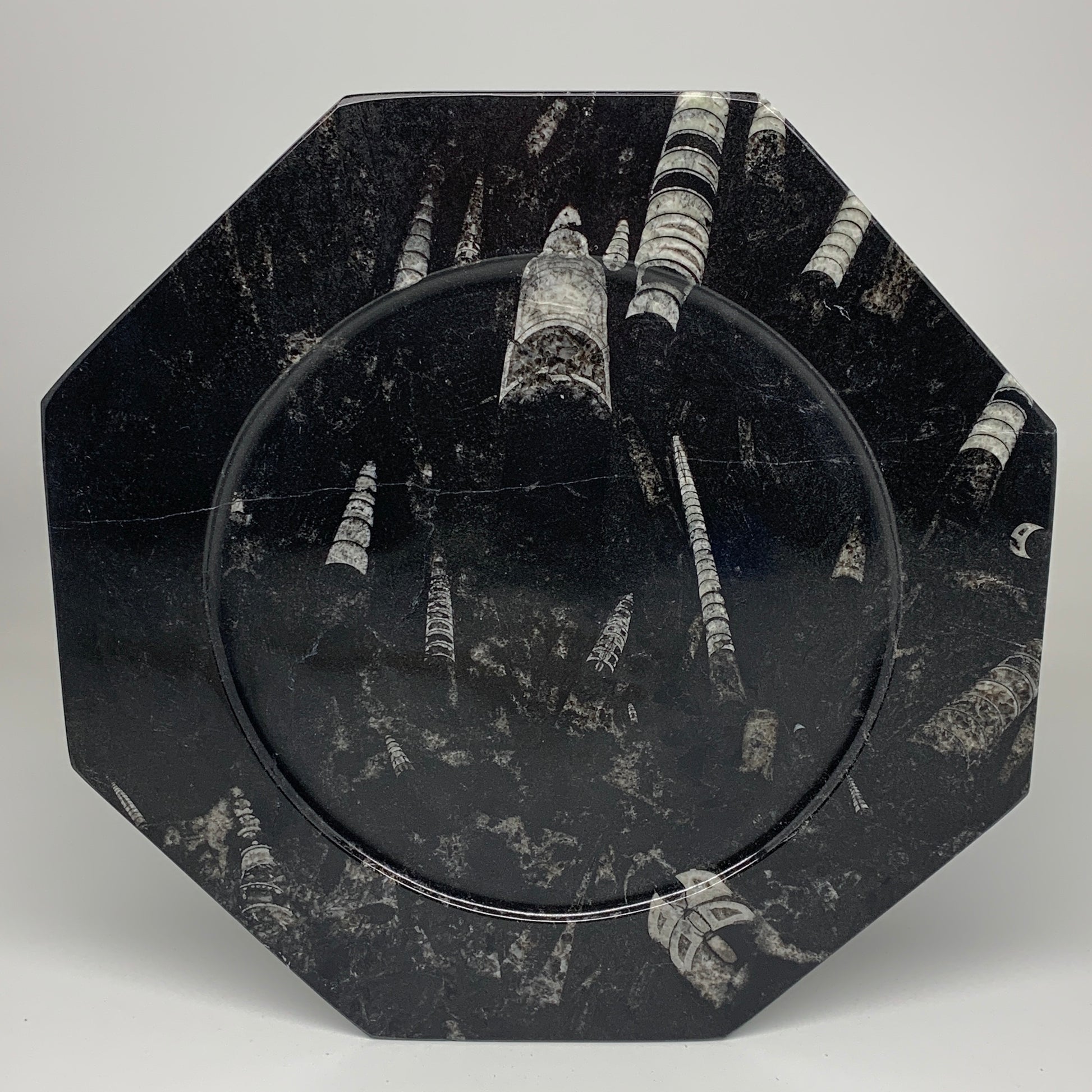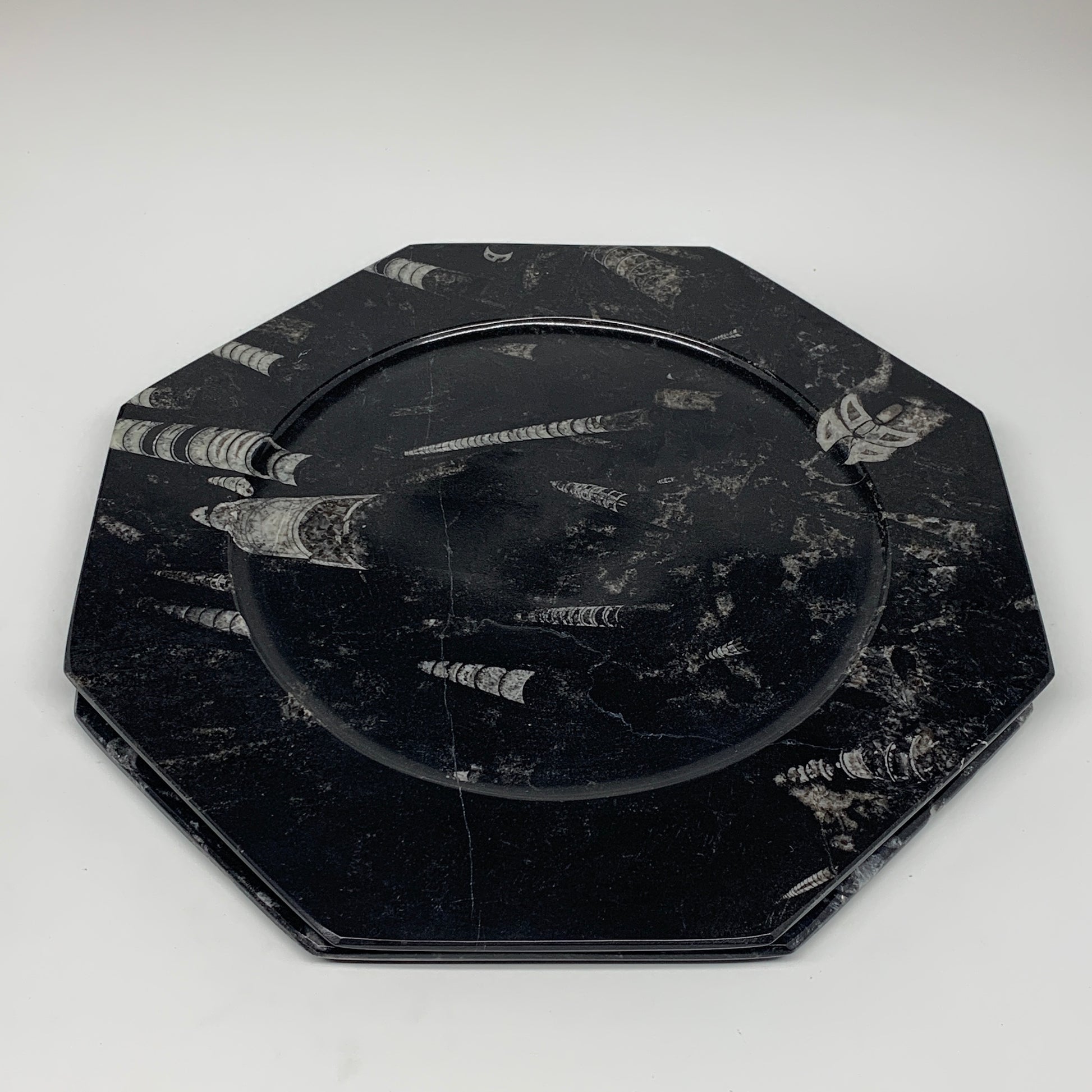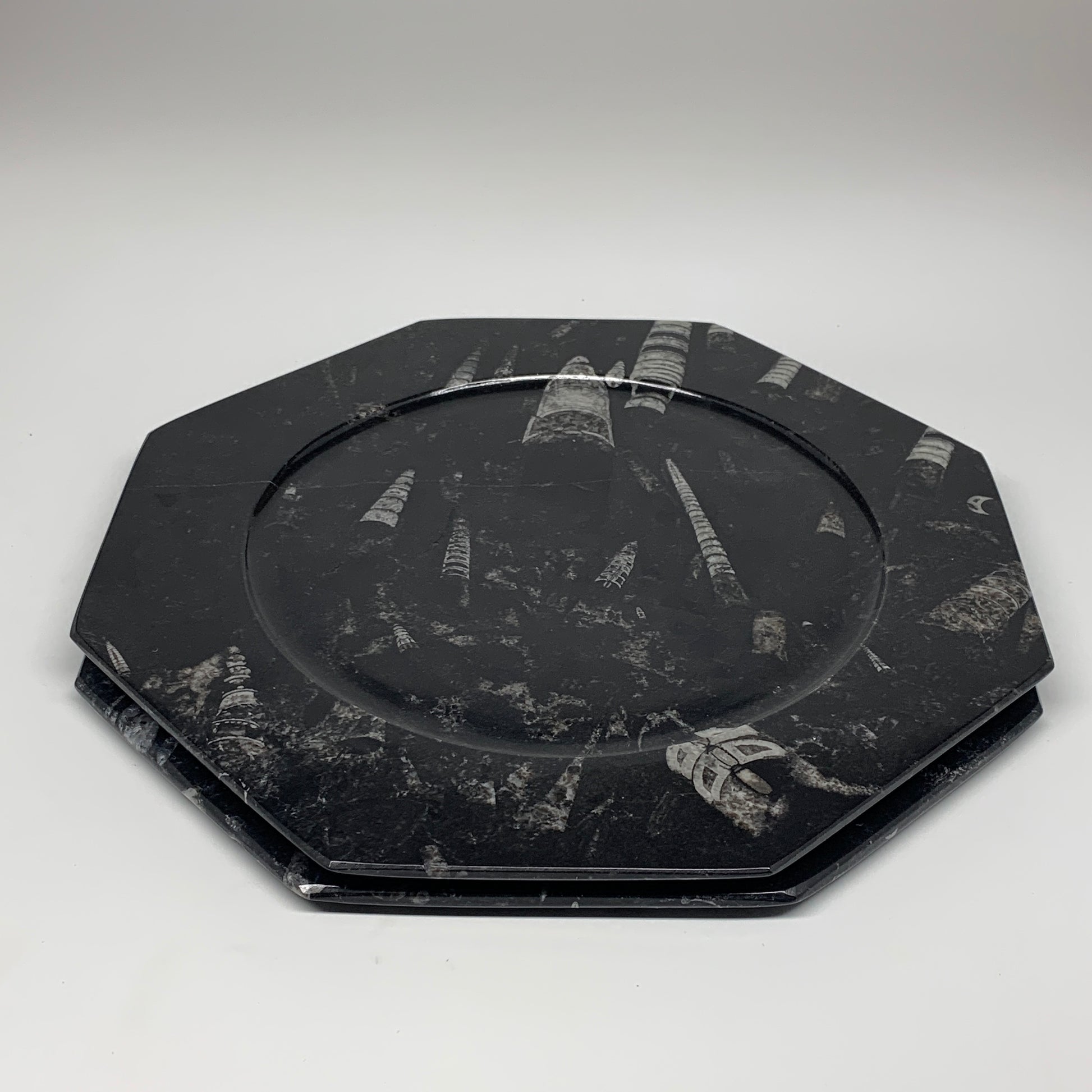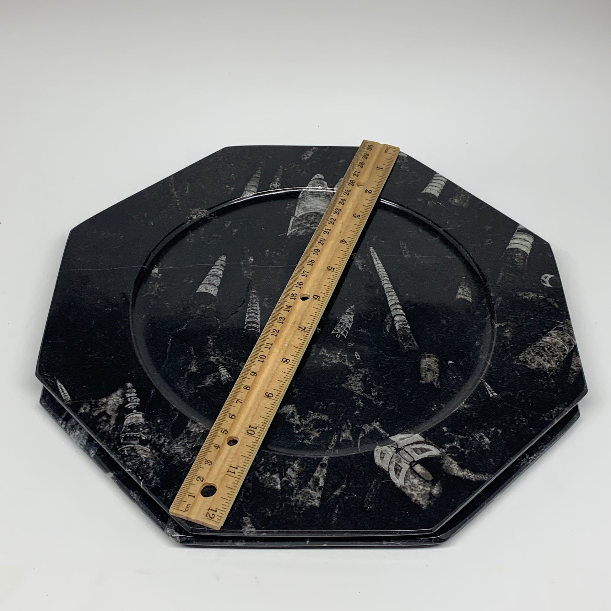 2pcs, 12" Large Octagon Shape Black Fossils Orthoceras Plates @Morocco, B8345