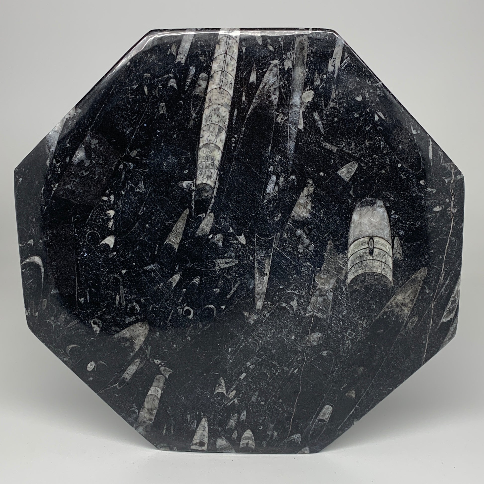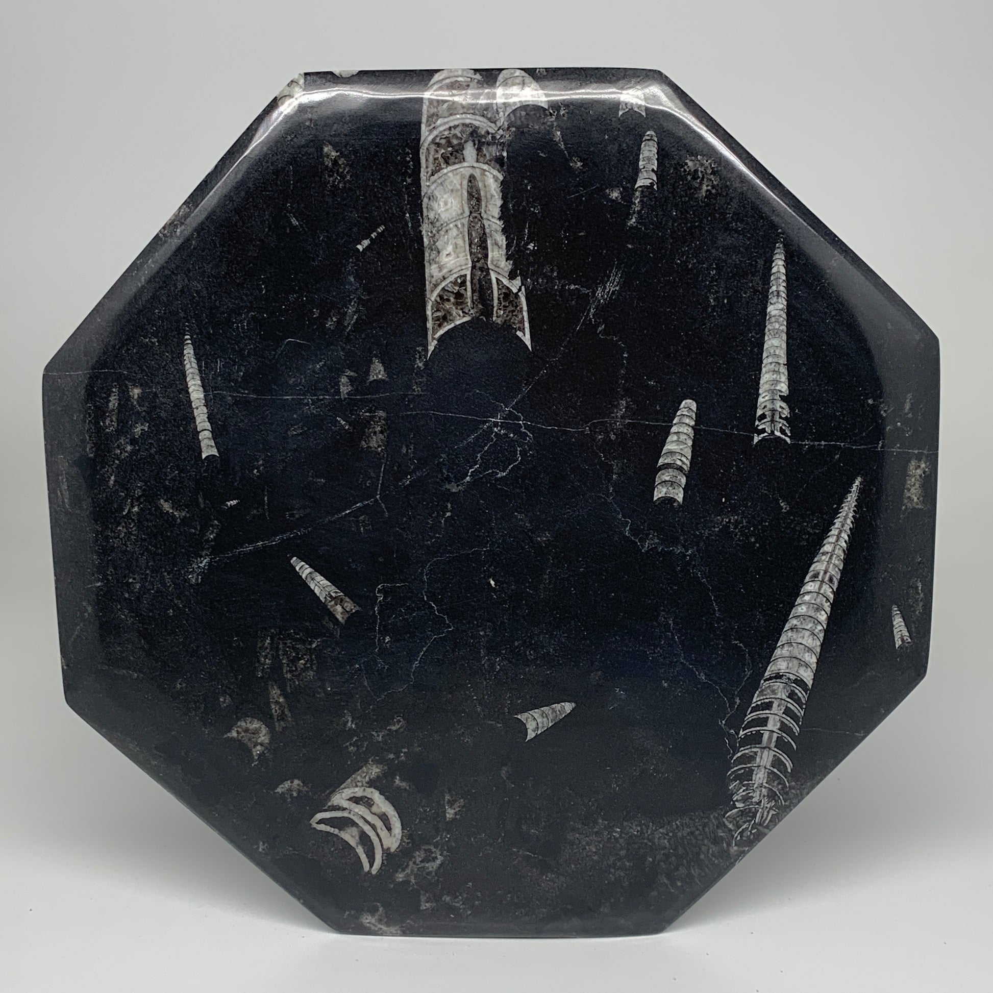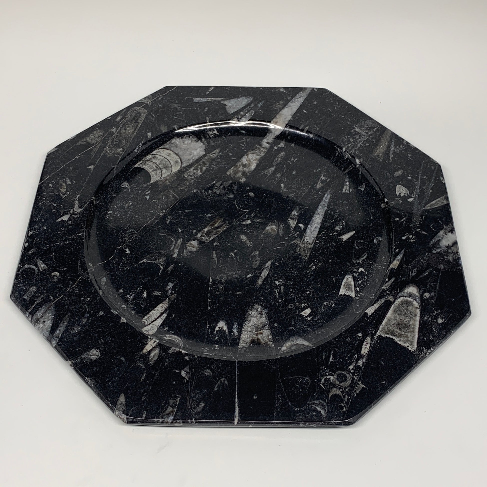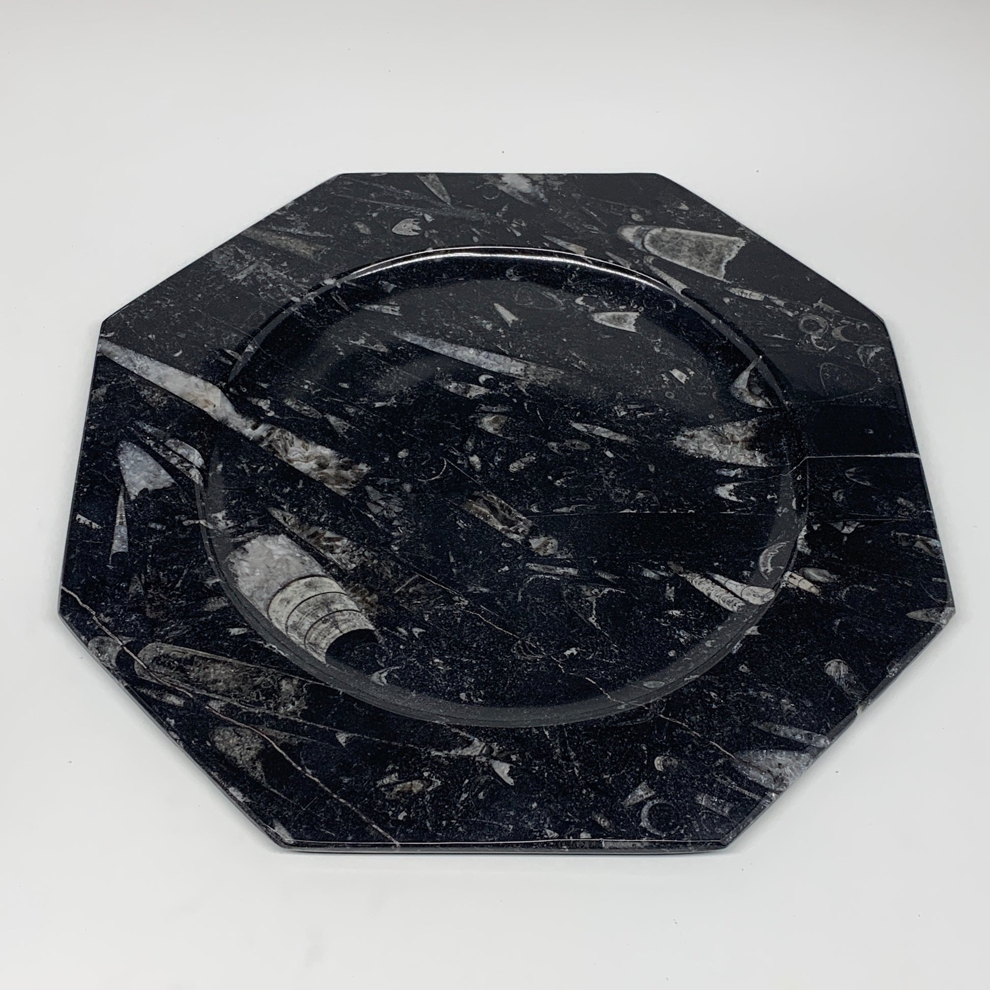 2pcs, 12" Large Octagon Shape Black Fossils Orthoceras Plates @Morocco, B8345