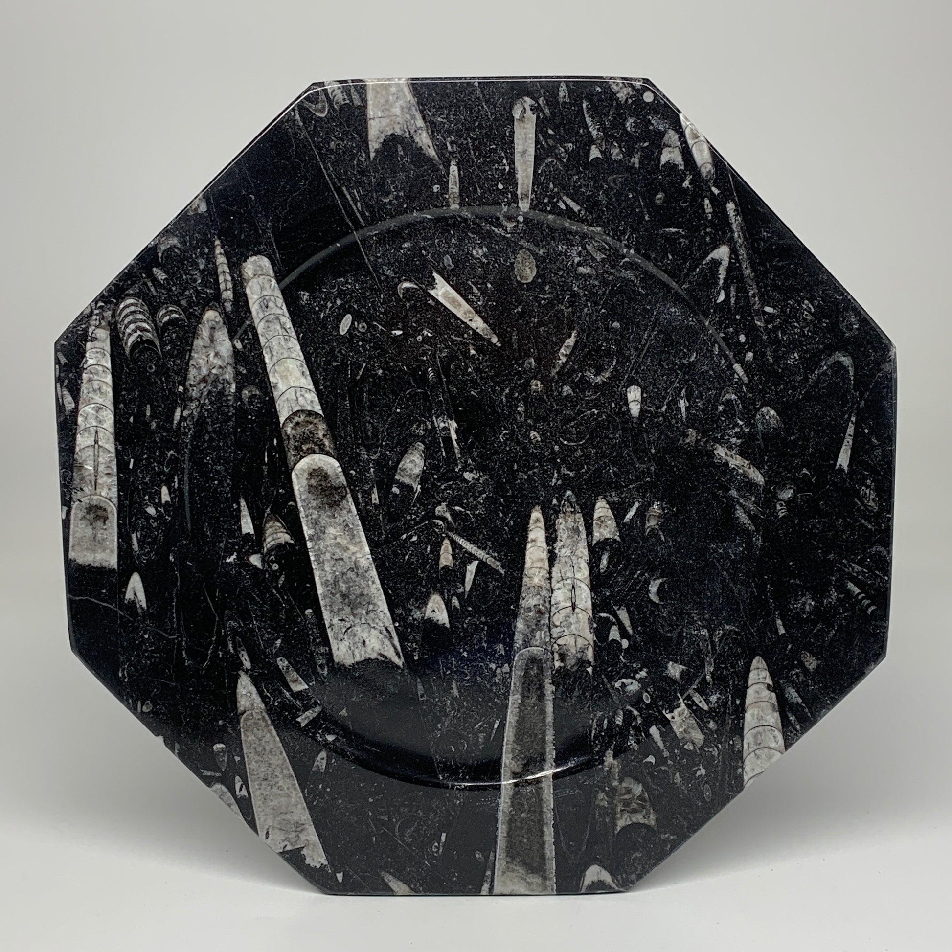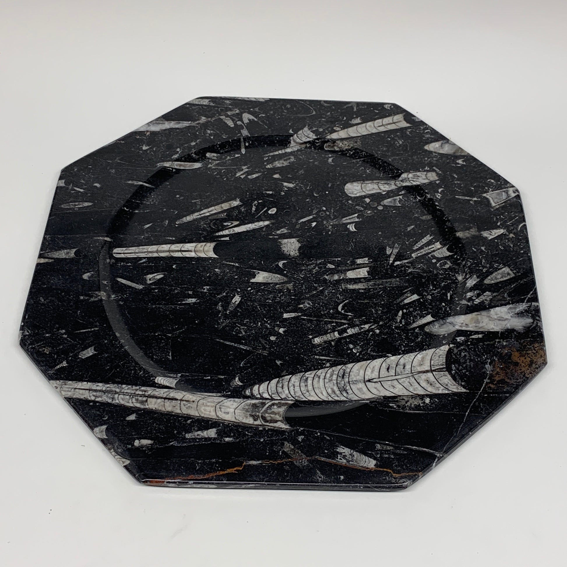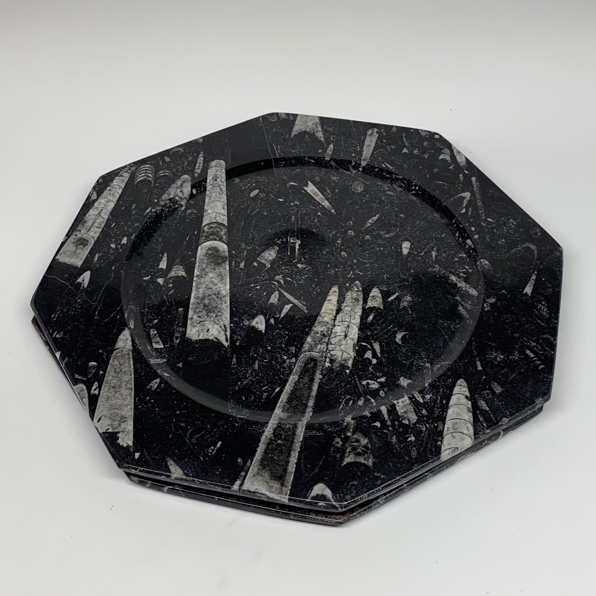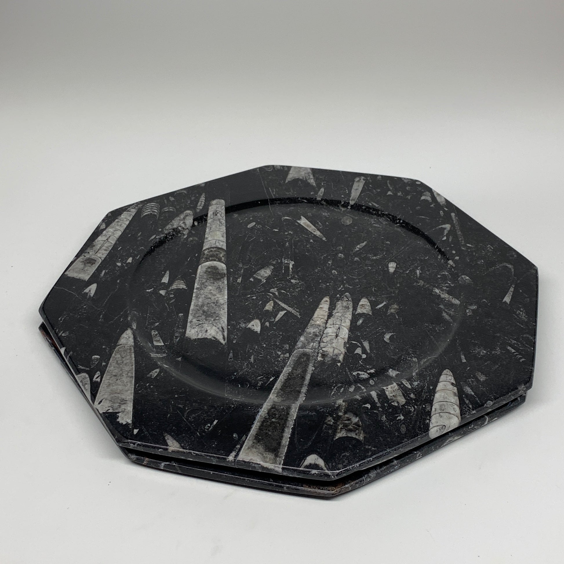 2pcs, 12" Large Octagon Shape Black Fossils Orthoceras Plates @Morocco, B8353