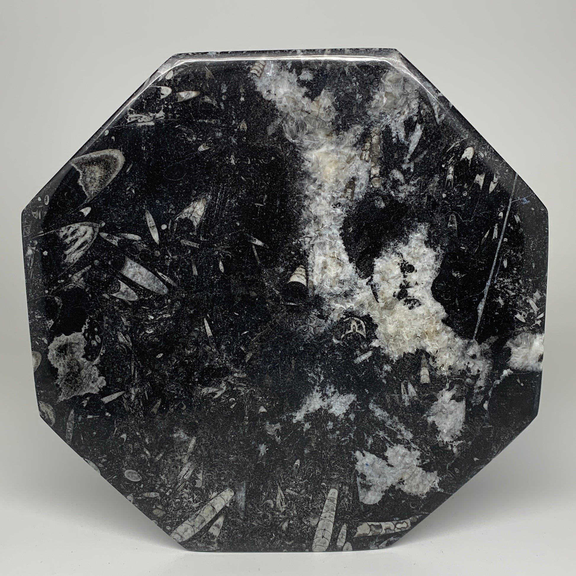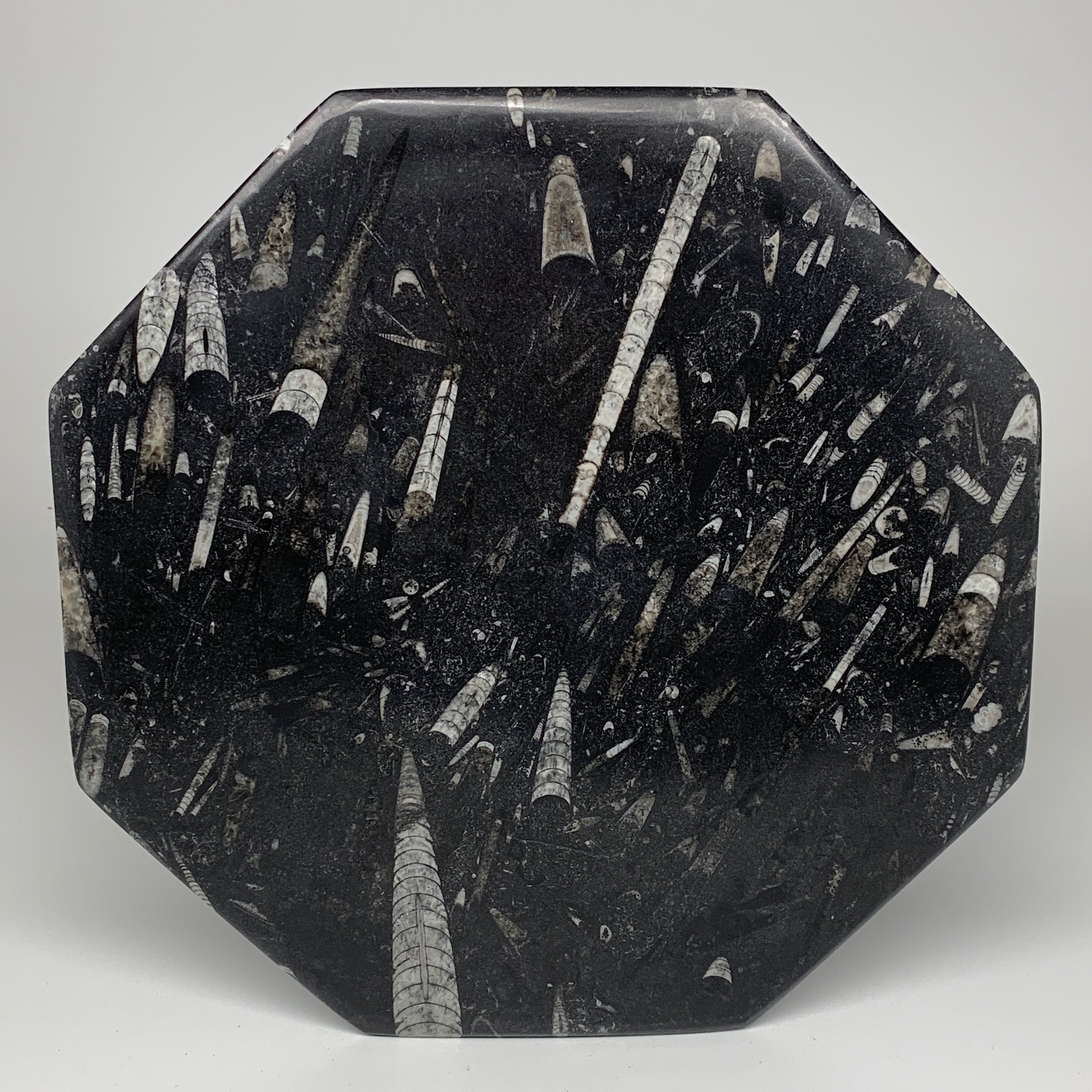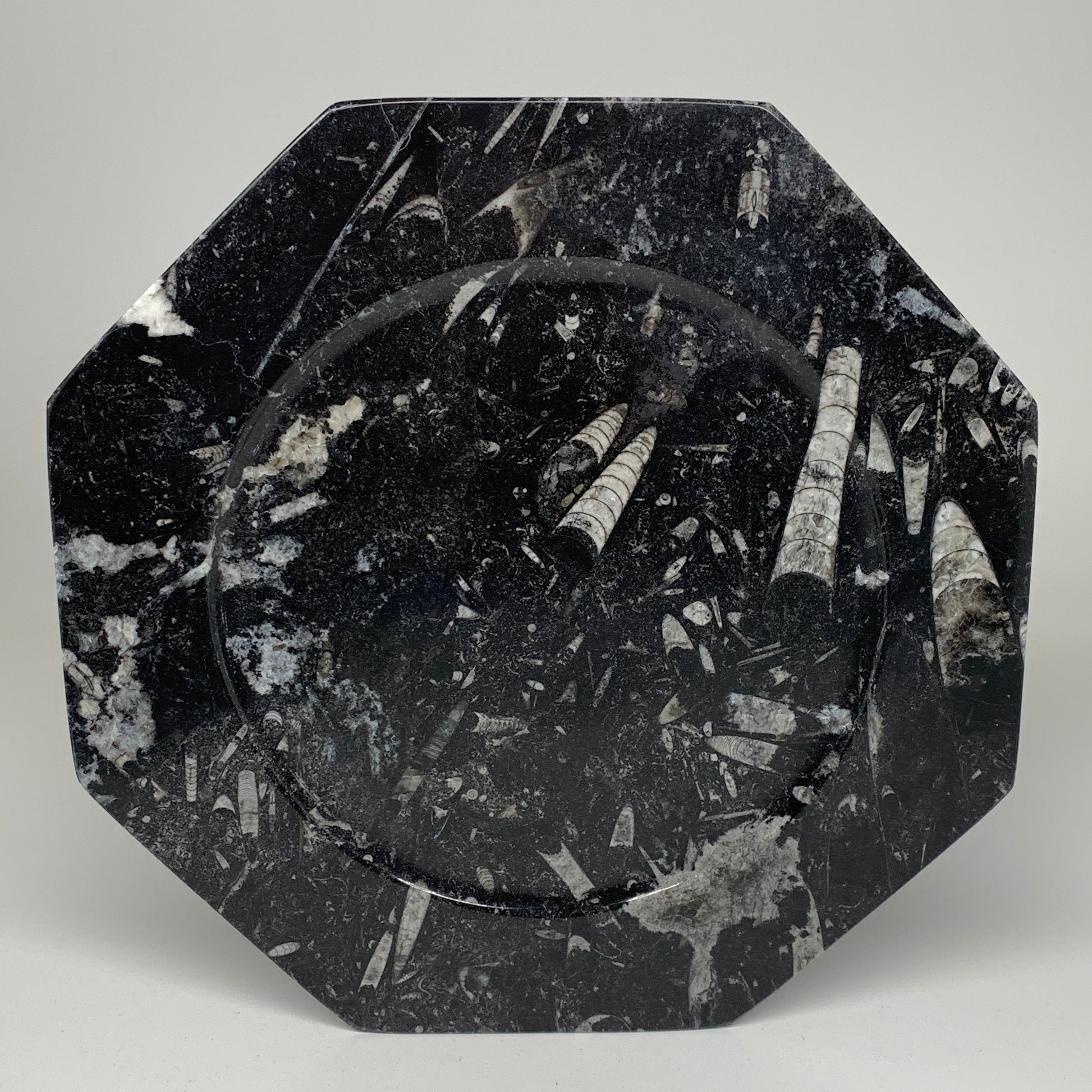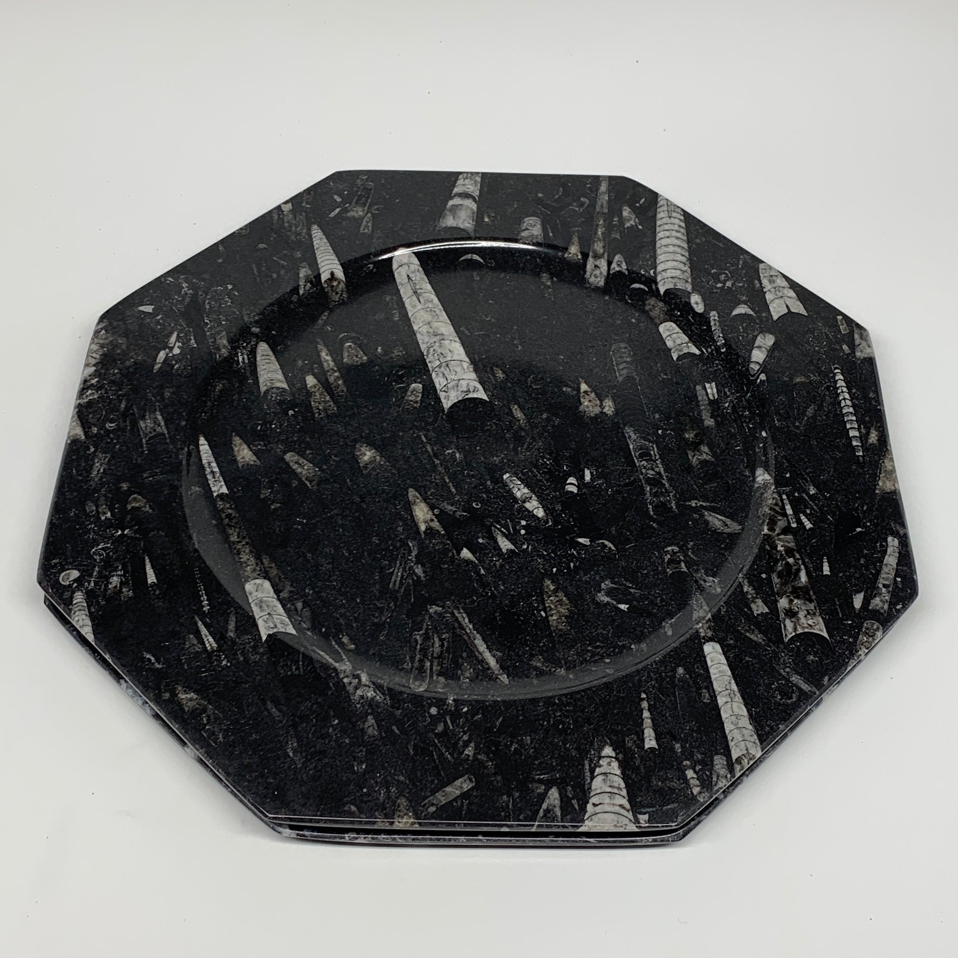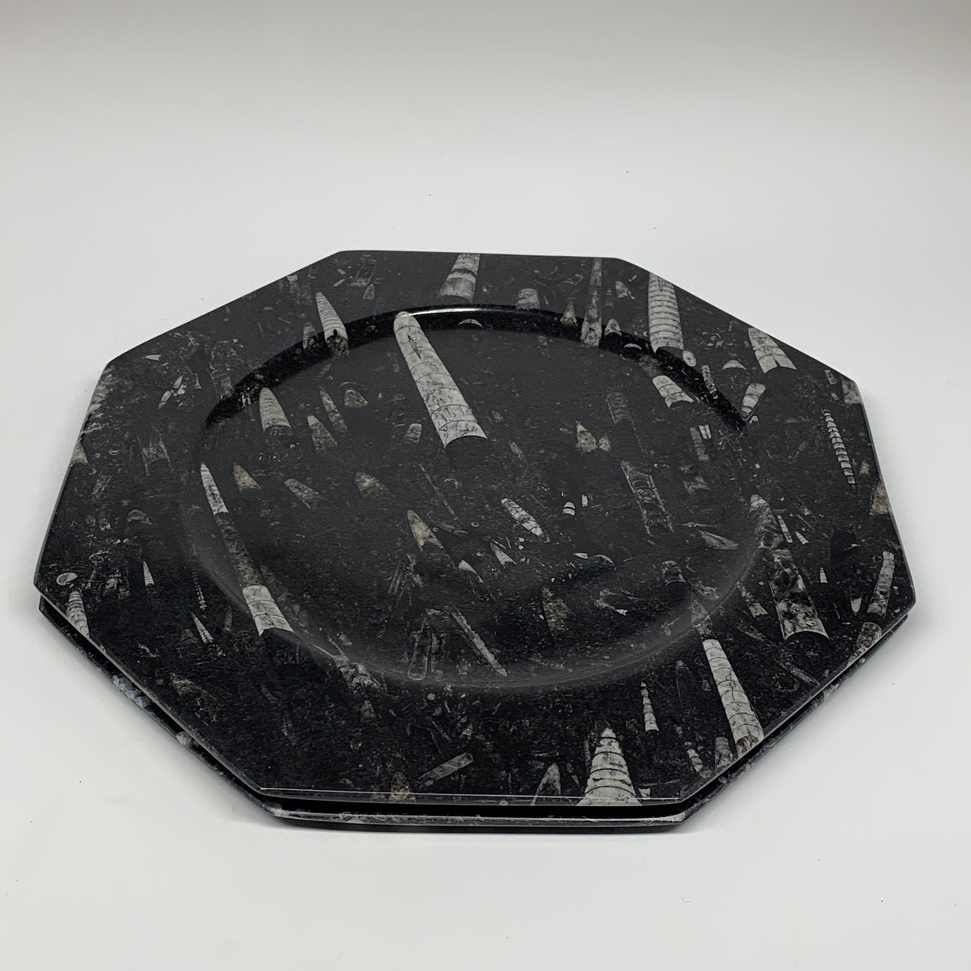 2pcs, 12" Large Octagon Shape Black Fossils Orthoceras Plates @Morocco, B8359