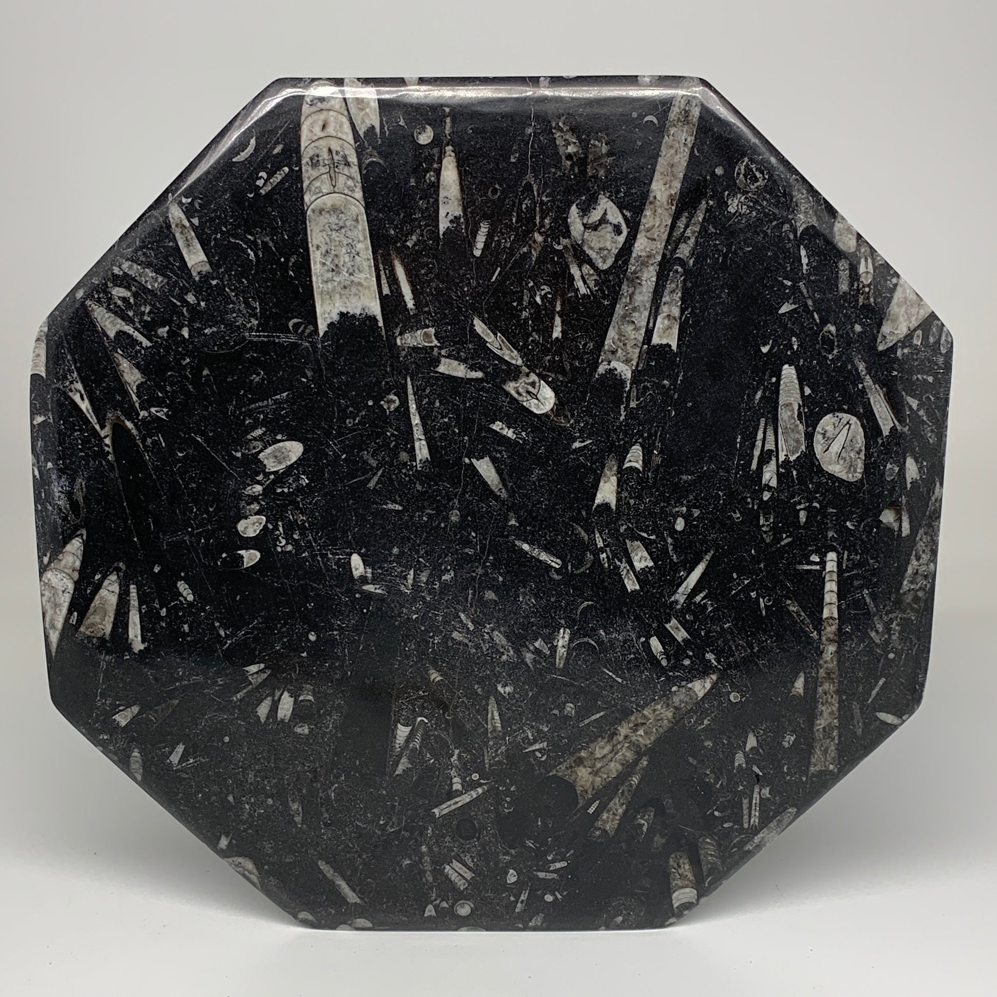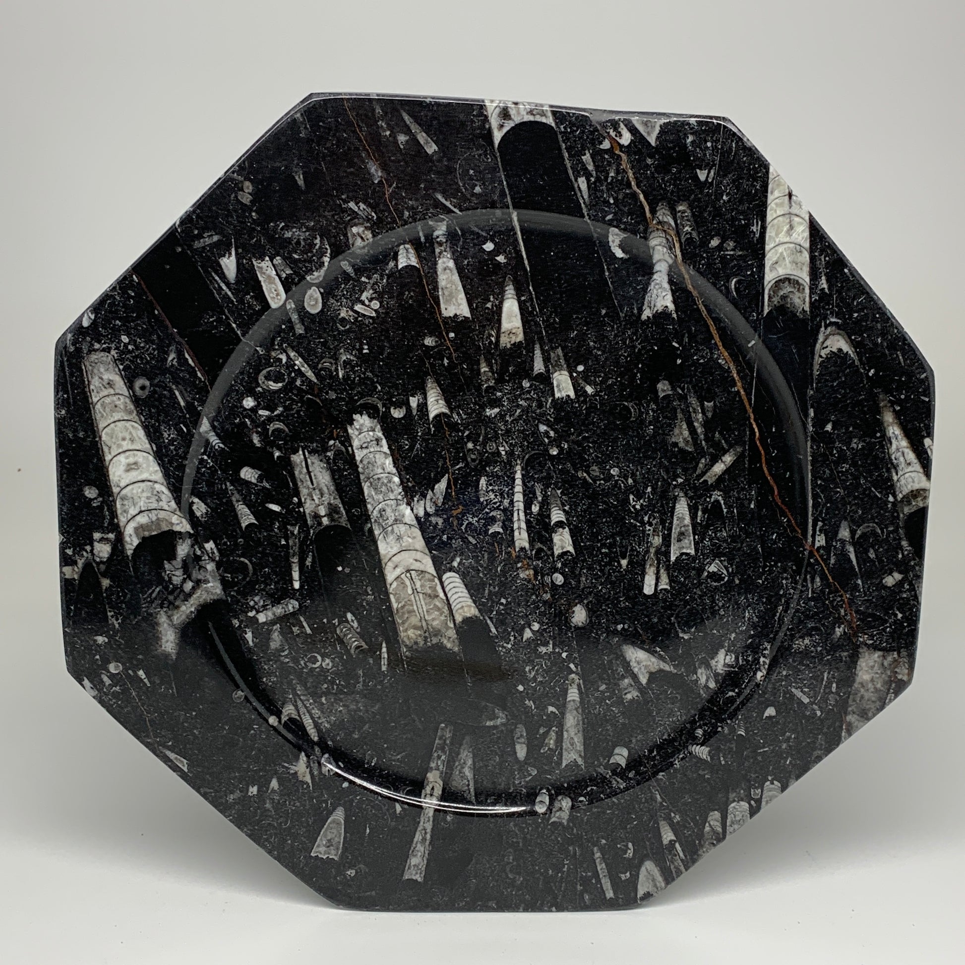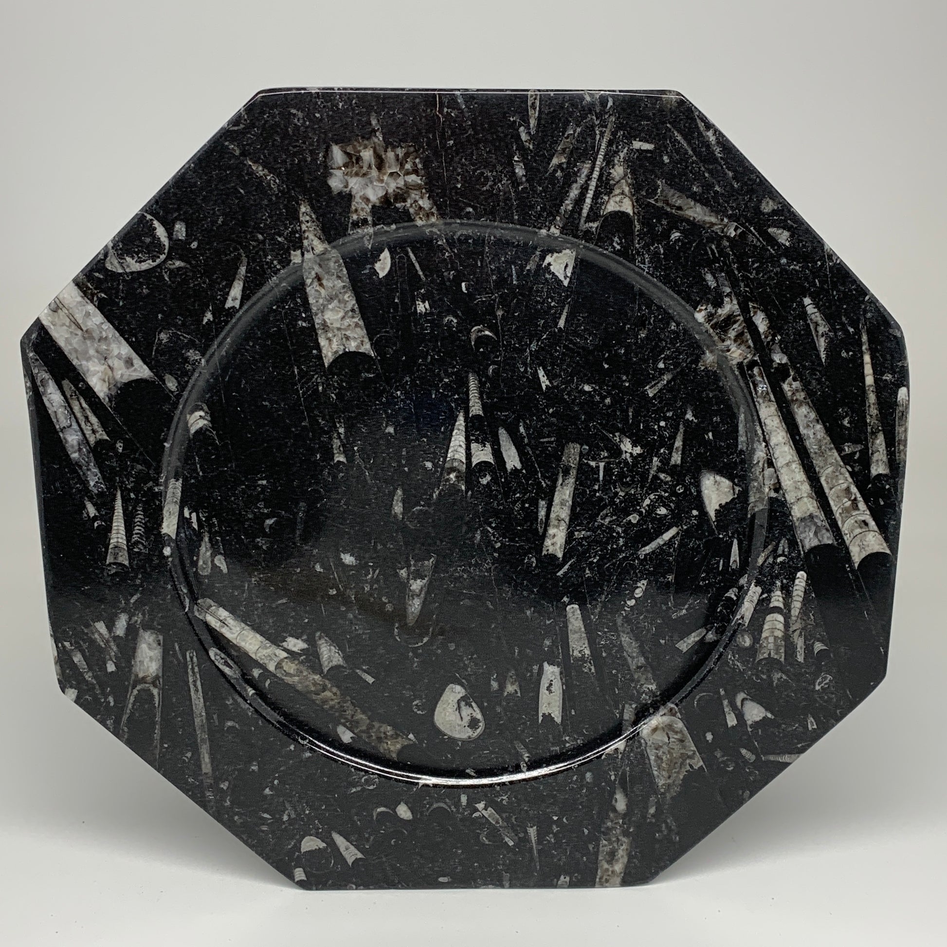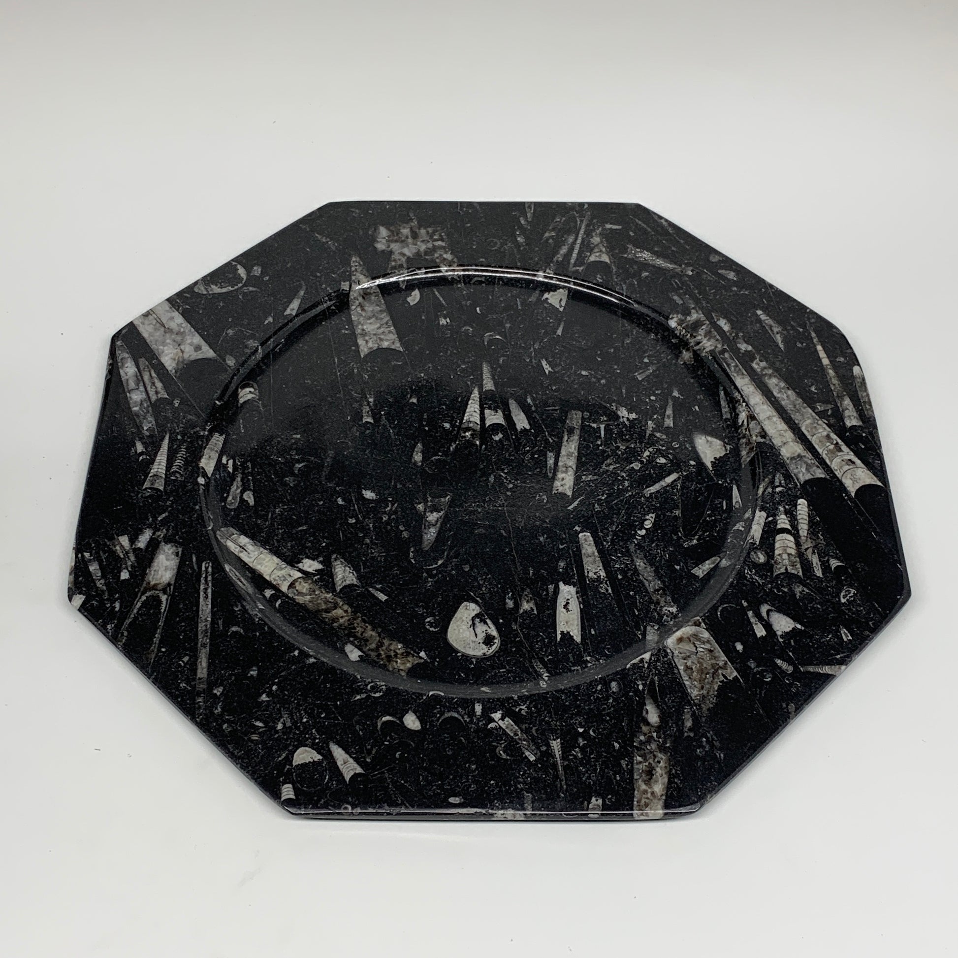 2pcs, 12" Large Octagon Shape Black Fossils Orthoceras Plates @Morocco, B8363