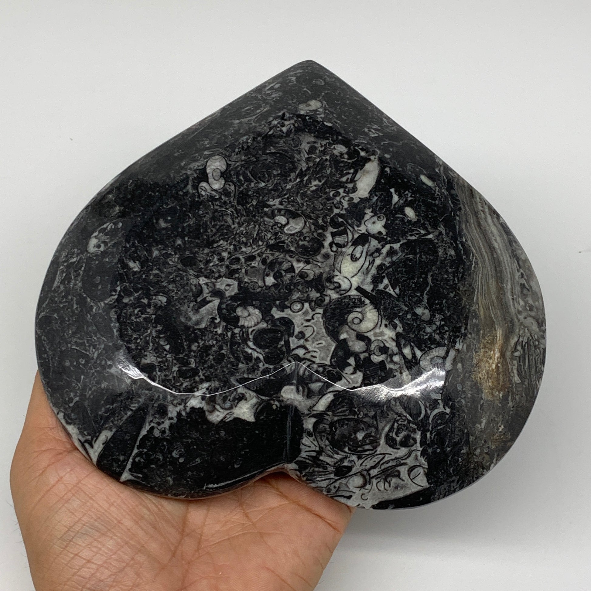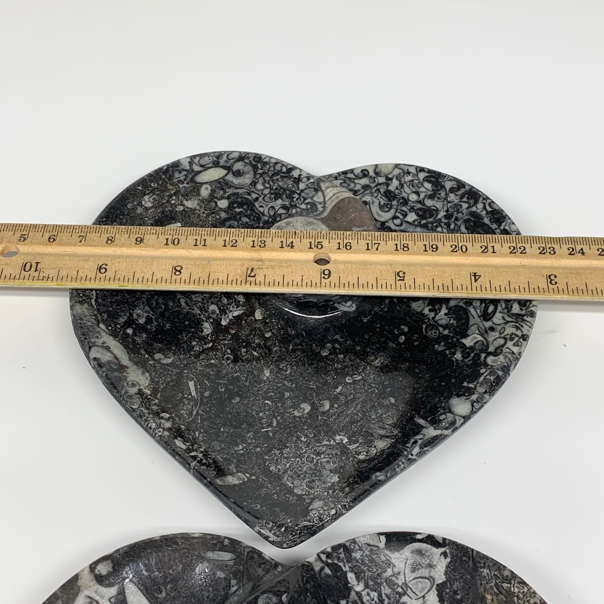 2Pcs, 6.25"x6.25" Heart Fossils Orthoceras Ammonite Bowls @Morocco, B8800