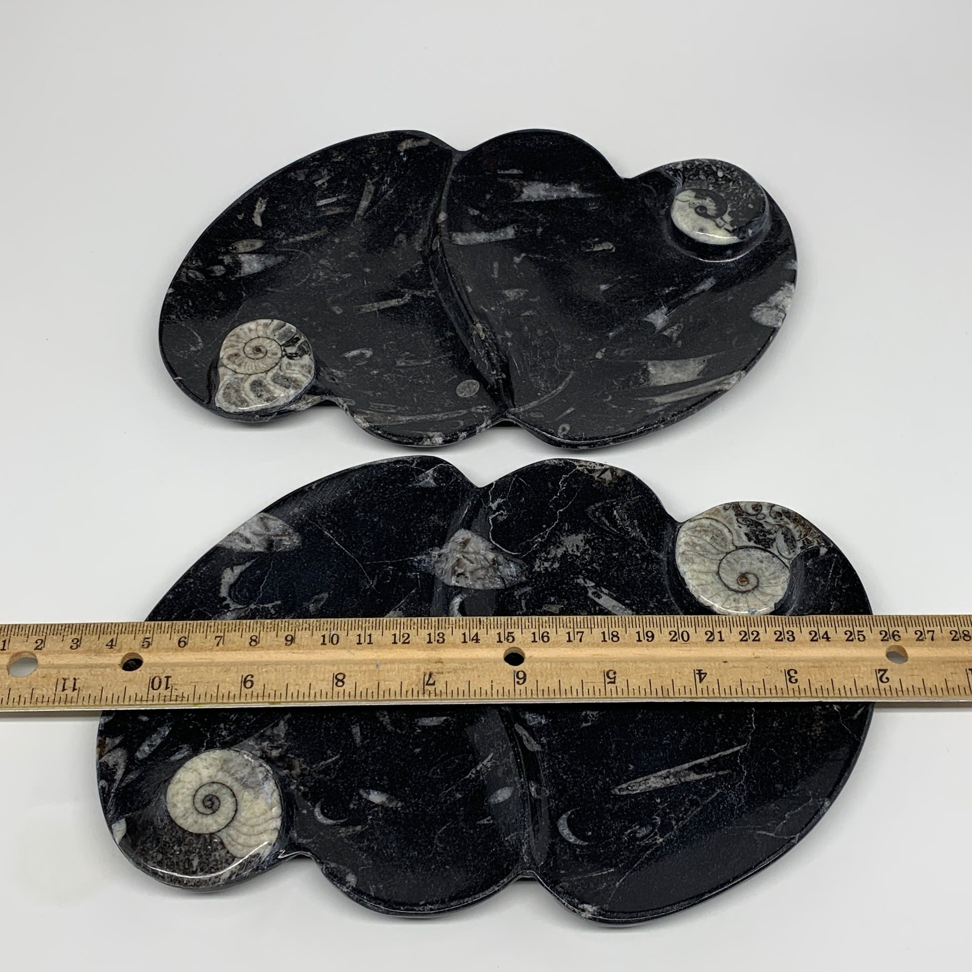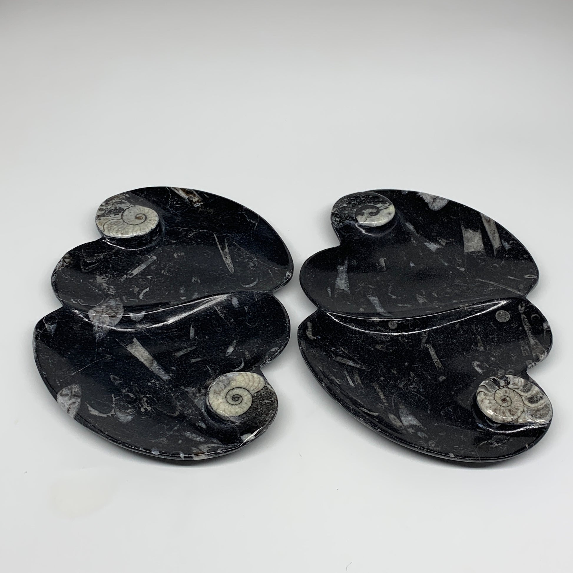 2pcs Set,8.5"x5.5" Double Heart Fossils Orthoceras Ammonite Bowls @Morocco,B8496