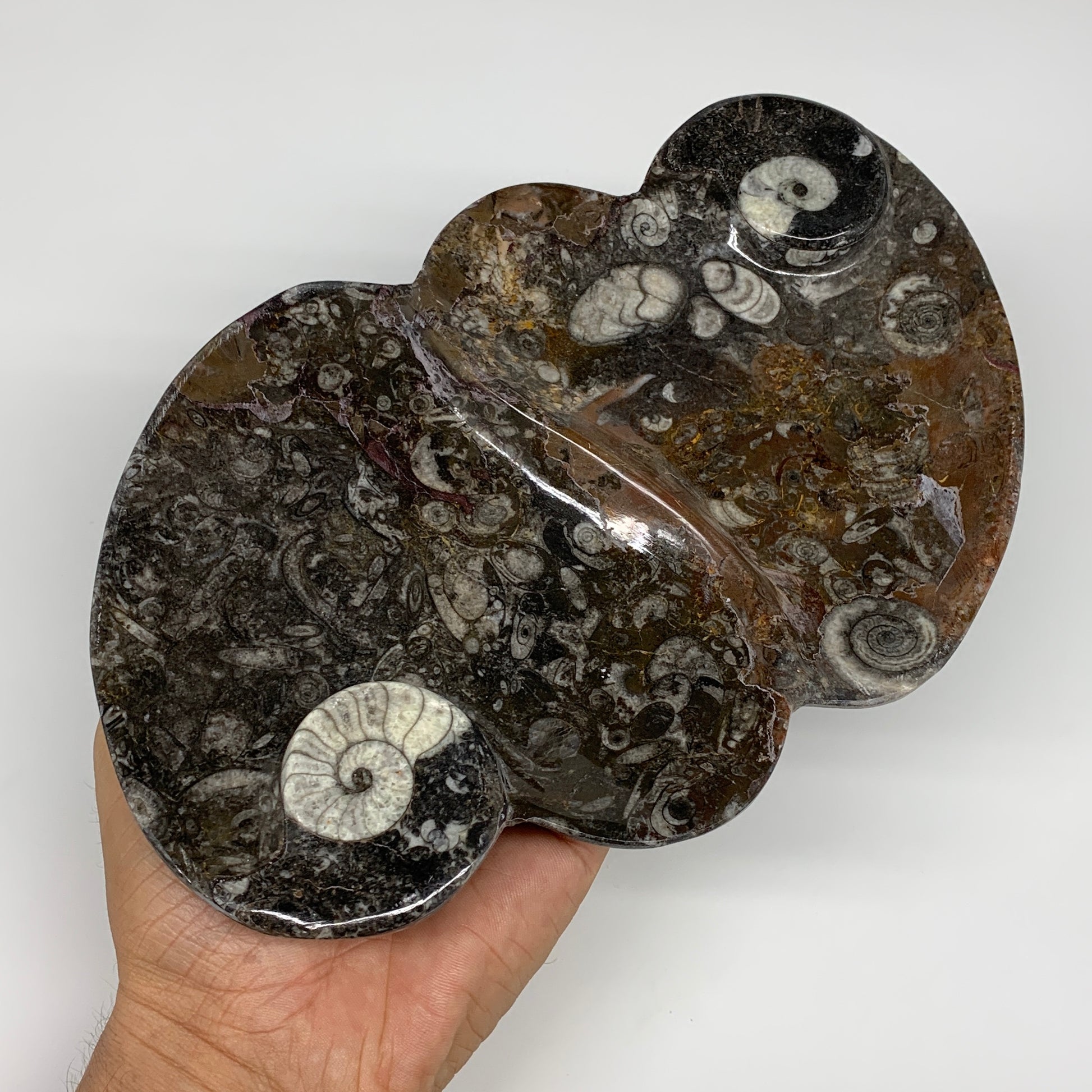 2pcs Set,8.5"x5.5" Double Heart Fossils Orthoceras Ammonite Bowls @Morocco,B8511