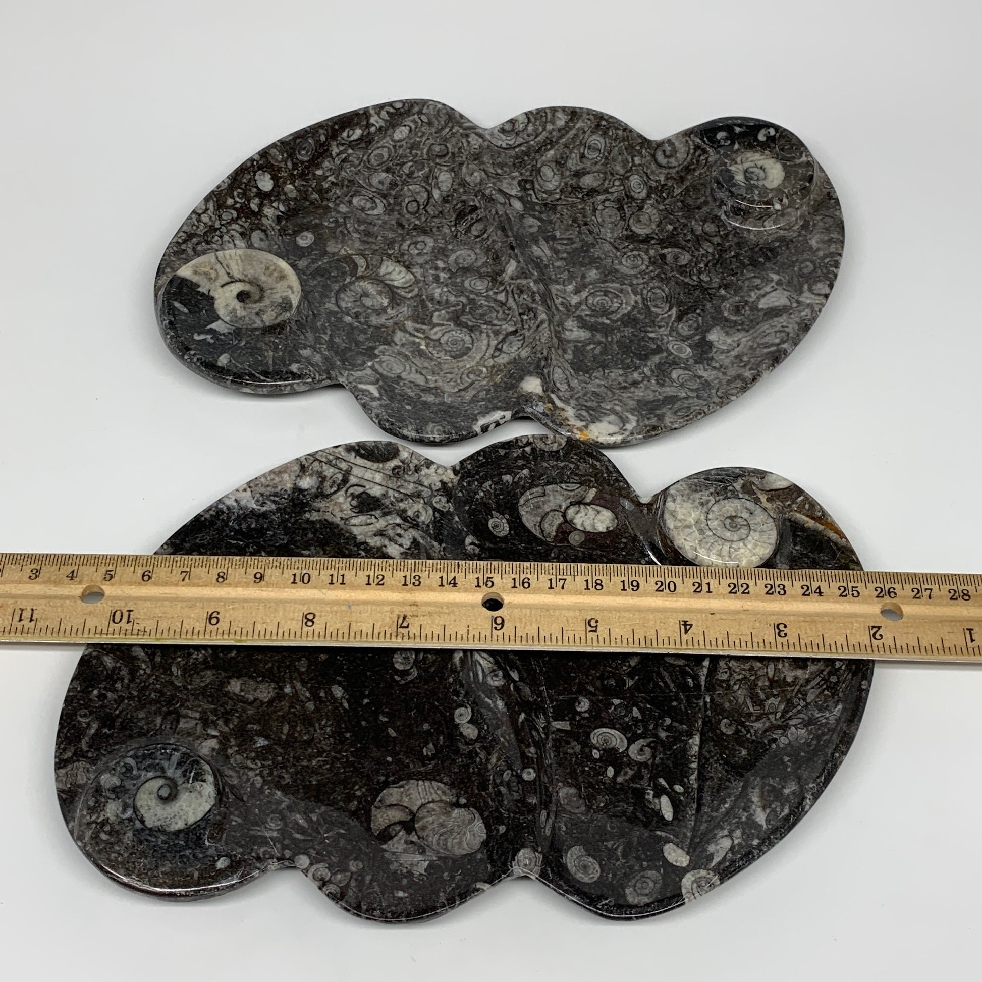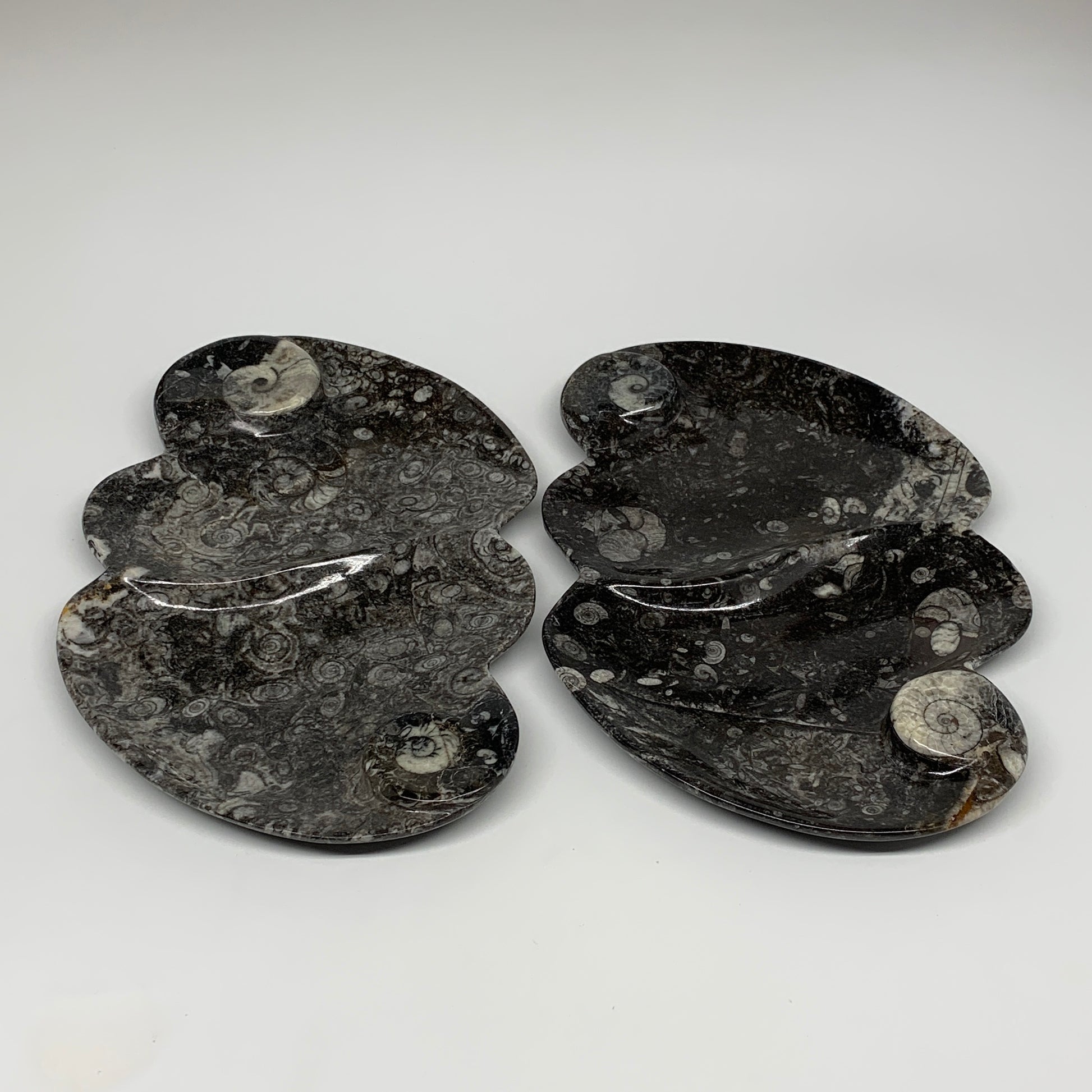 2pcs Set,8.5"x5.5" Double Heart Fossils Orthoceras Ammonite Bowls @Morocco,B8513