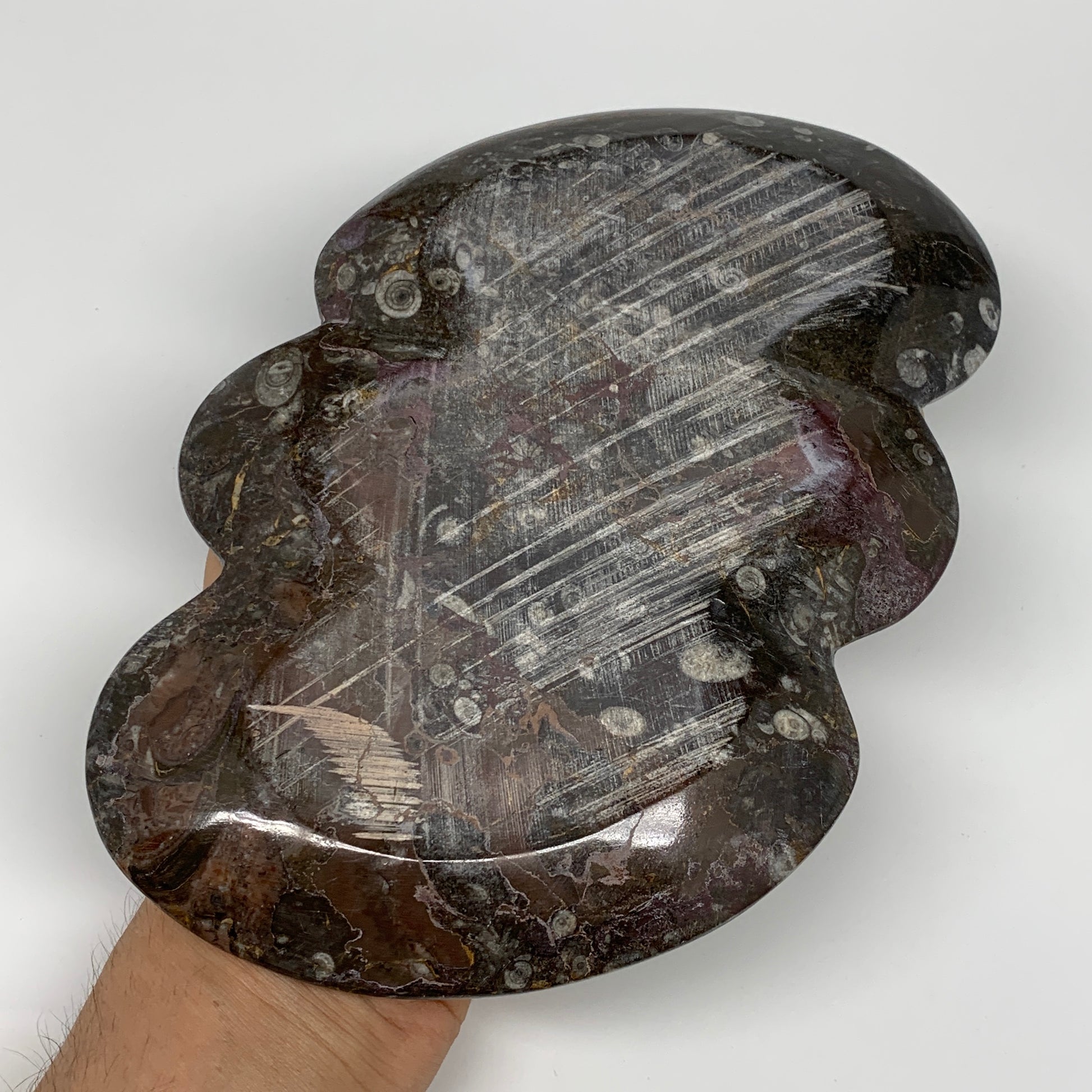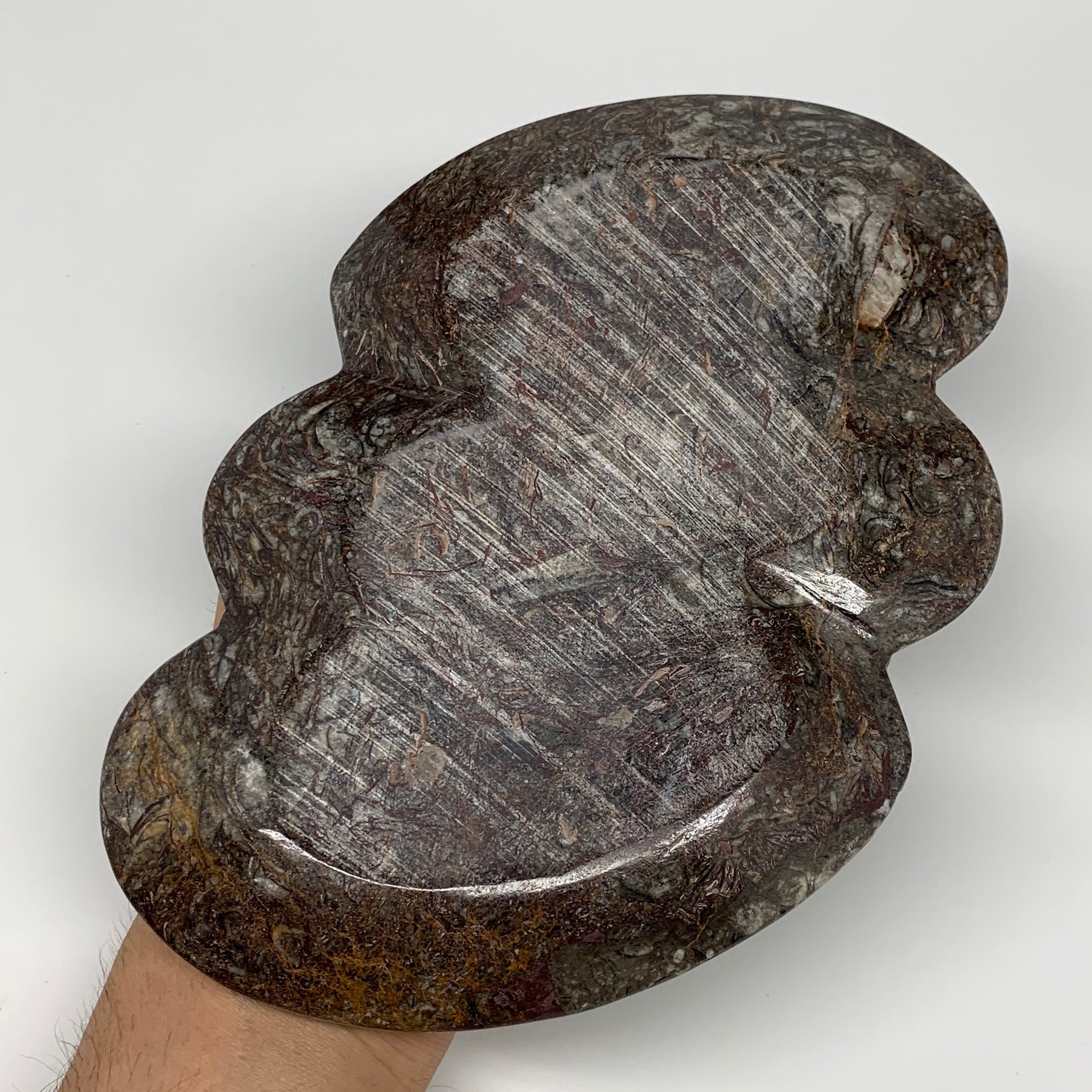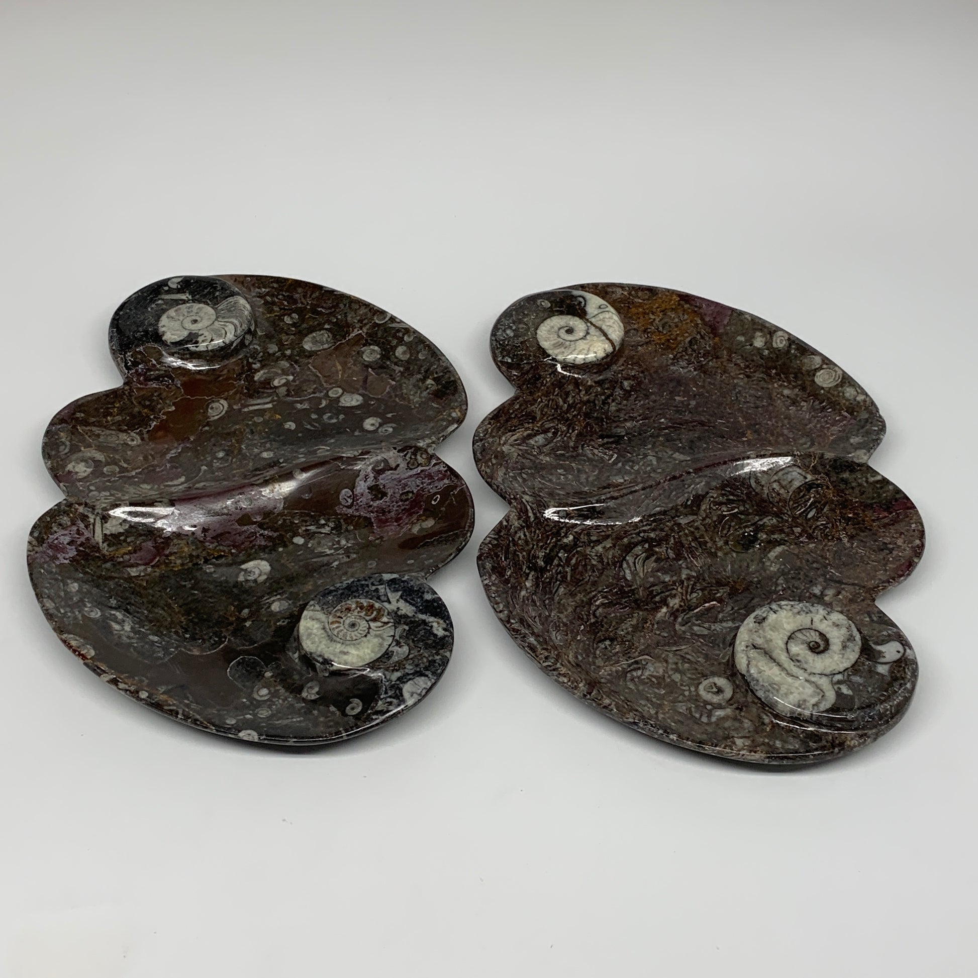 2pcs Set,8.5"x5.5" Double Heart Fossils Orthoceras Ammonite Bowls @Morocco,B8515