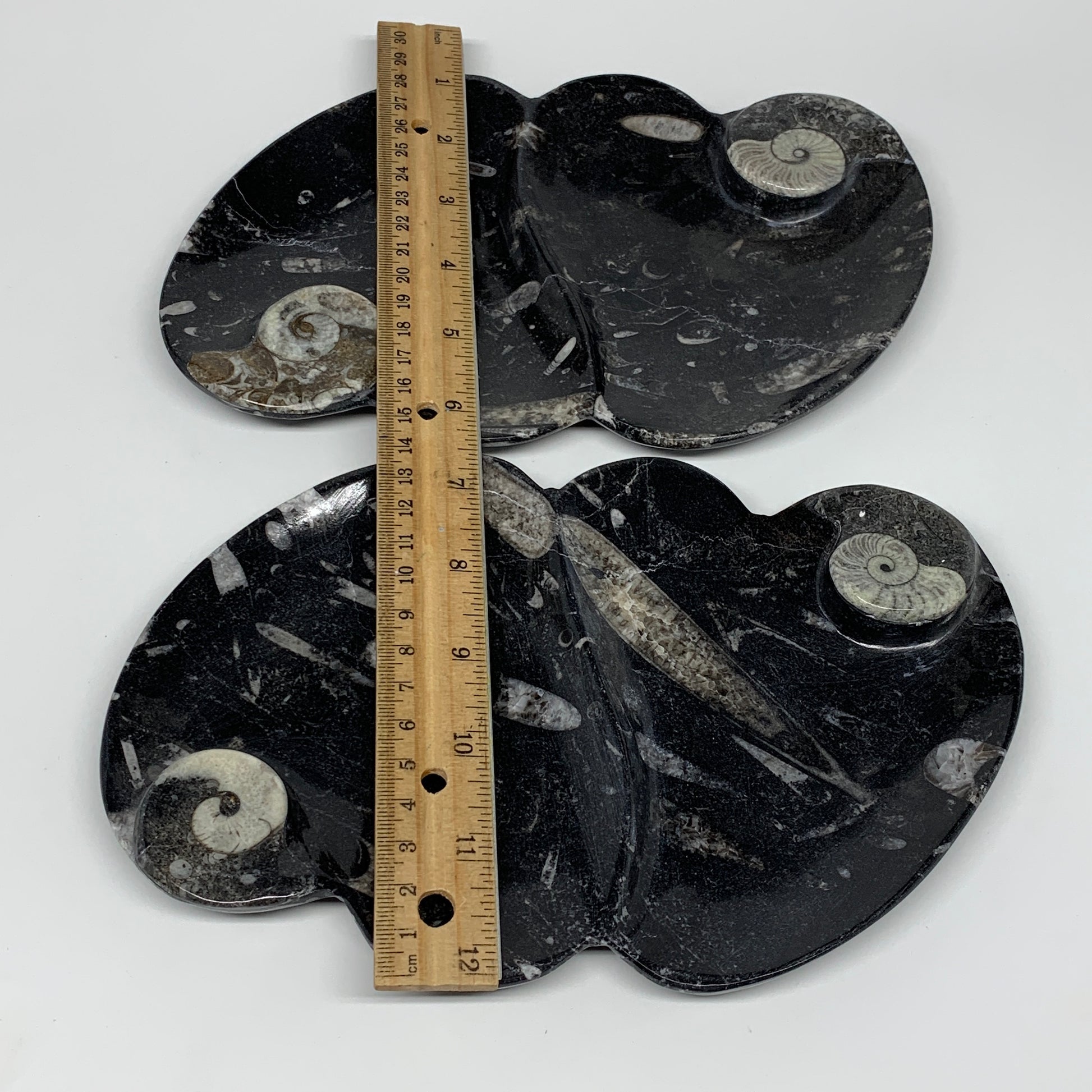 2pcs Set,8.5"x5.5" Double Heart Fossils Orthoceras Ammonite Bowls @Morocco,B8518