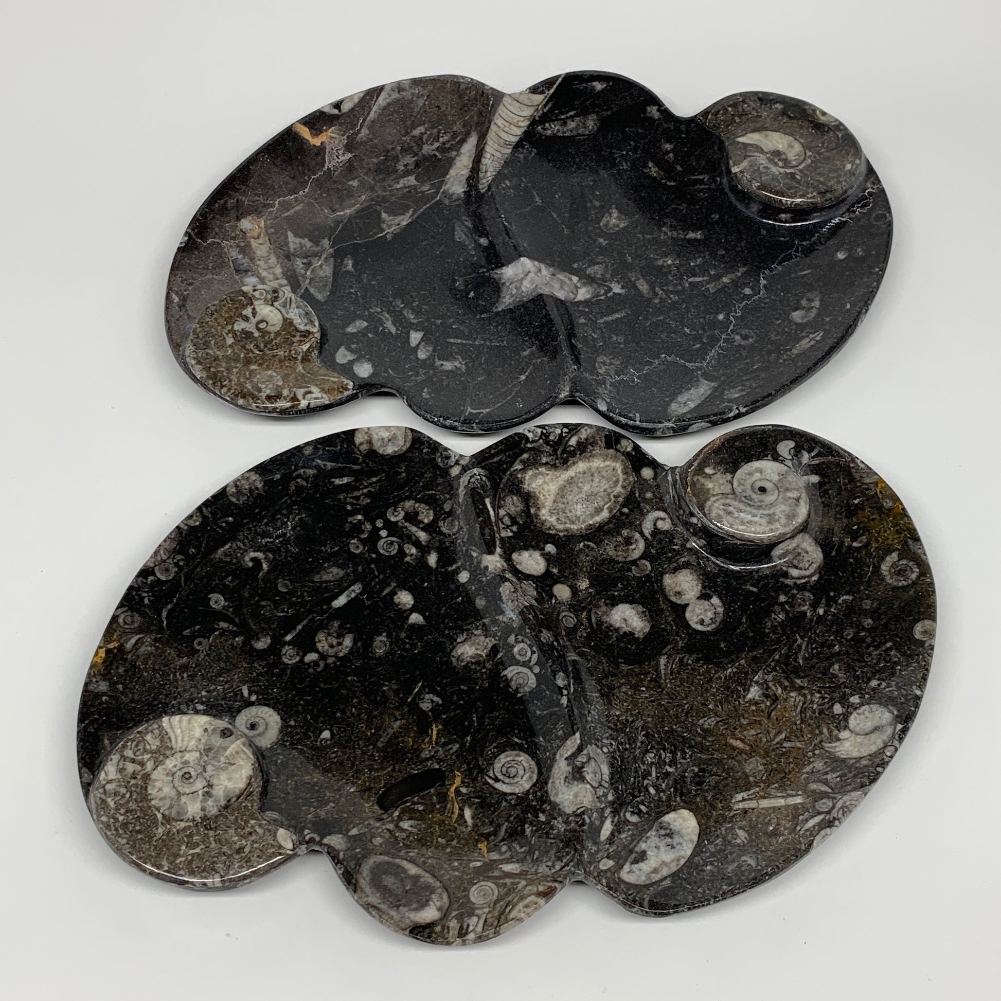 2pcs Set,8.5"x5.5" Double Heart Fossils Orthoceras Ammonite Bowls @Morocco,B8520