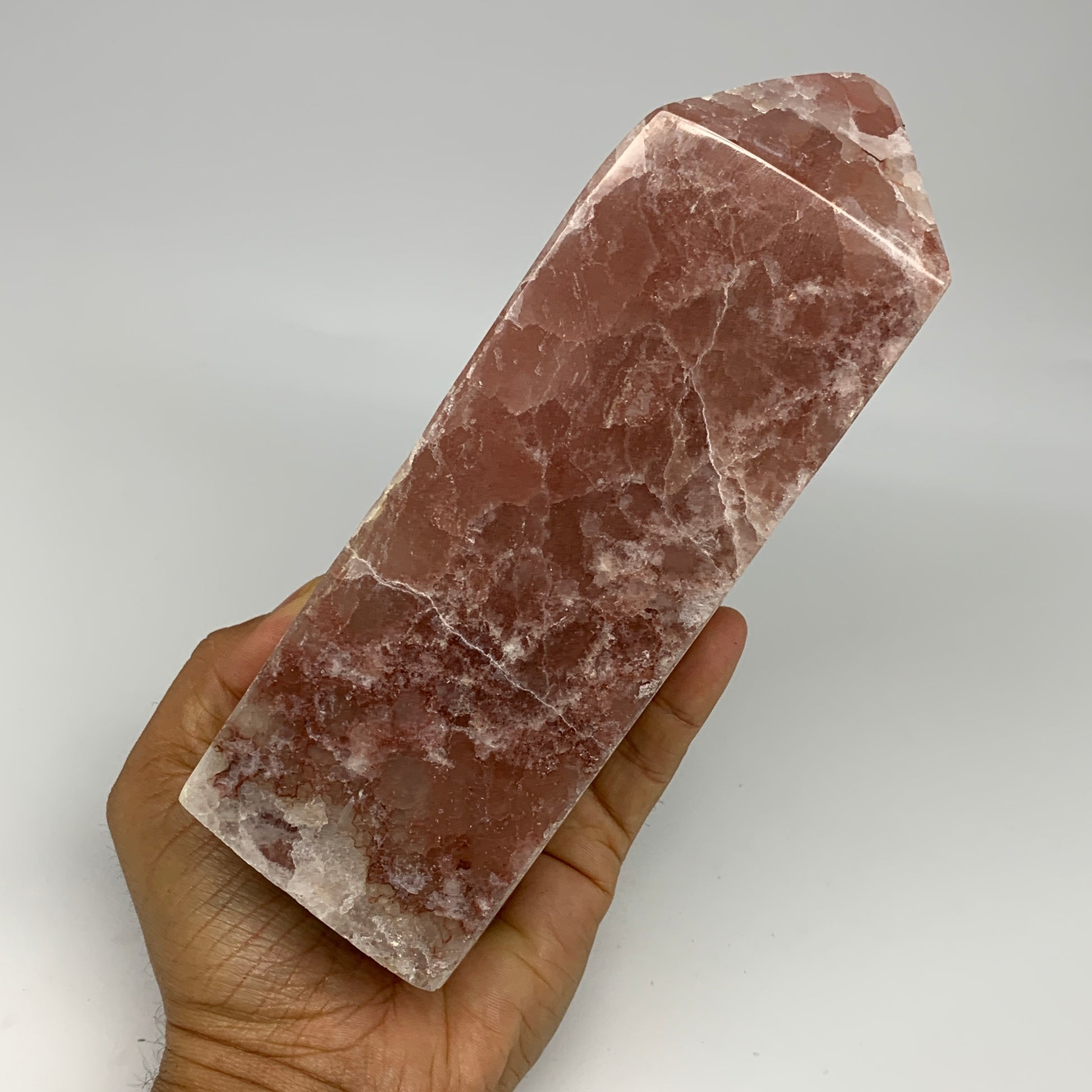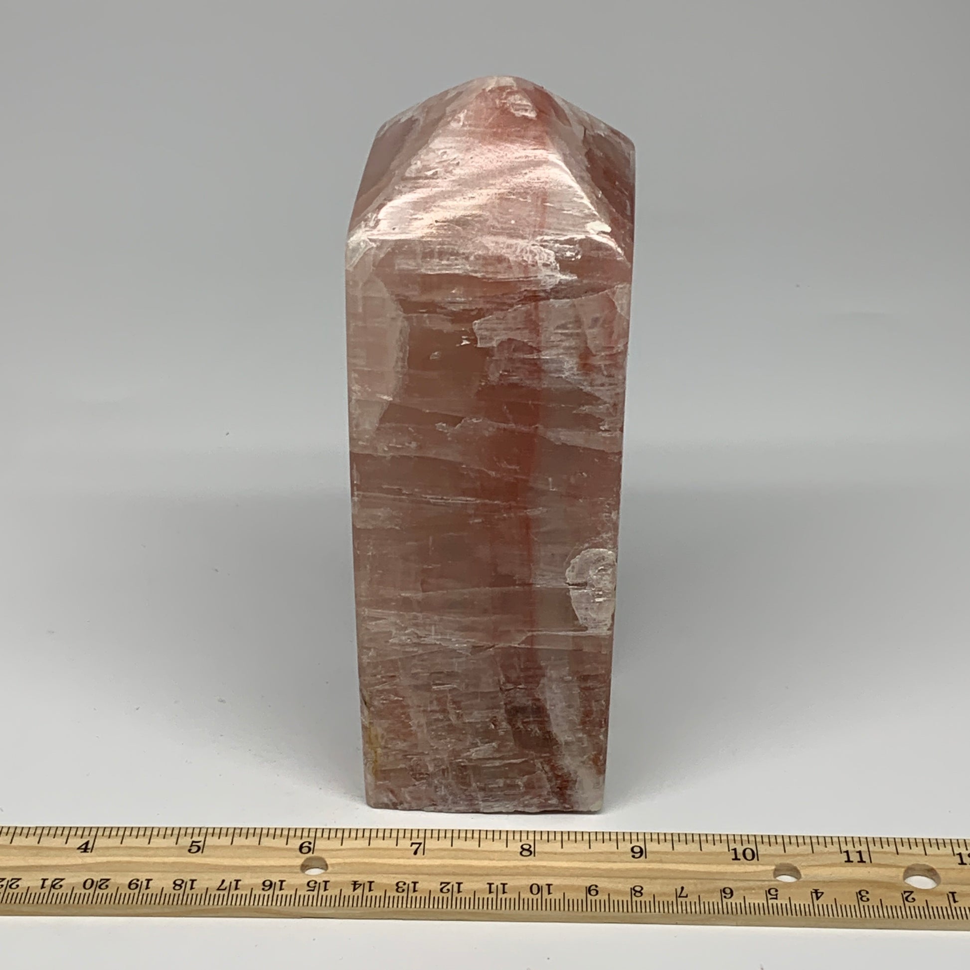 3.51 lbs, 7"x2.4" Strawberry Calcite Point Tower Obelisk Crystal, B25318