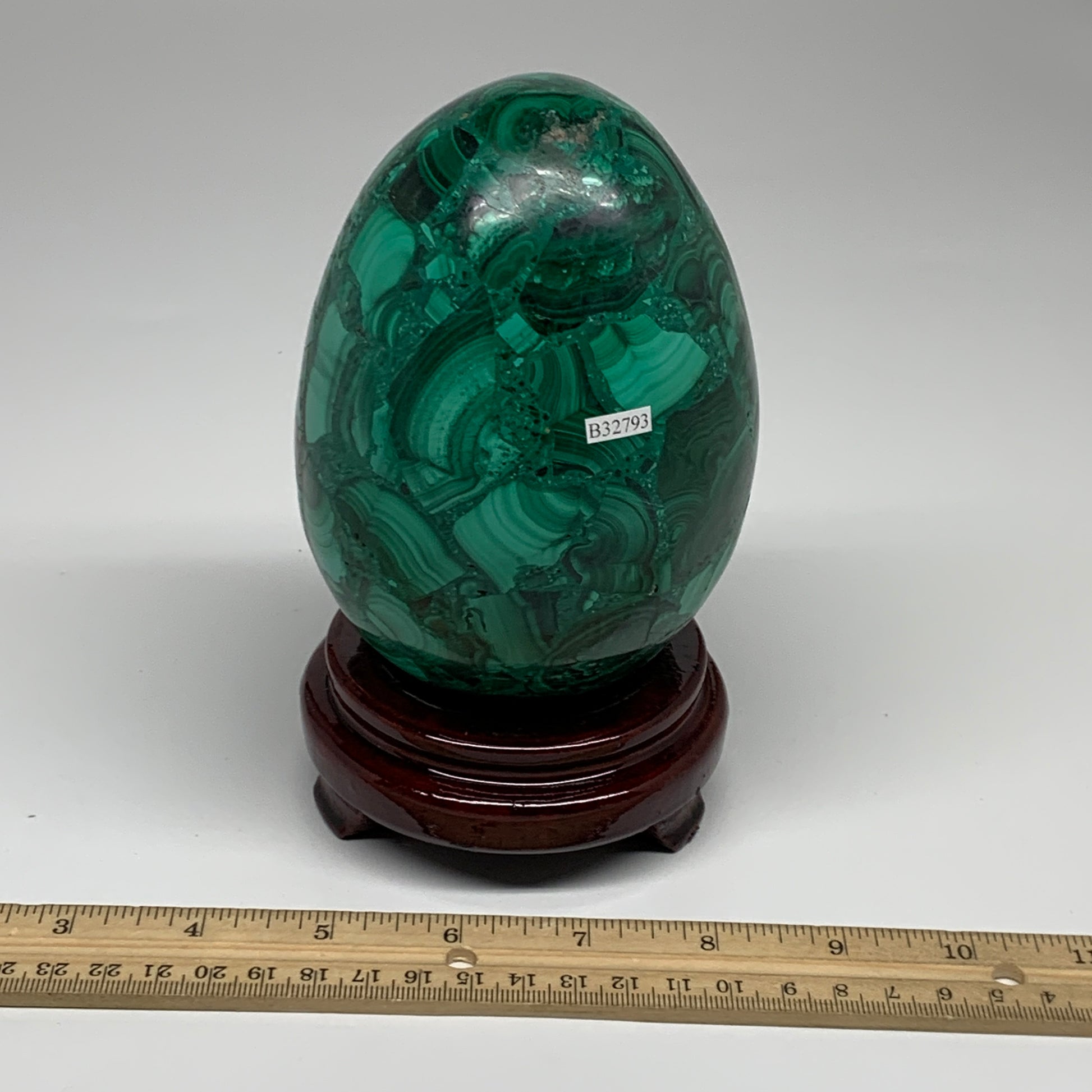 3.86 lbs, 5.2"x3.6", Natural Solid Malachite Egg Polished Gemstone @Congo, B32793